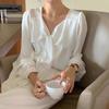 Camisa de Flores Tridimensionales con Sentido de Diseño para Mujer Otoño 2024 Nueva Estilo Francés Retro Estilo Occidental Vestir Perlas Camisa Nicho