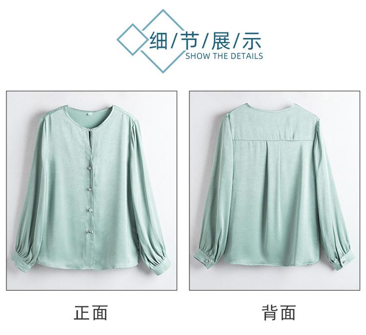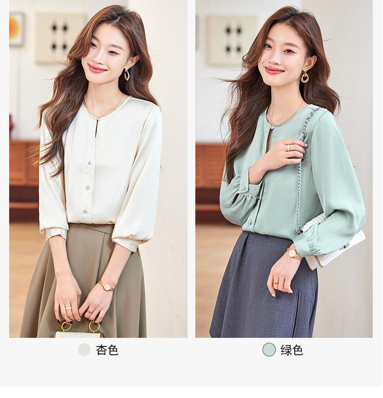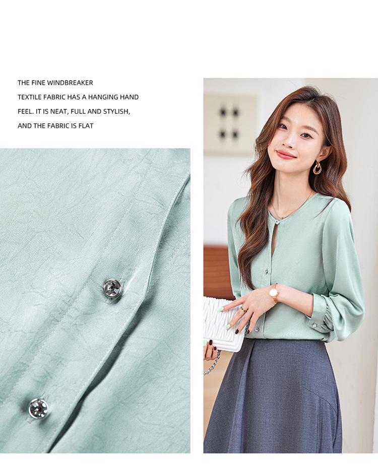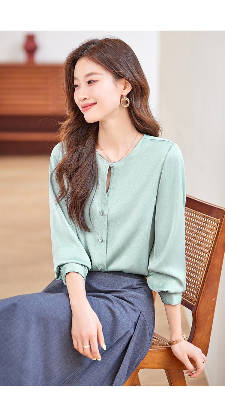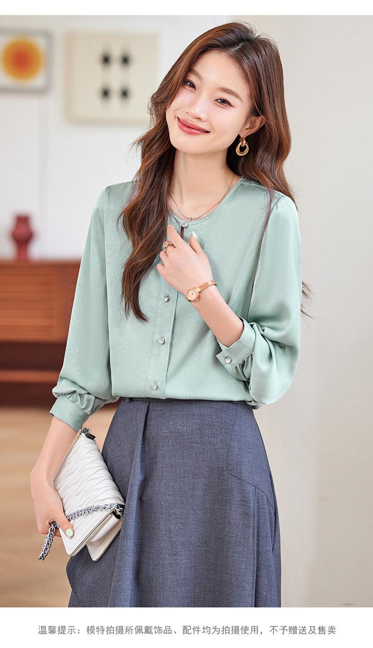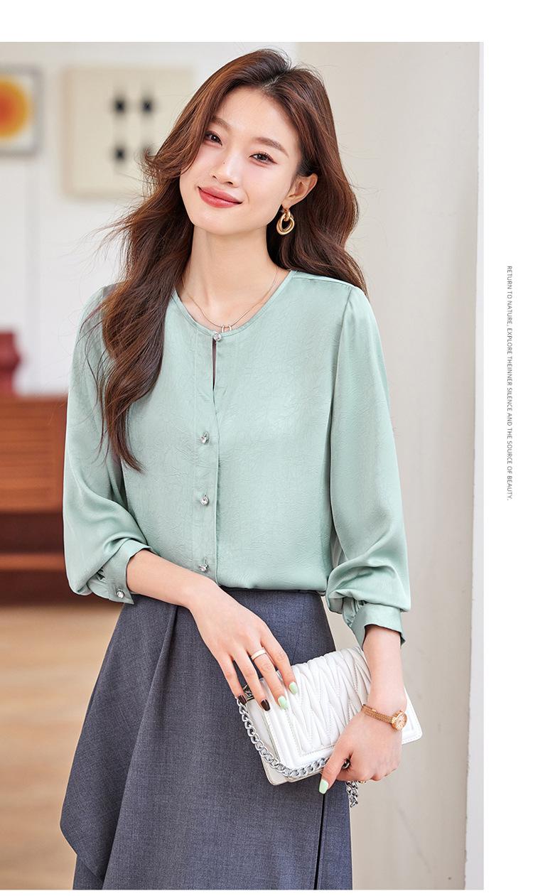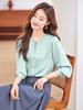Camisa elegante de cuello redondo de estilo coreano para mujer, otoño 2024, nueva camisa de gasa verde de estilo occidental de alta moda, primavera y otoño