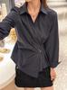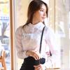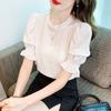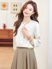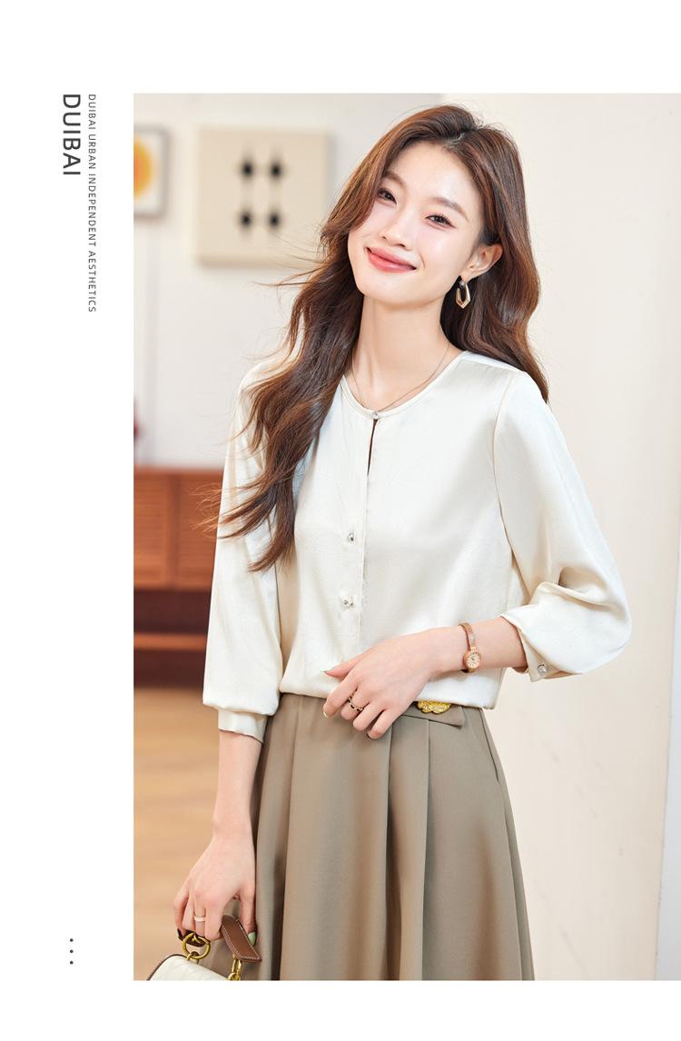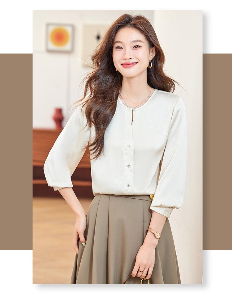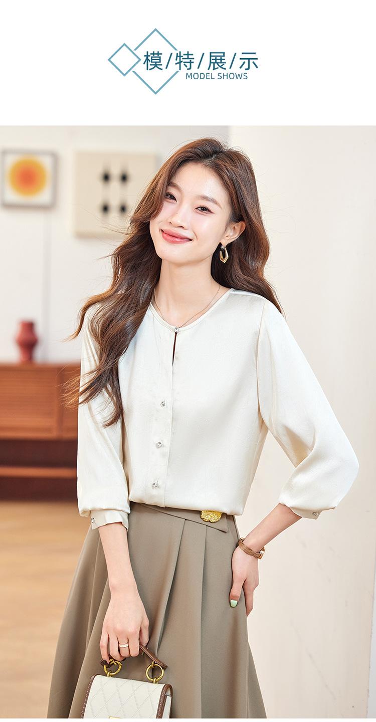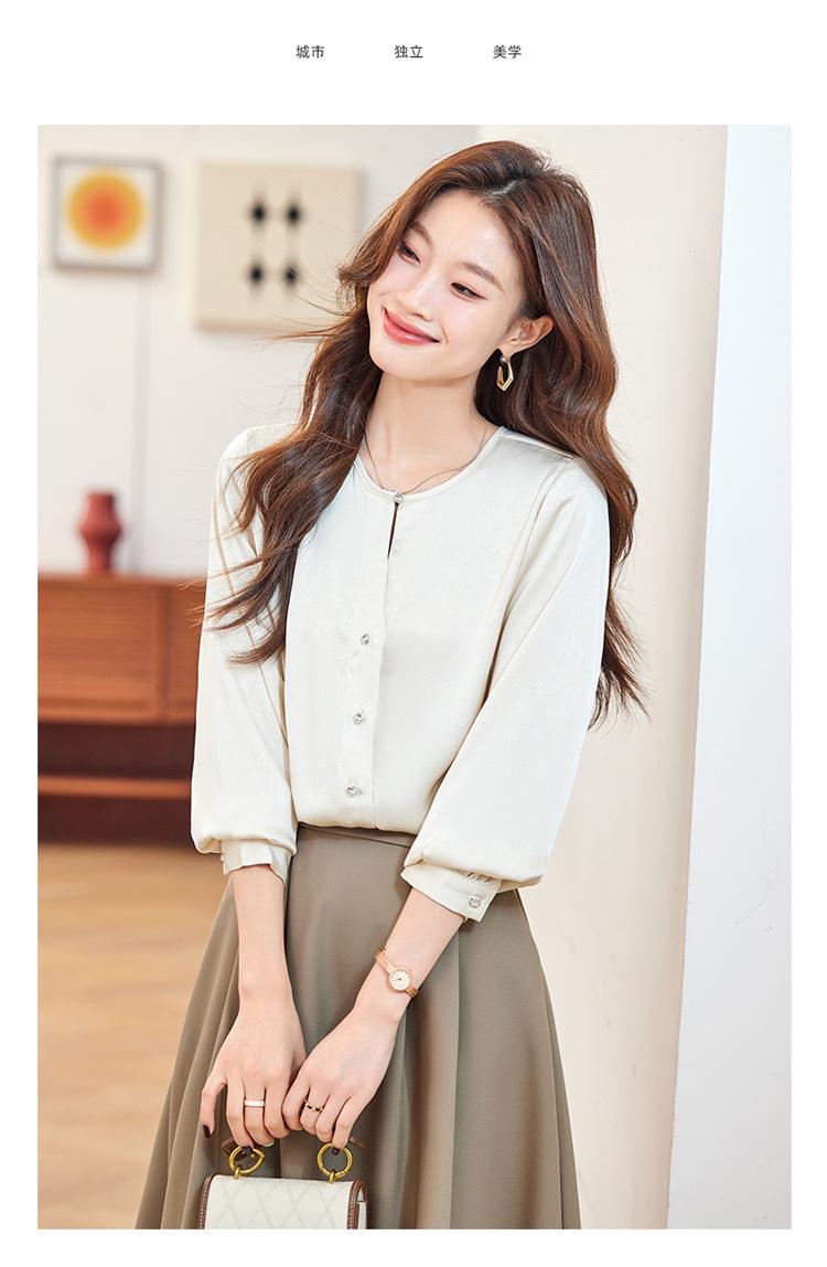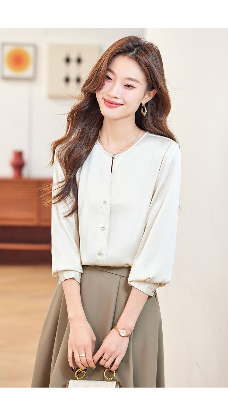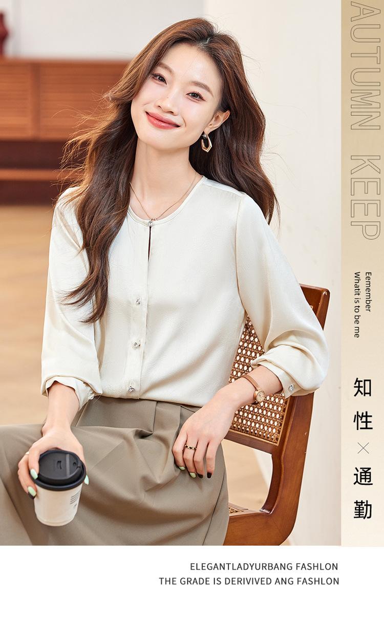 Camisa elegante de cuello redondo de estilo coreano para mujer, otoño 2024, nueva camisa de gasa verde de estilo occidental de alta moda, primavera y otoño