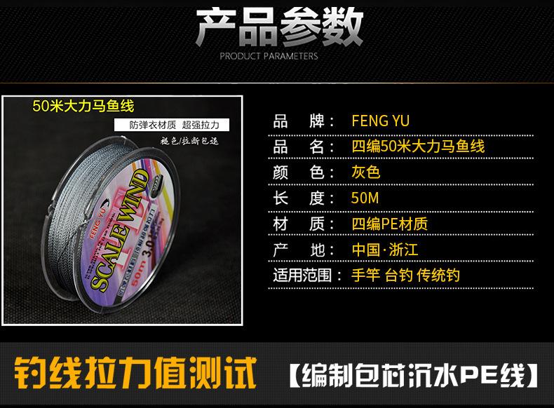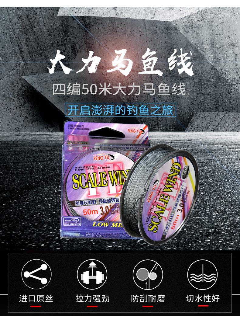 Línea de Pesca Trenzada Dyneema de Cuatro Hebras 50m Sublínea Aparejos de Pesca Importados Línea de Pesca Anti-Mordida