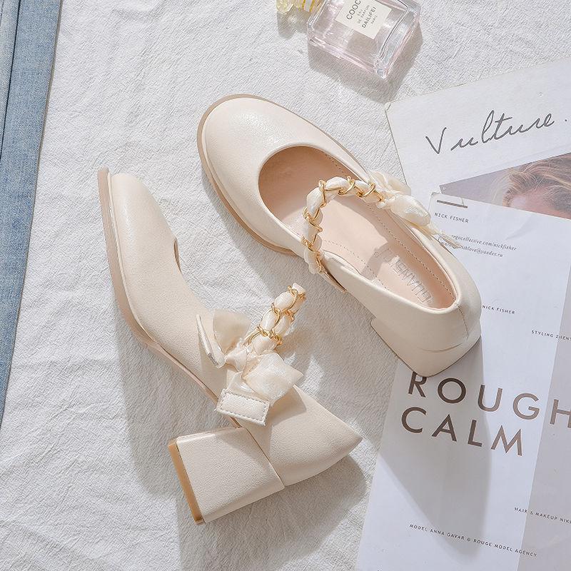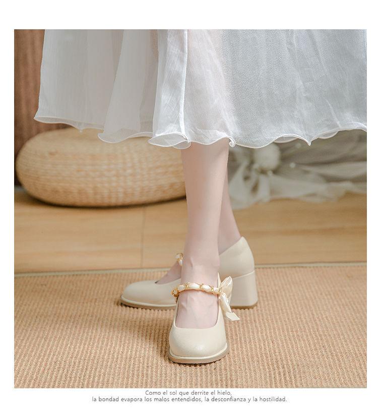 Zapatos de tacón Lizhen de cuero suave Ma estilo francés 2023 nuevos zapatos de vestir de alta gama con cordones y sin tacón de talla pequeña que no cansan los pies