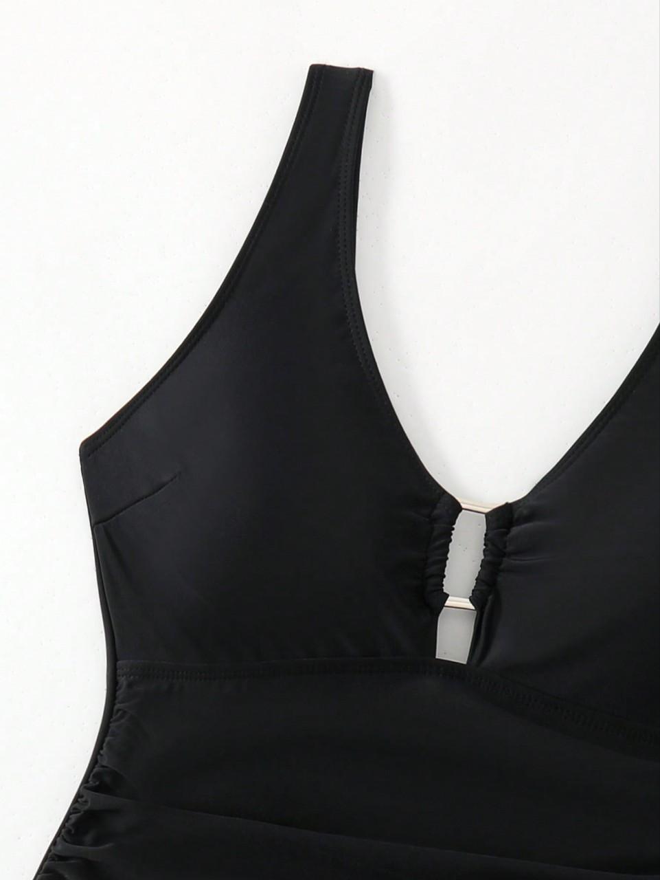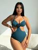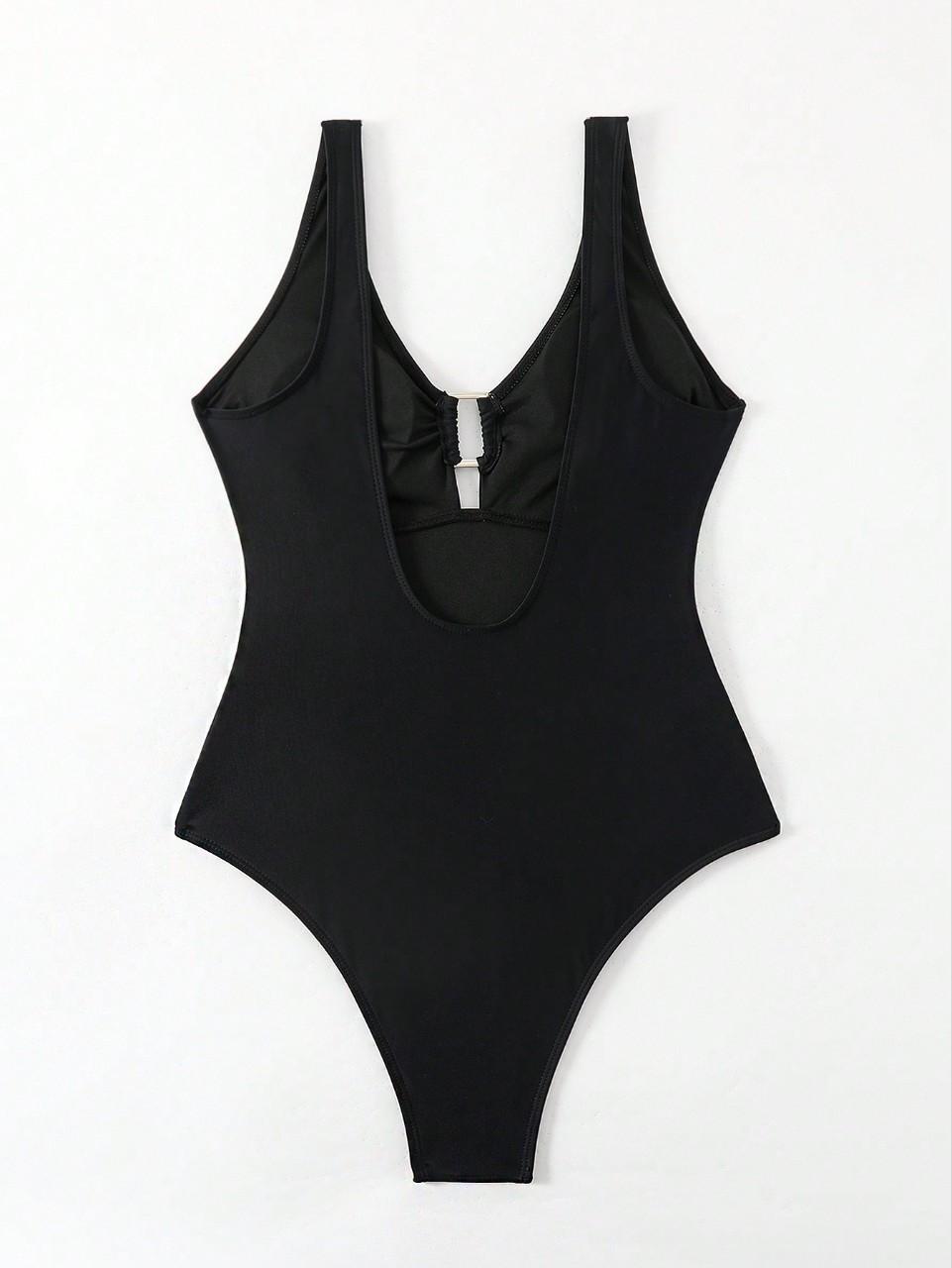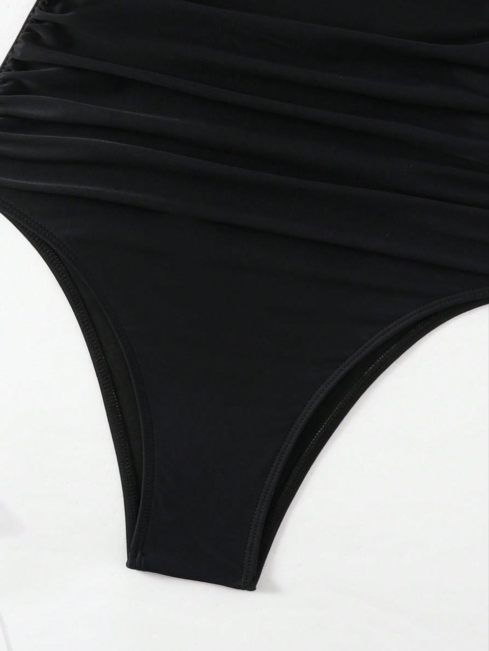 2025 Comercio exterior europeo y americano nuevo color sólido pecho recogido anillo Amazon bikini traje de baño de una pieza al por mayor