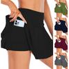 Falda corta de yoga de dos piezas, estilo A, para mujer, informal, deportiva, con cinturón alto y bolsillo, D25049