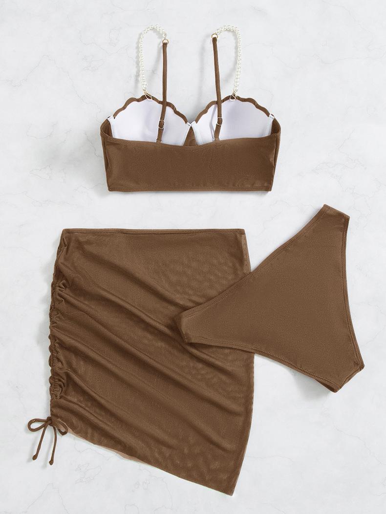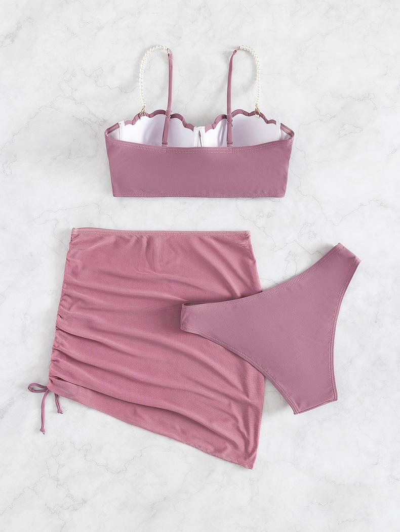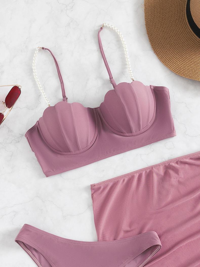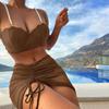 Traje de baño nuevo de comercio exterior para mujer, bikini de verano de tres piezas de color sólido, traje de baño de bikini transfronterizo europeo y americano, traje de baño por lotes