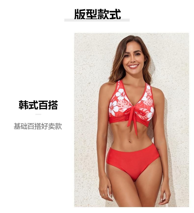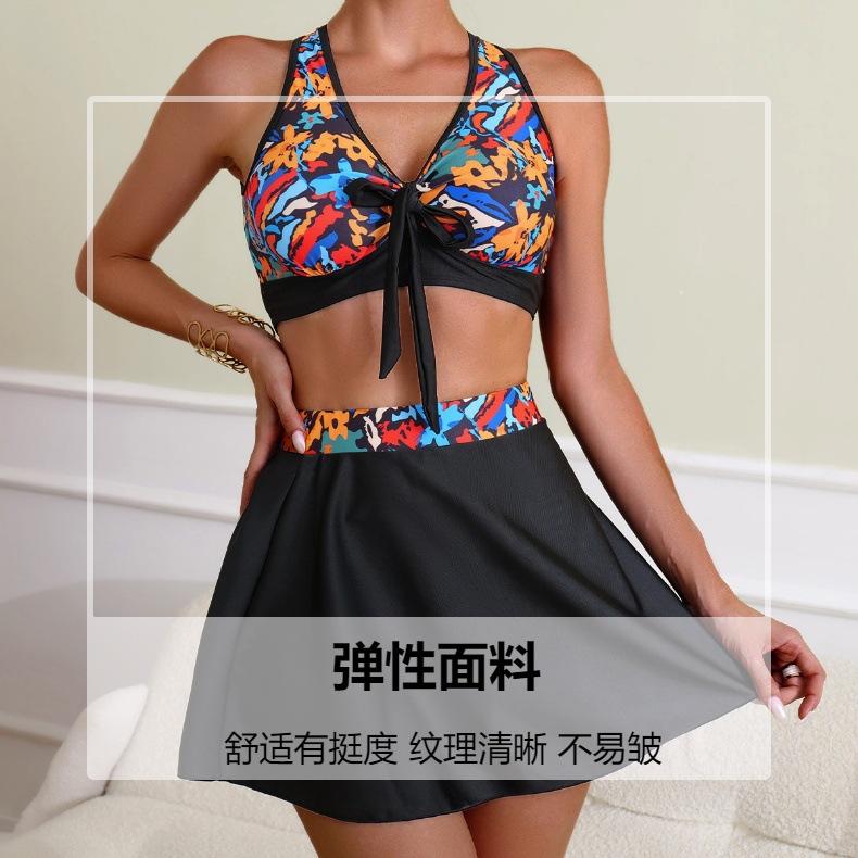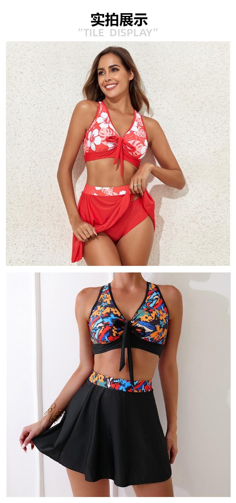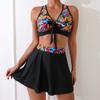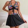 Traje de baño tankini transfronterizo europeo y americano, conjunto de tres piezas con falda floral sexy y cuello dividido de Amazon para mujer