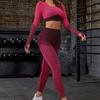 Traje Deportivo Popular Europeo y Americano sin Costuras para Mujer, Ajustado Adelgazante de Cintura Alta, Traje de Fitness de Manga Larga para Pilates, Ropa de Yoga