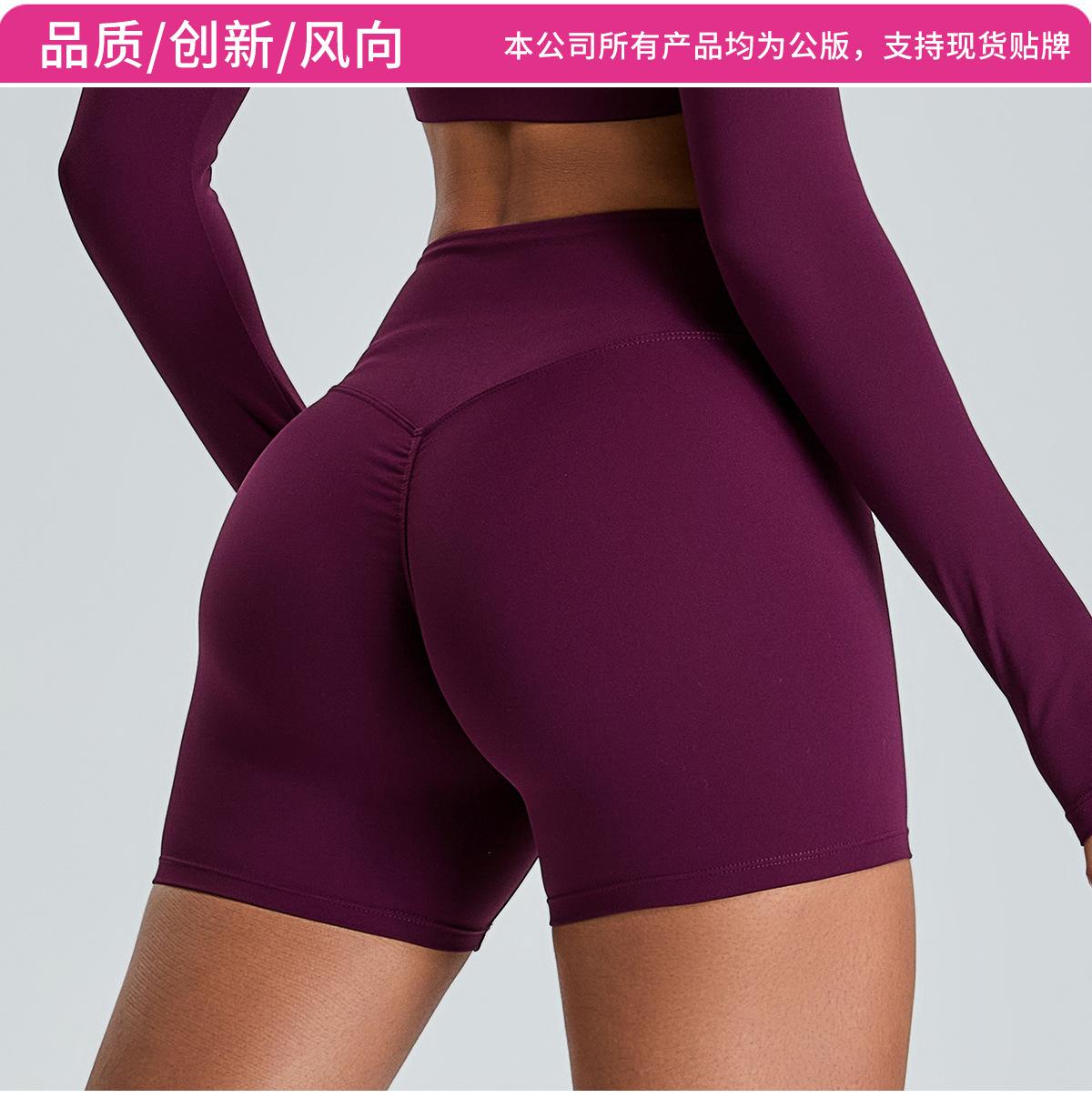 Pantalones de yoga ajustados de cintura alta de tres puntos para mujer, estilo europeo y americano, con hermosos pantalones cortos deportivos de color melocotón, de secado rápido, para fitness al aire libre.