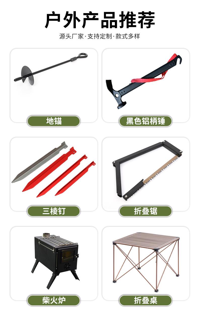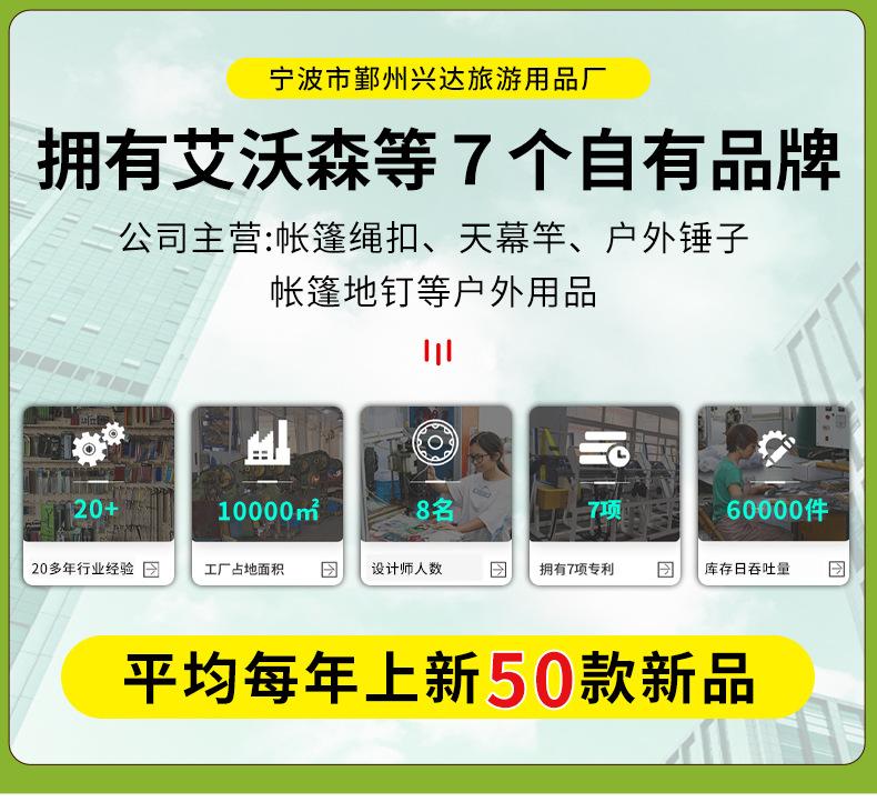 La Fábrica de Productos Turísticos Ningbo Yinzhou Xingda se encuentra en la ciudad de Ningbo, provincia de Zhejiang. Es una empresa especializada en la producción y procesamiento de hebillas para cuerdas de viento, clavos de tierra, anclajes, mesas de exterior, martillos de camping, postes para toldos y otros productos. Se dedica a la fabricación de productos para actividades al aire libre.Durante más de 20 años, hemos sido fabricantes con certificación oficial. Contamos con una fábrica de 10.000 metros cuadrados con más de 20 líneas de ensamblaje y procesamiento. Asimismo, contamos con más de 30 equipos de producción profesionales, con un inventario diario de...Más de 60.000 piezas.