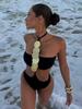 Nuevo Bikini Sexy Ajustado Negro Europeo y Americano Traje de Baño de Tres Piezas con Abertura Comercio Exterior Transfronterizo Venta al por Mayor al Contado