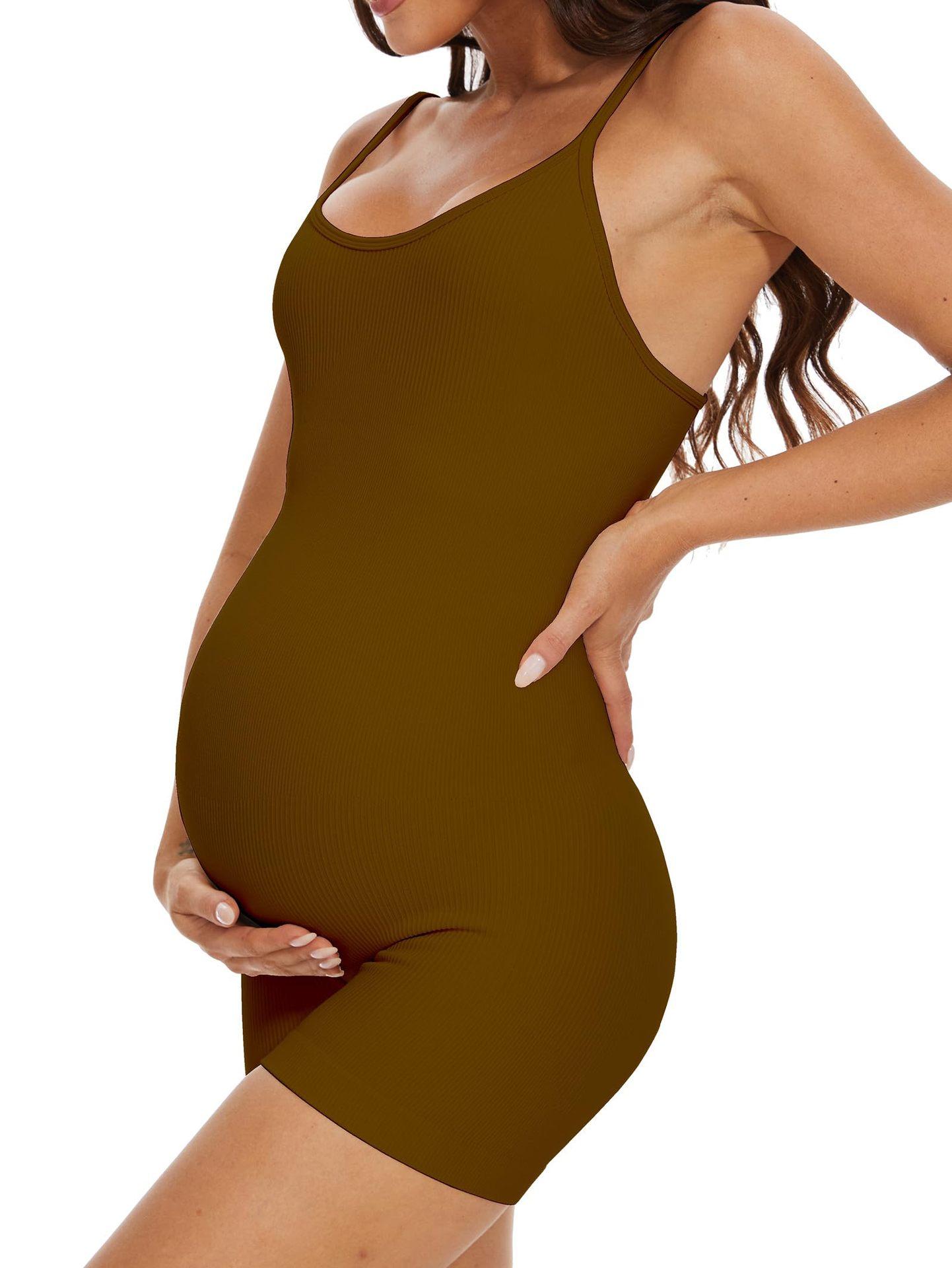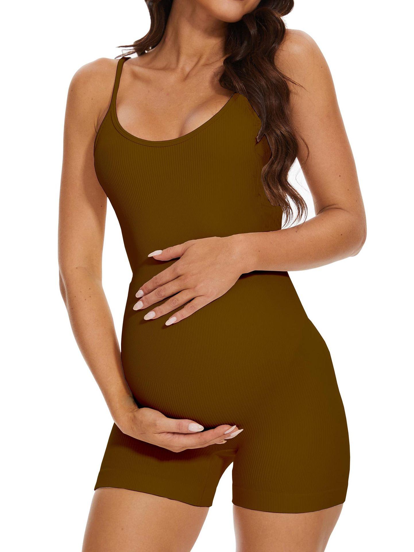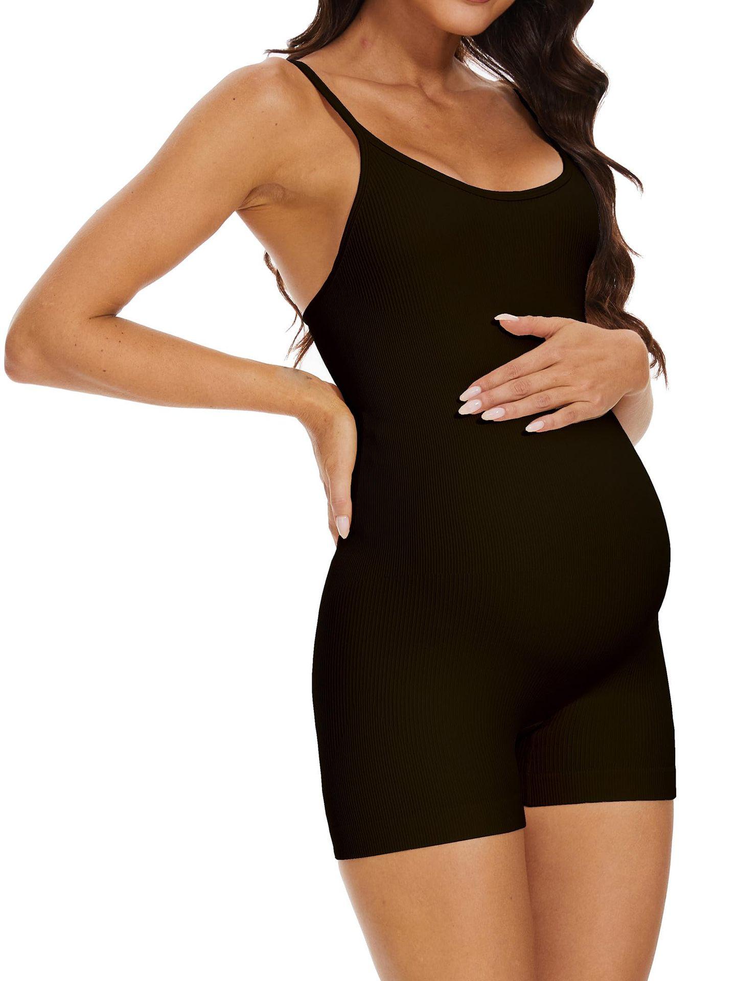 Traje de baño de una pieza para mujeres embarazadas 2025 Amazon Nuevo Traje de baño de color sólido de alta elasticidad para mujer Estilo europeo y americano Traje de baño de cabestrillo para el vientre Comercio exterior