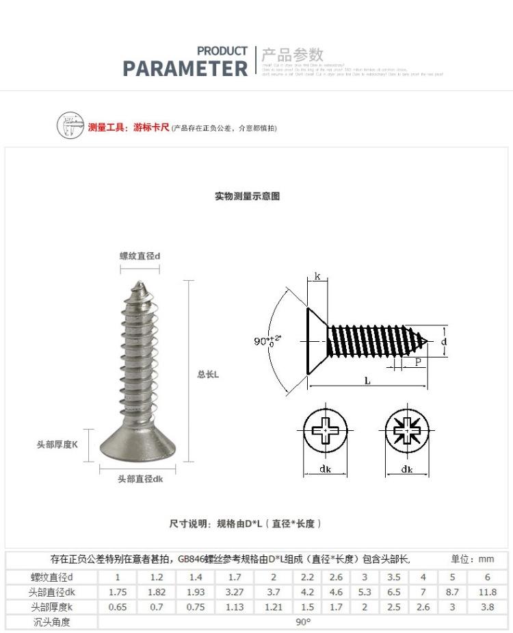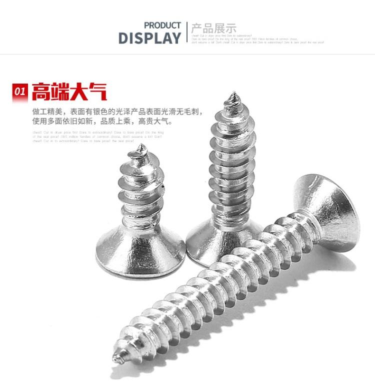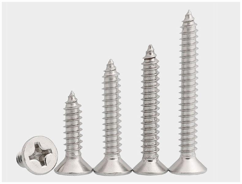 Tornillo autorroscante de acero inoxidable 304 de 6 mm, M2M3M4M5M, tornillo de extensión de cabeza avellanada Phillips, tornillo para madera, cabeza plana