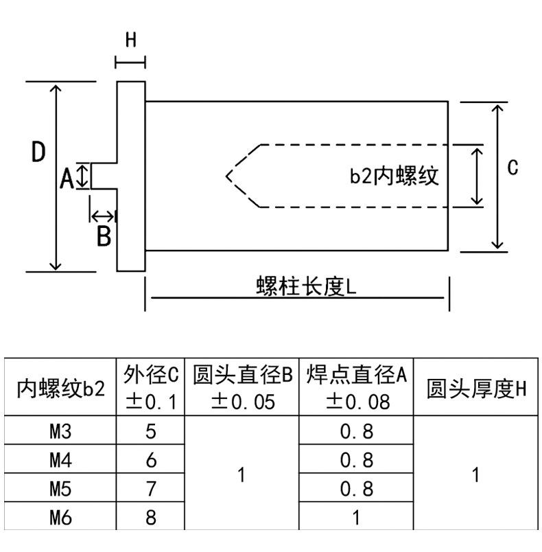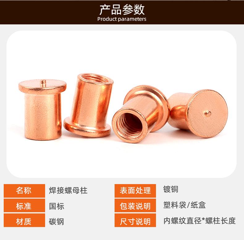 Tornillo de soldadura por puntos con rosca interna revestida de cobre, perno de soldadura, perno de soldadura, tornillo de soldadura, clavo de soldadura M3M4M5M6