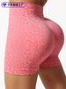 Pantalones cortos deportivos de jacquard con estampado de leopardo, mallas elásticas para correr y fitness, pantalones de yoga de cintura alta con diseño transfronterizo europeo y americano.