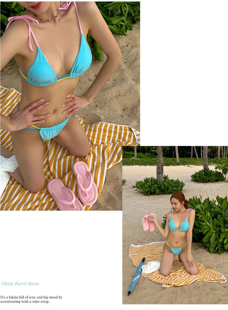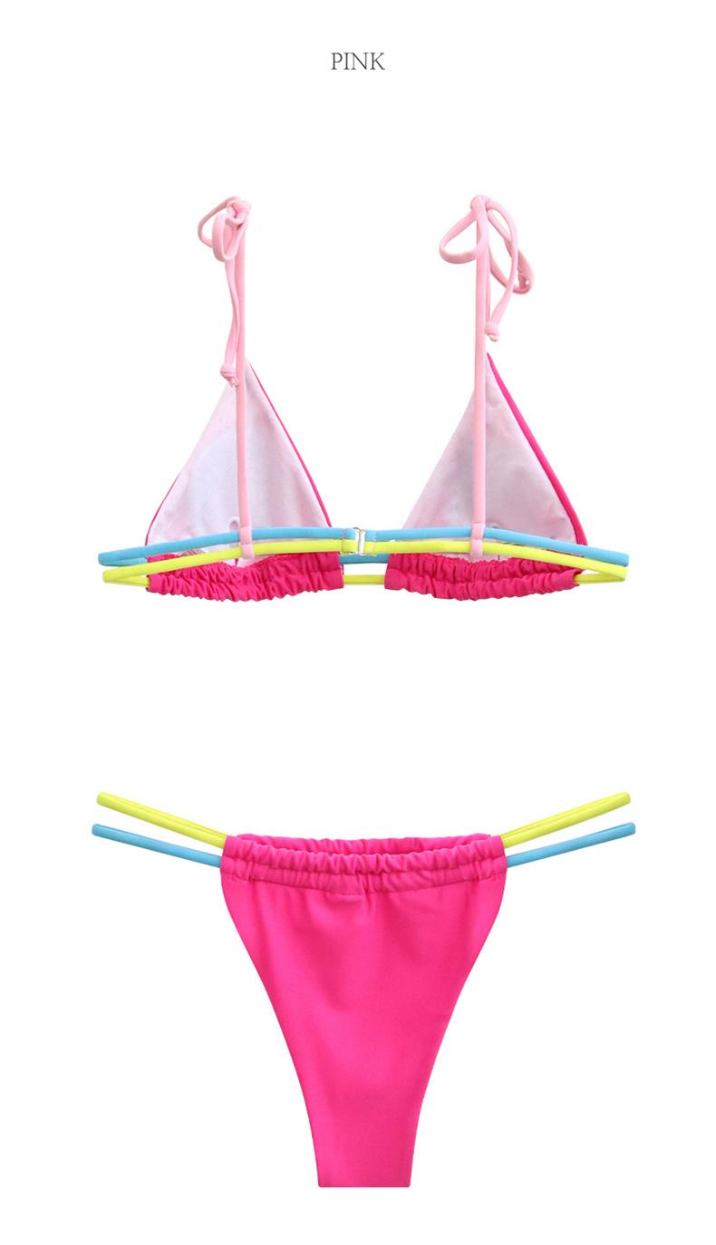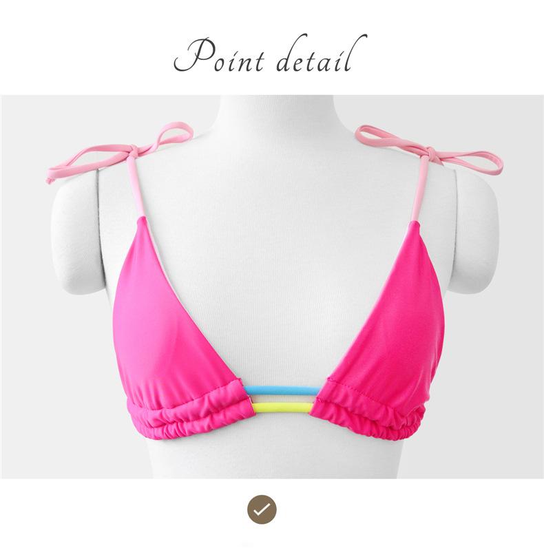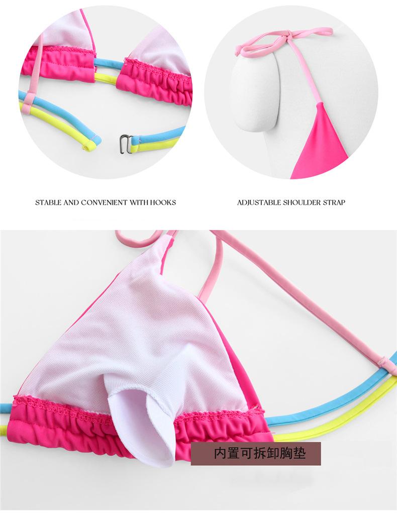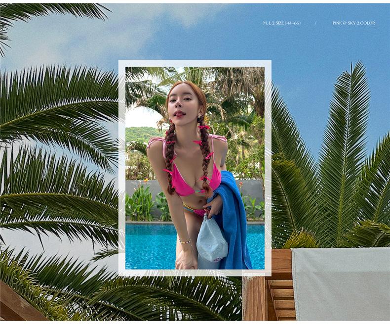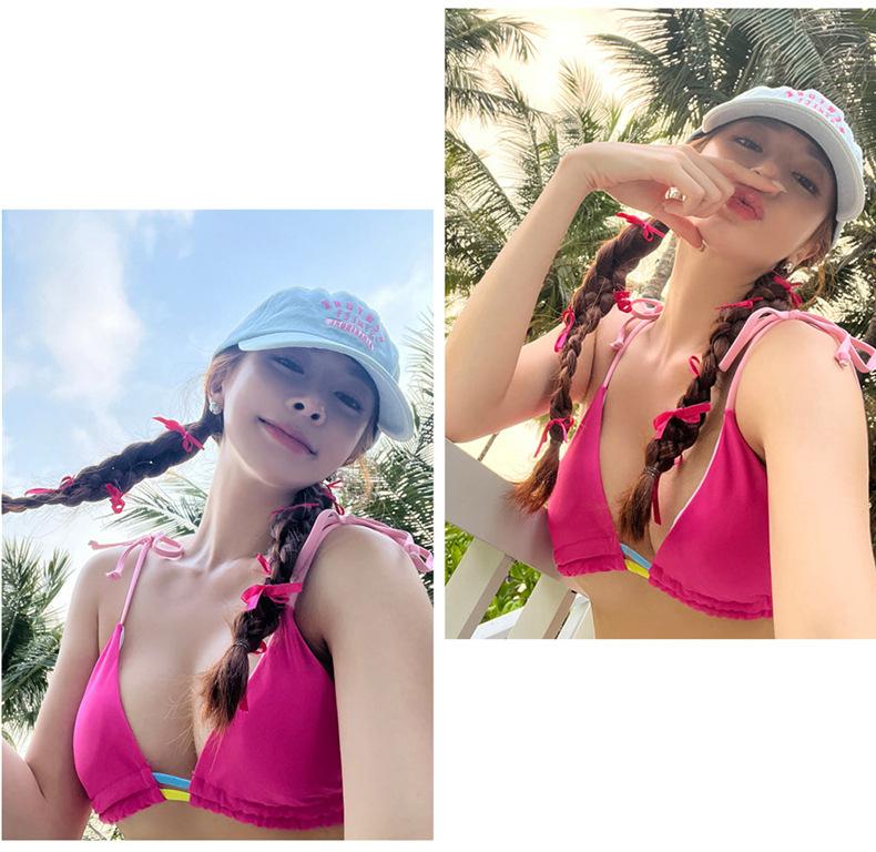Nuevo traje de baño de estilo japonés-coreano para mujer, sexy, con push-up de pecho pequeño, tirantes coloridos, bikini dividido para chica dulce.