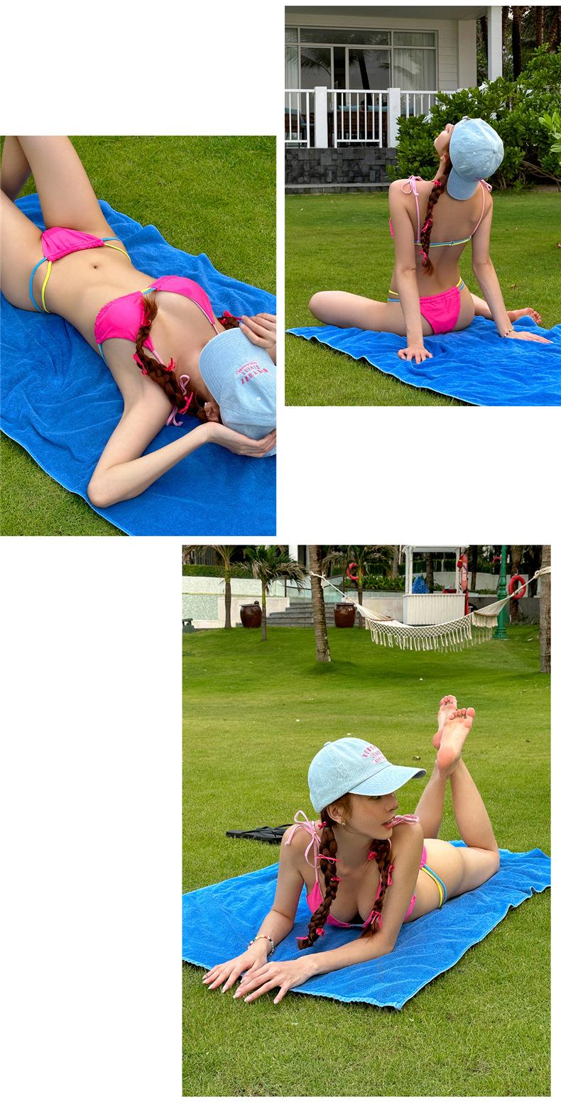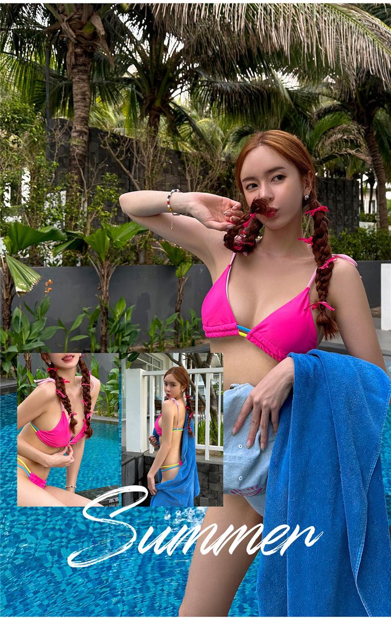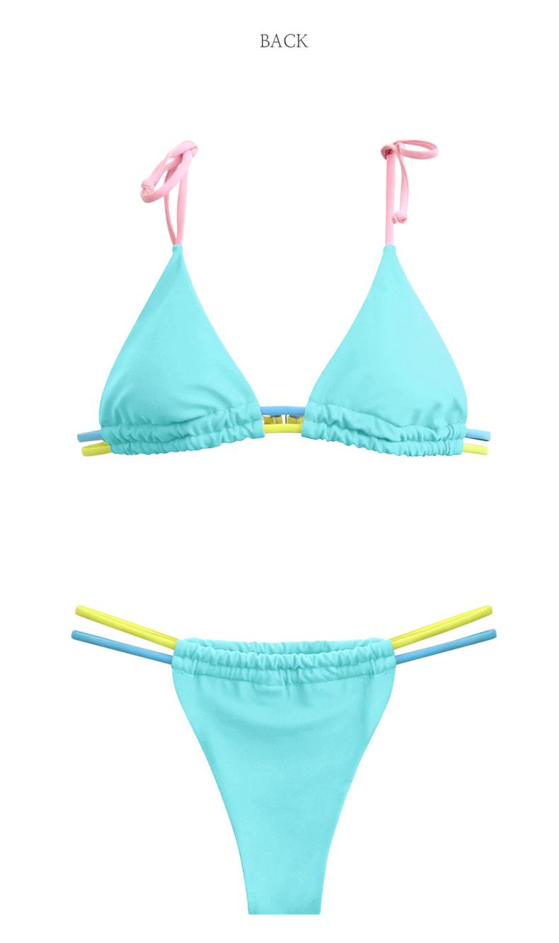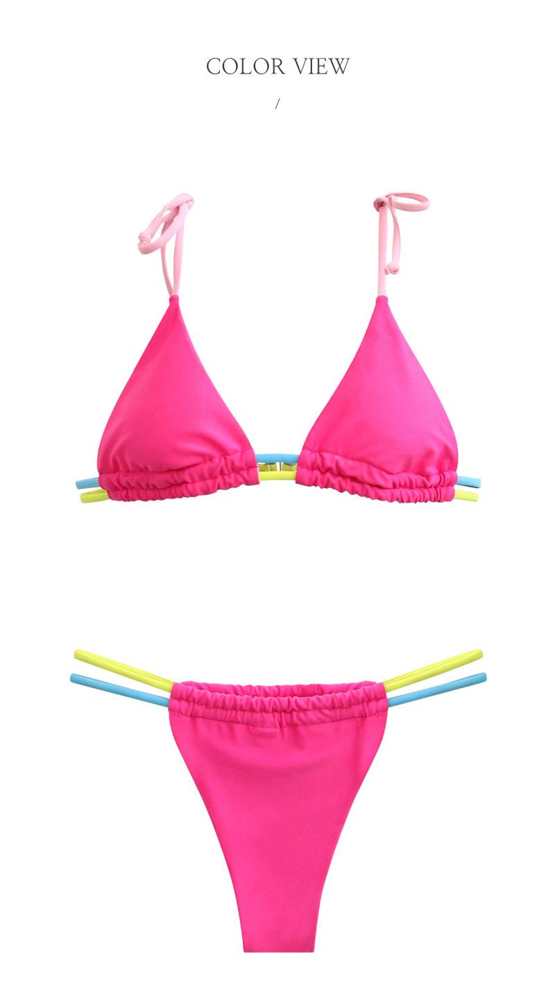 Nuevo traje de baño de estilo japonés-coreano para mujer, sexy, con push-up de pecho pequeño, tirantes coloridos, bikini dividido para chica dulce.