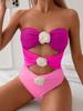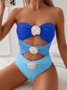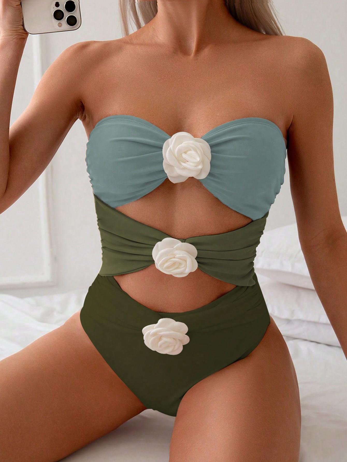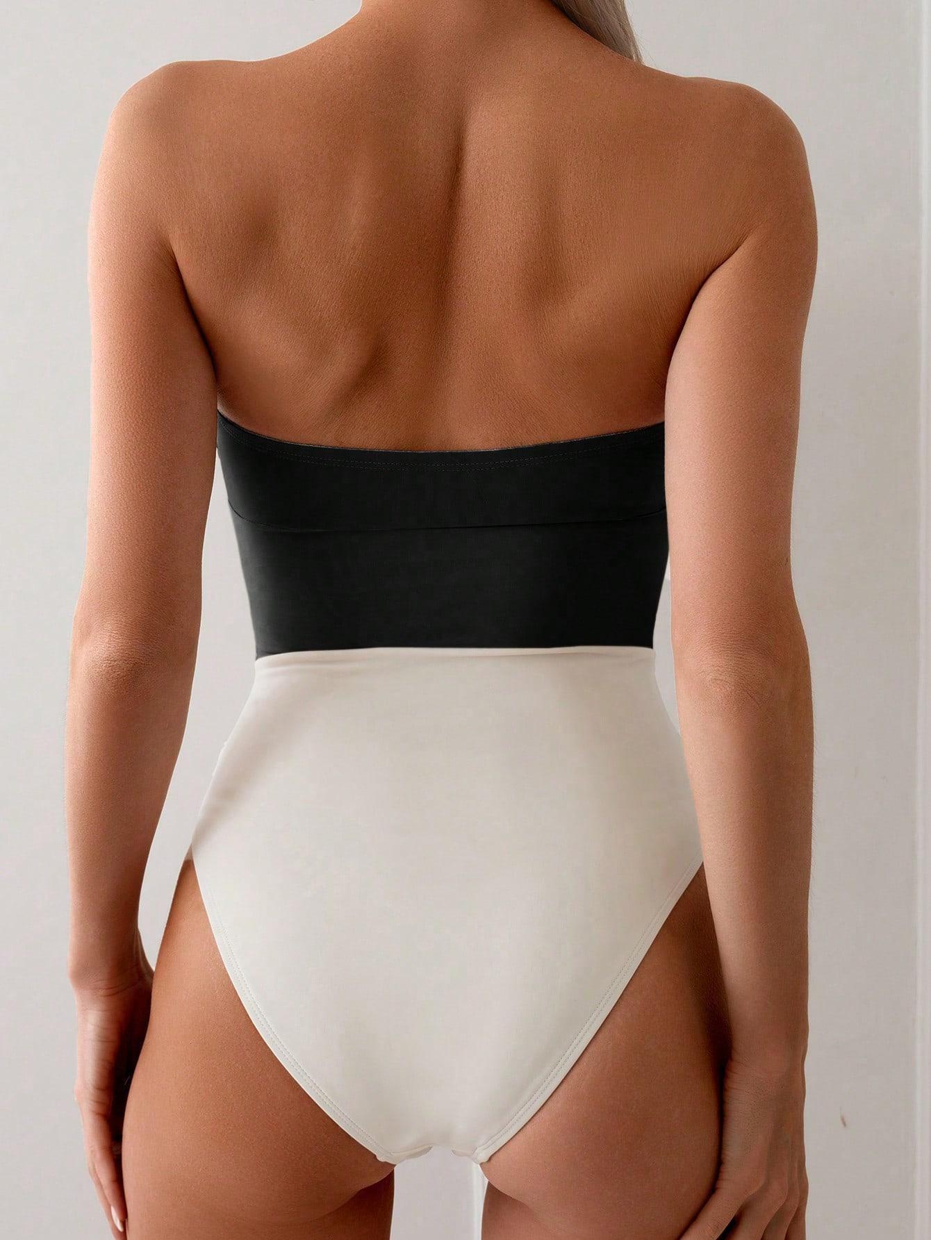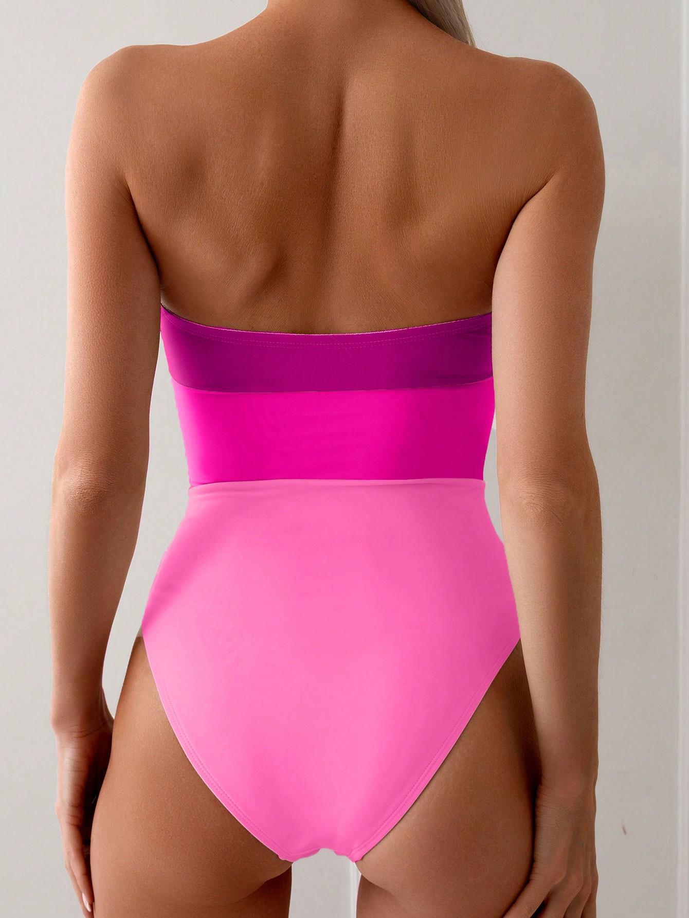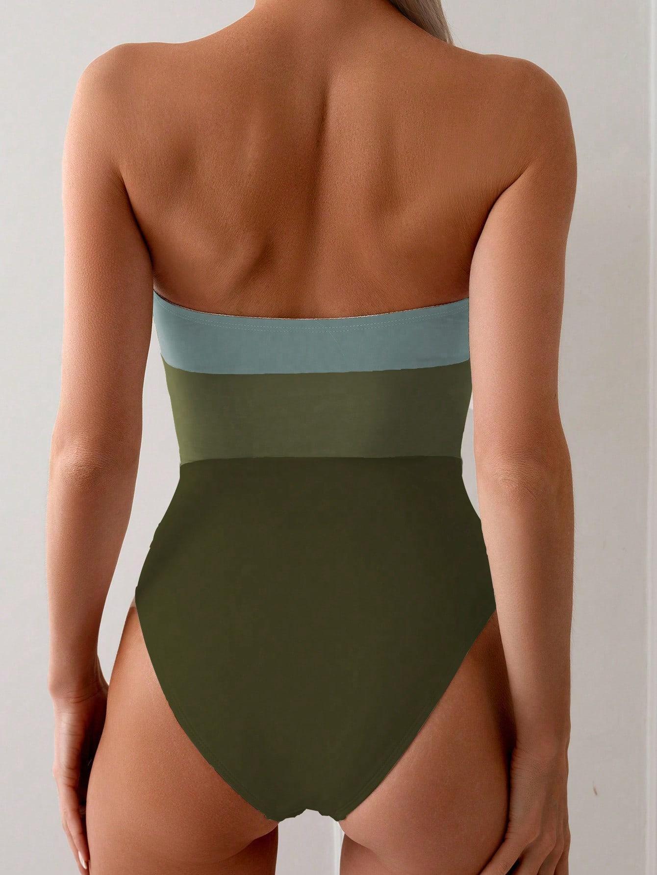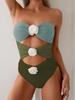 Traje de Baño Nuevo 2025 Empalme de Color Puro Popular Hebilla Metálica Traje de Baño Amazon Europeo y Americano Transfronterizo Traje de Baño de Una Pieza