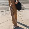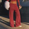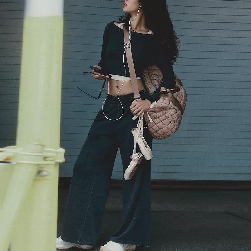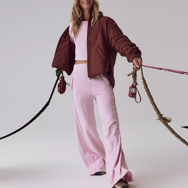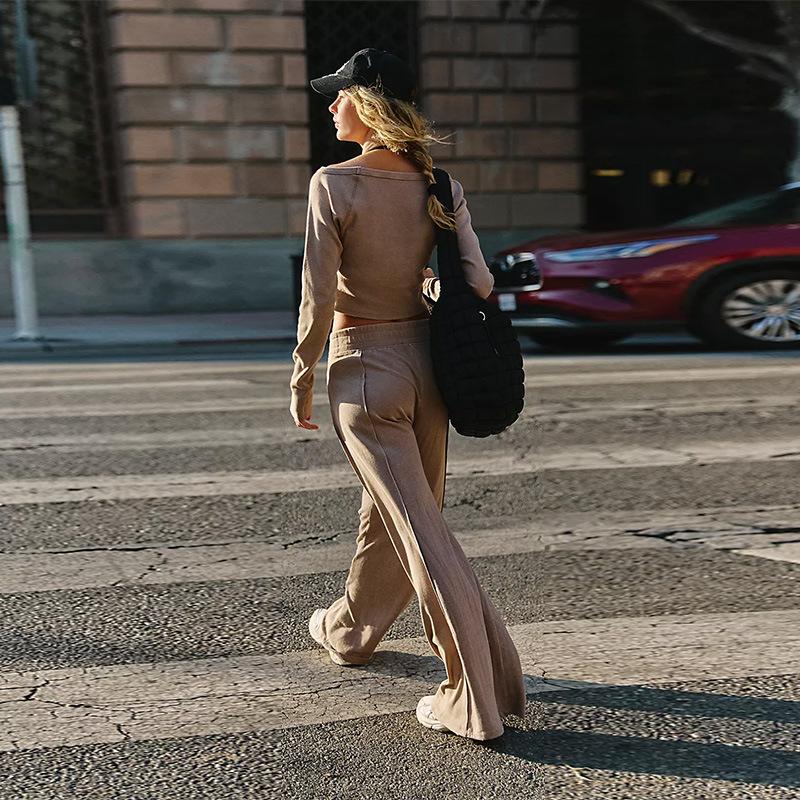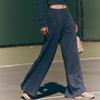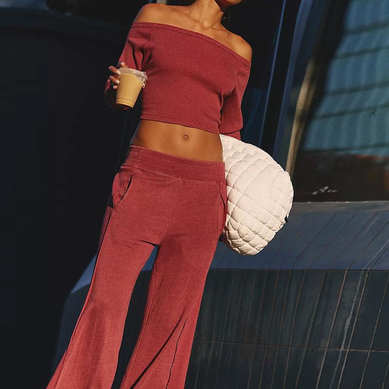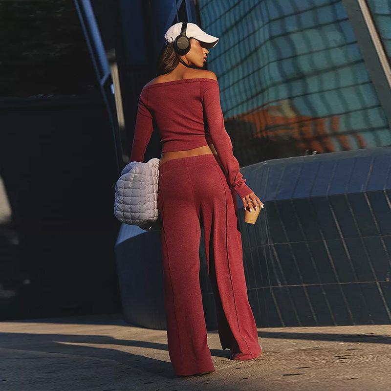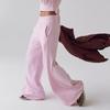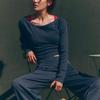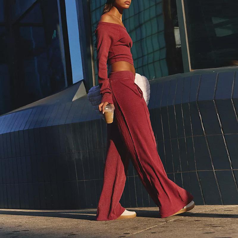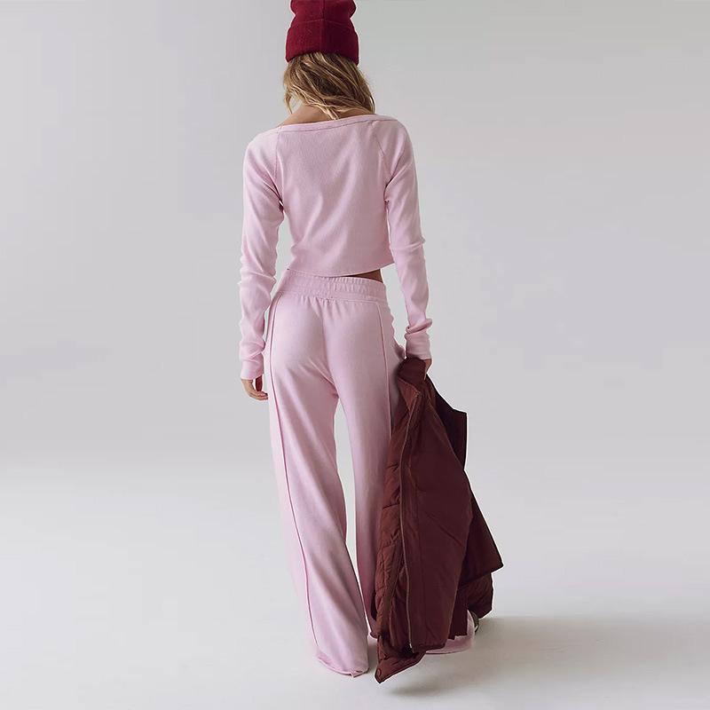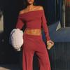 Top de yoga de manga larga europeo y americano transfronterizo, pantalones anchos deportivos de exterior de alta elasticidad, traje deportivo de fitness para mujer de color sólido con ombligo