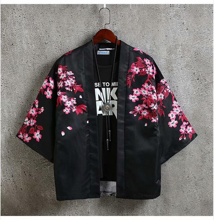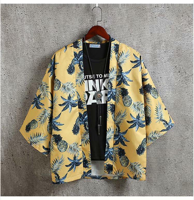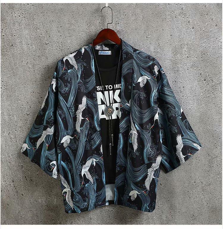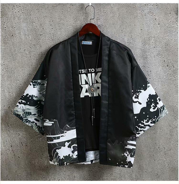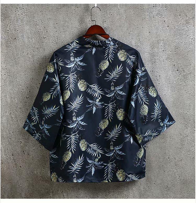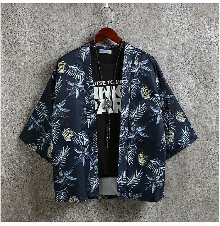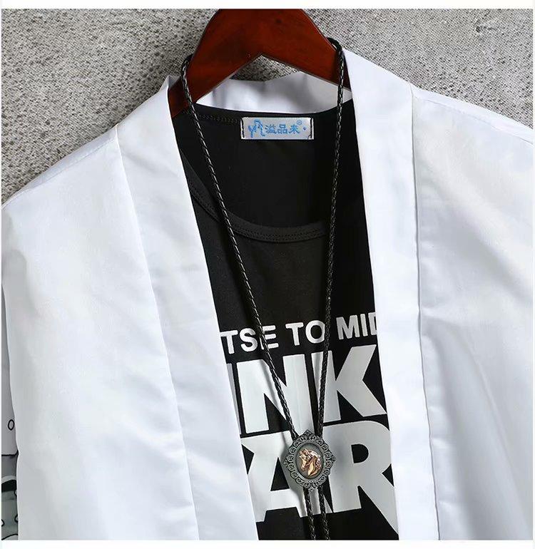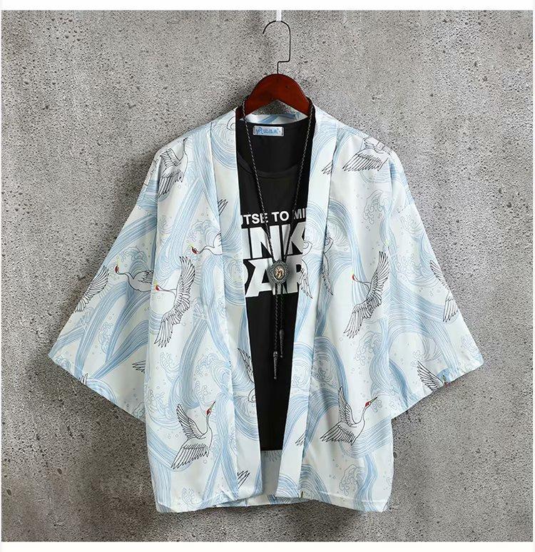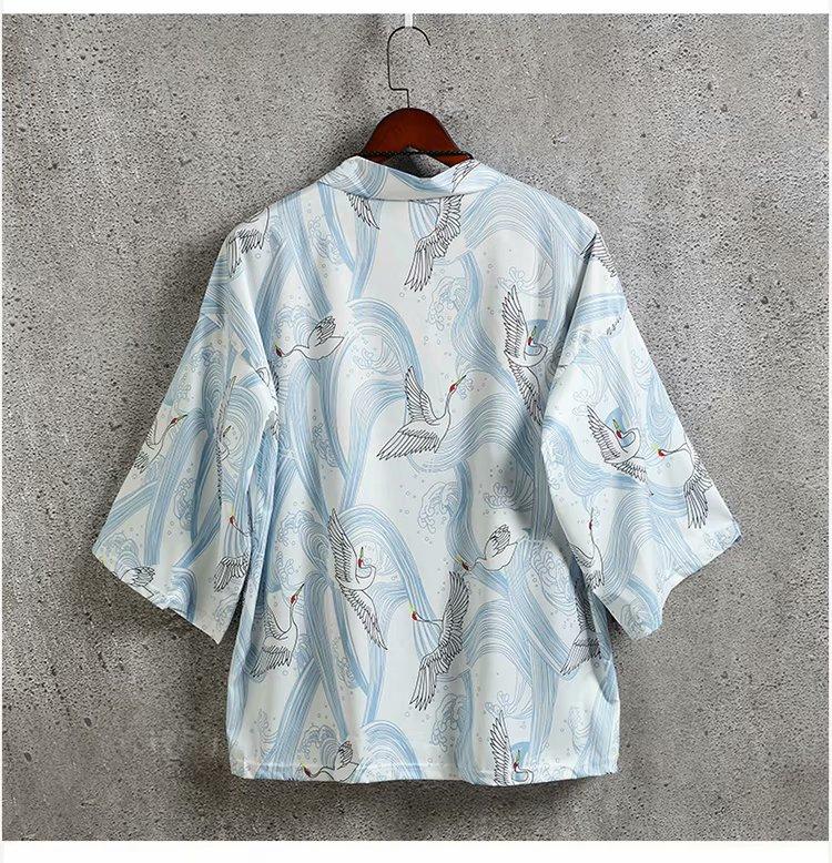 Bata Kimono Estilo Japonés para Hombre y Mujer Ins Chaqueta Combinable Camisa de Manga Siete Puntos Marca de Moda Cárdigan Suelto Ropa Protectora Solar