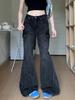 Pantalones vaqueros negros de estilo americano High Street con micro-lar para mujer, de primavera y otoño, holgados, rectos, adelgazantes, de cintura alta, de pierna ancha y a la moda.