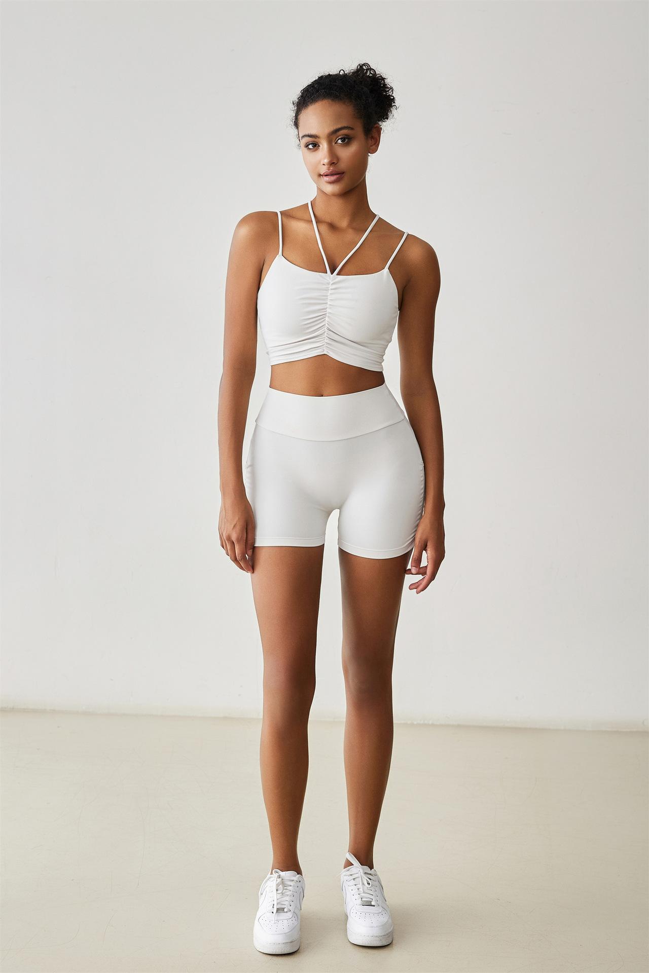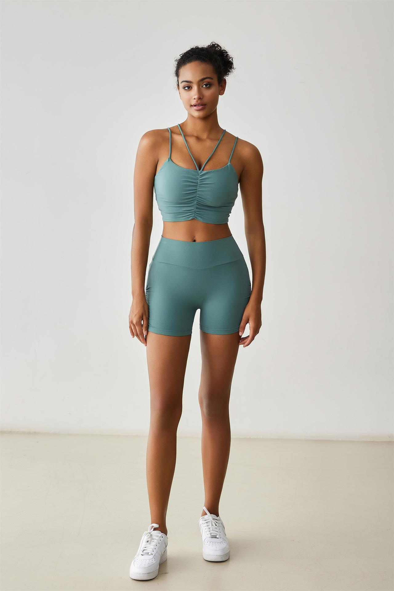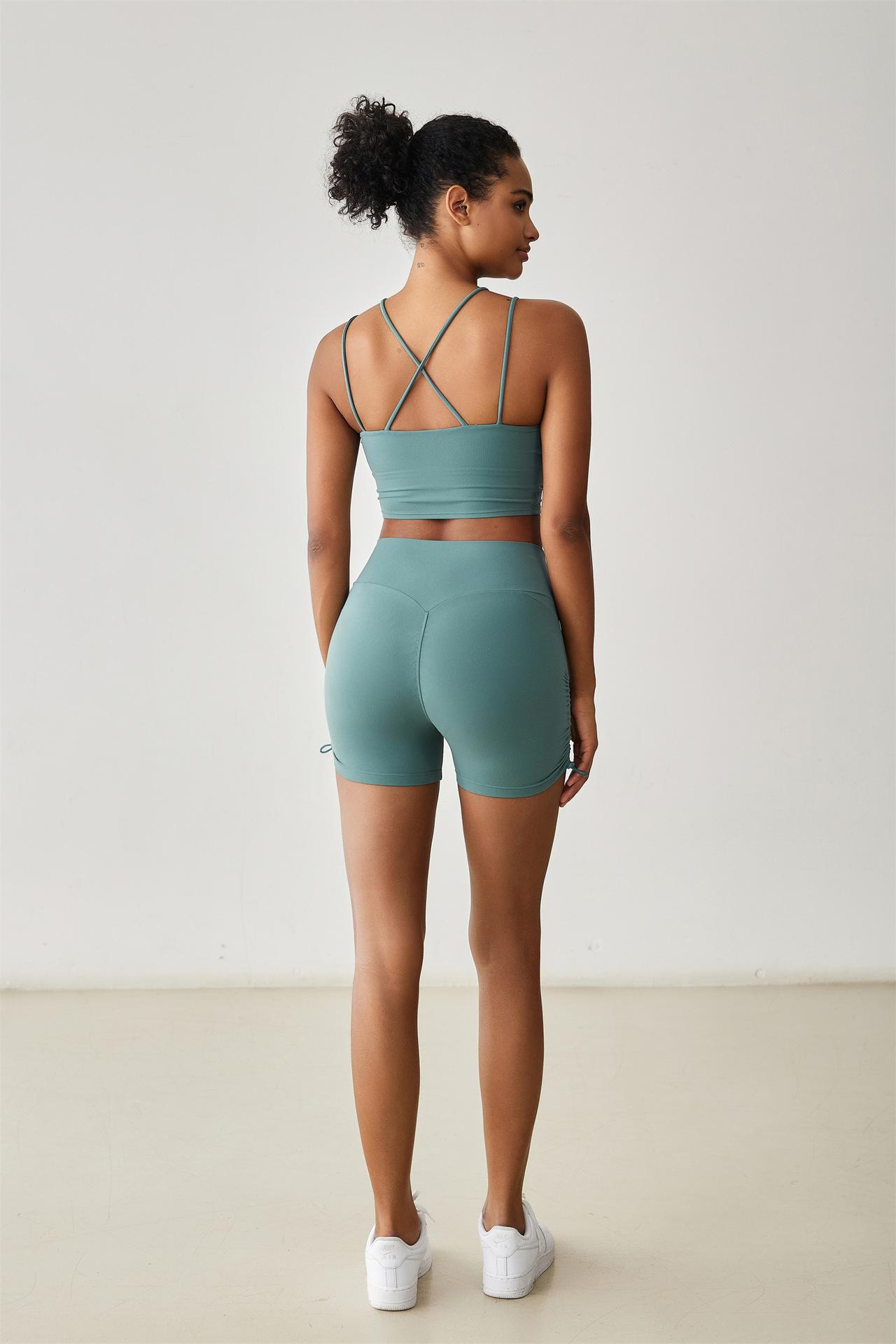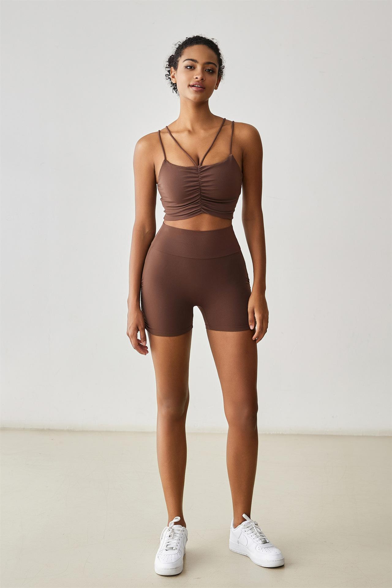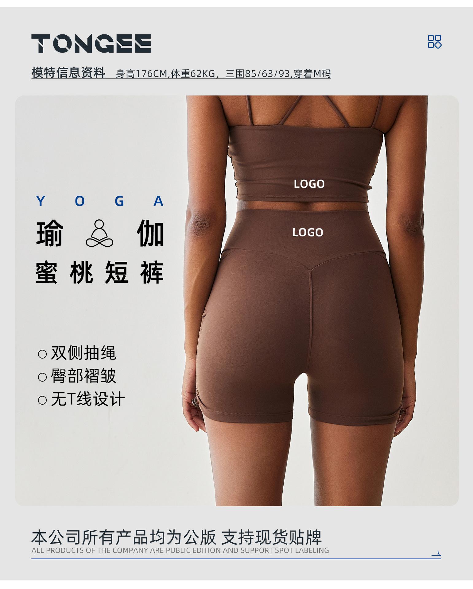Pantalones de yoga de cintura alta con pliegues y cordón para mujer, estilo Tongji, europeos y americanos, con cintura alta, color melocotón