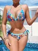Comercio Exterior Bikini Sexy para Mujer Europeo y Americano con Tiras al Cuello Estampado Floral Traje de Baño Vacaciones en la Playa Conjunto de Dos Piezas Dividido