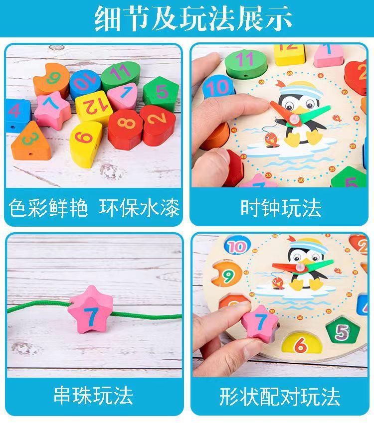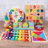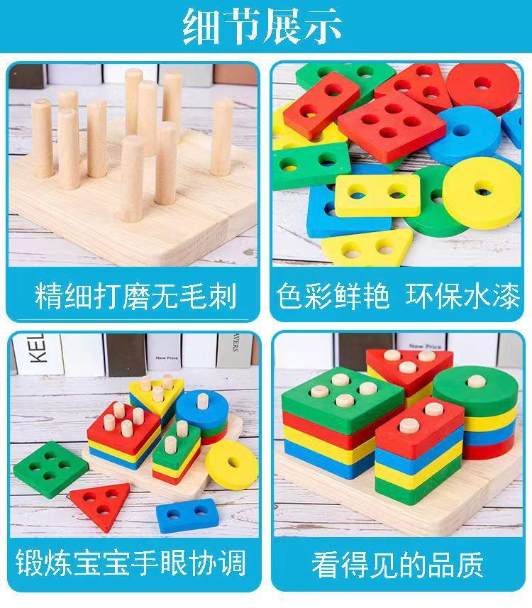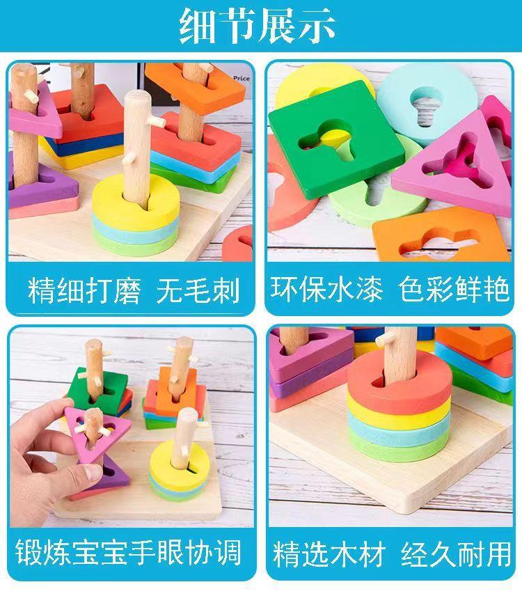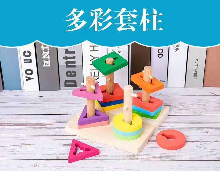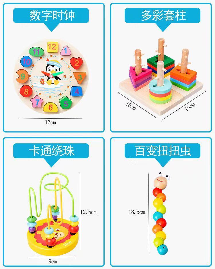 Arpa de ocho tonos para niños, reloj de enhebrar, torre arcoíris, cuatro juegos de platos con forma de columna, insecto giratorio, juguetes educativos para bebés al por mayor