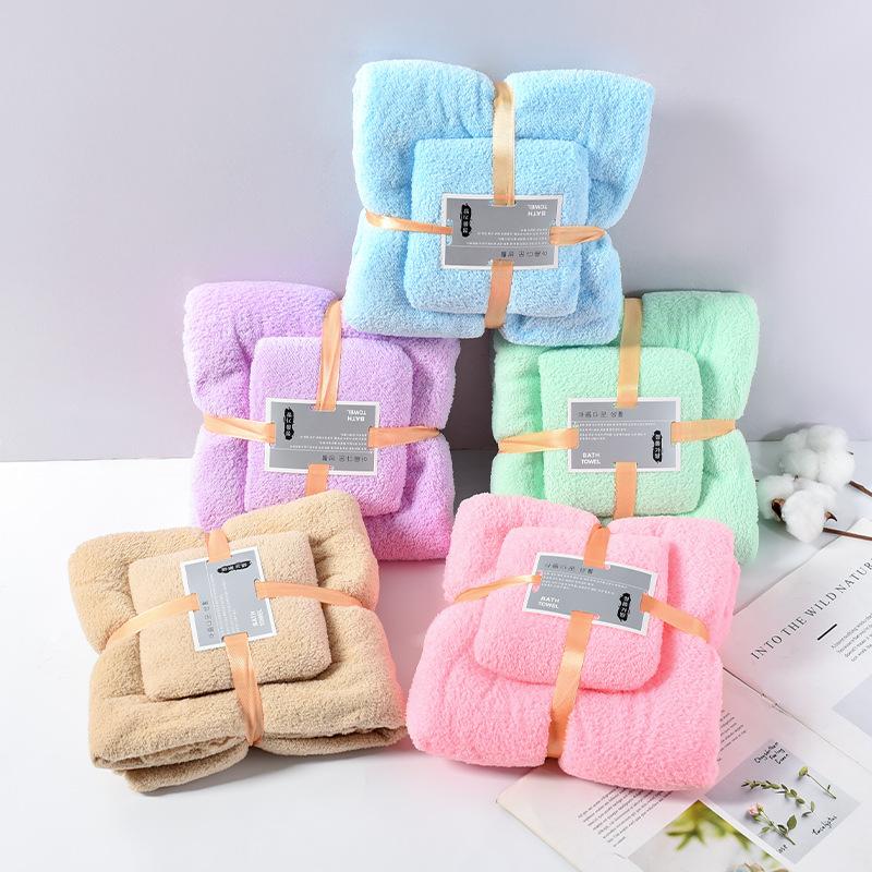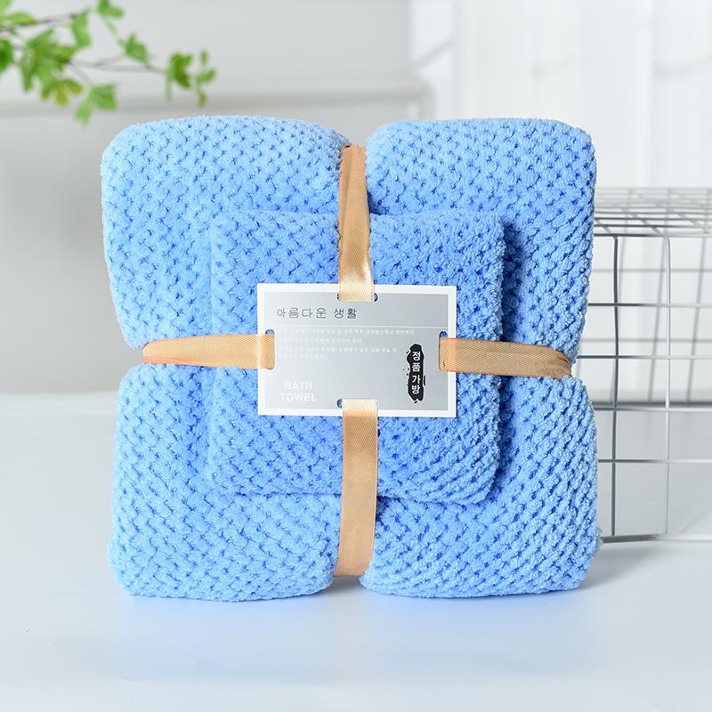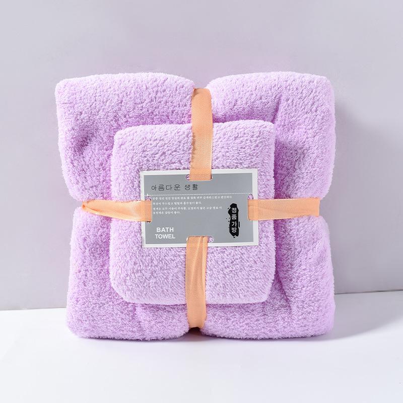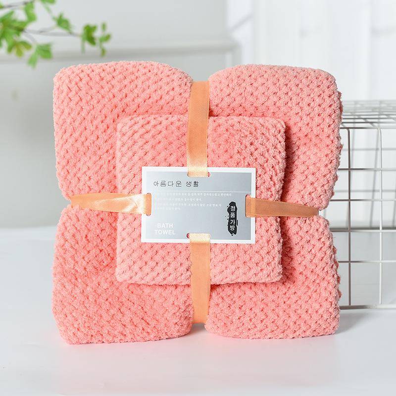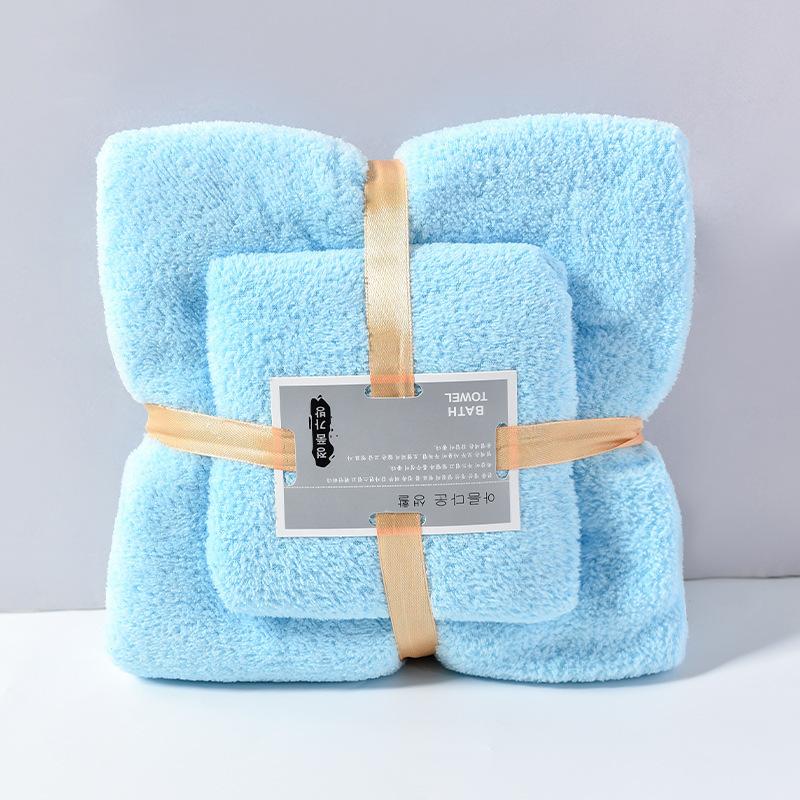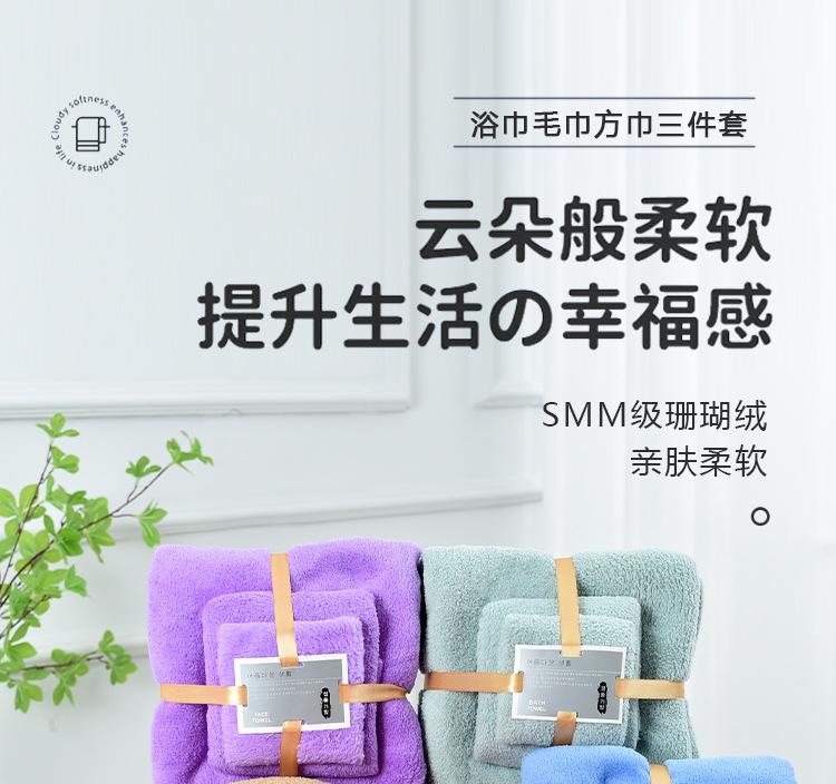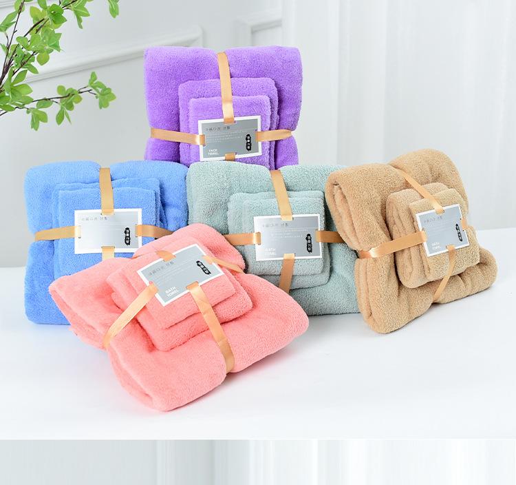 Set de Toalla de Terciopelo Coral Tejido Plano por Urdimbre de Tres Piezas, Espesado, Ampliado, Absorbente, Sin Pelusa, Transpirable, Juego de Toallas de Baño al Por Mayor