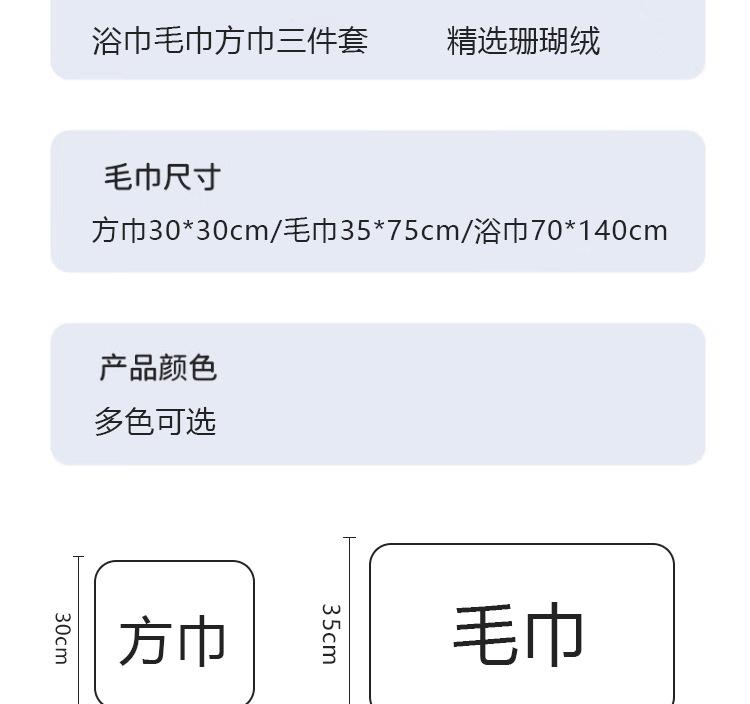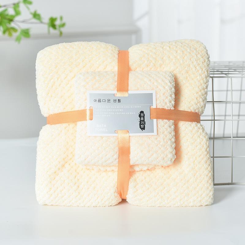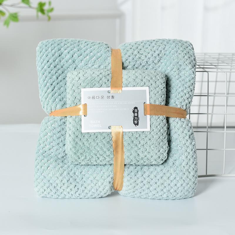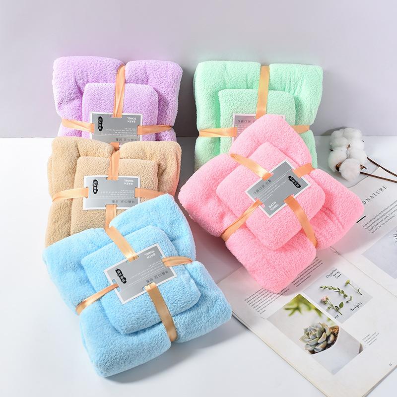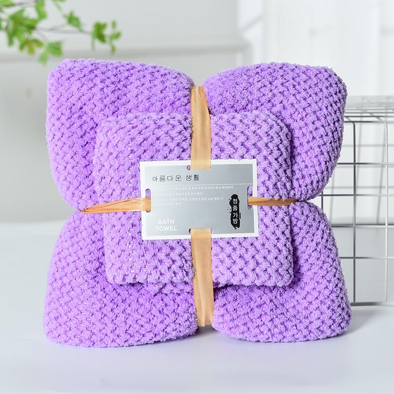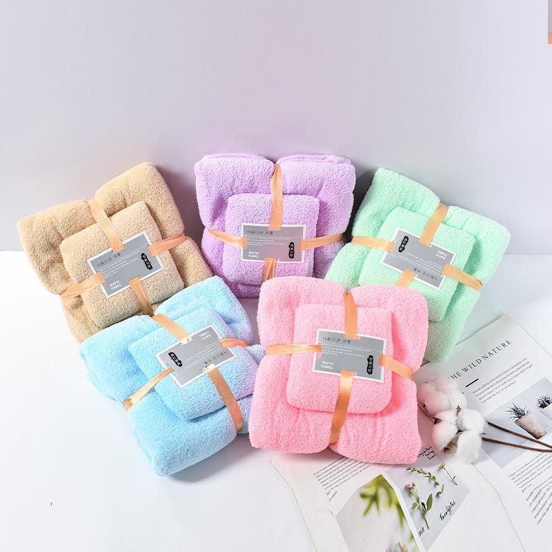 Set de Toalla de Terciopelo Coral Tejido Plano por Urdimbre de Tres Piezas, Espesado, Ampliado, Absorbente, Sin Pelusa, Transpirable, Juego de Toallas de Baño al Por Mayor
