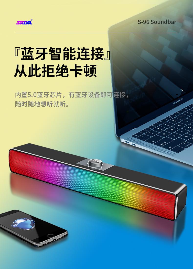 Altavoz de computadora transfronterizo Luz de ambiente RGB Altavoz de computadora con cable Bluetooth Audio largo Escritorio Universal Creativo USB Escritorio