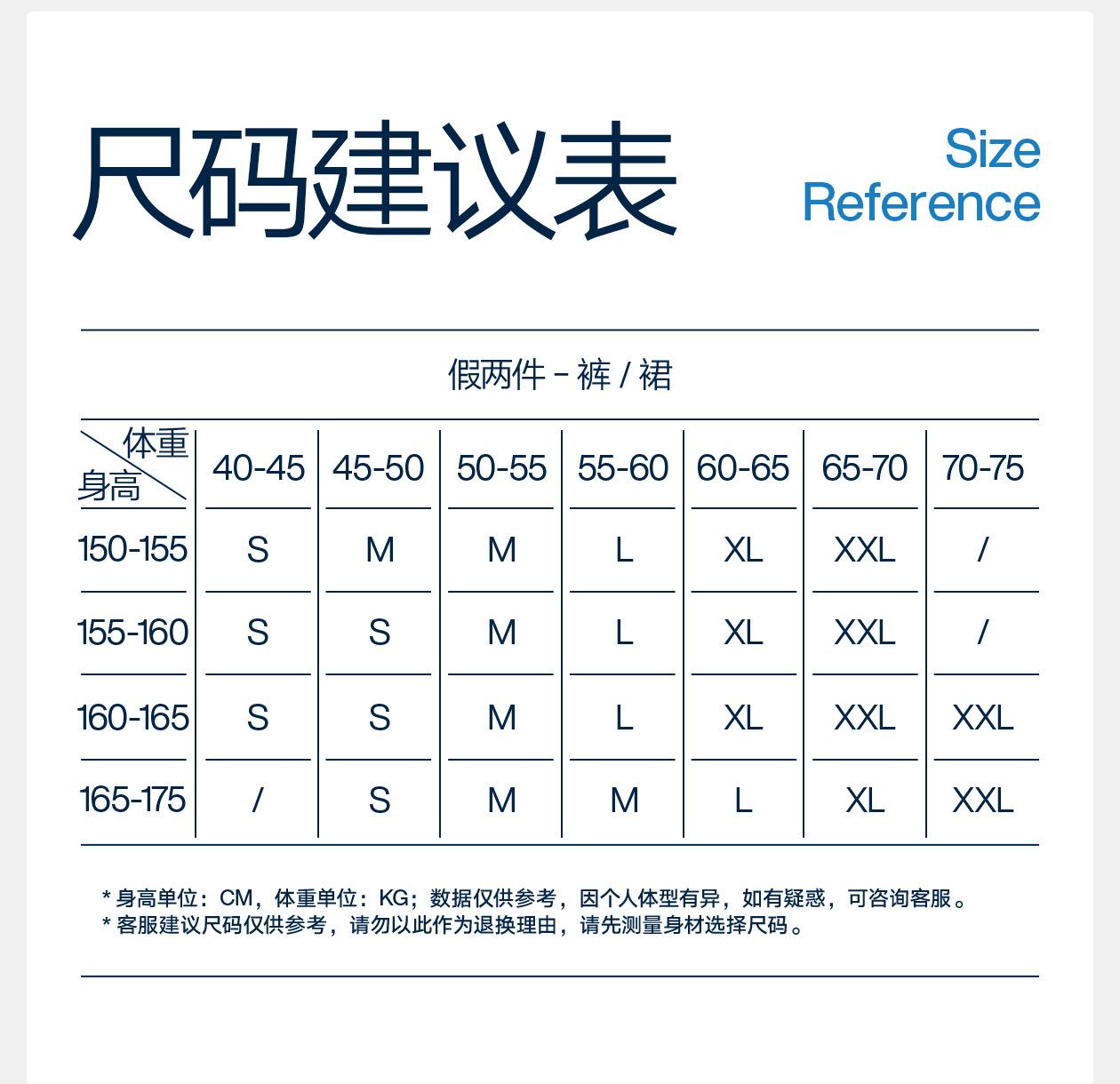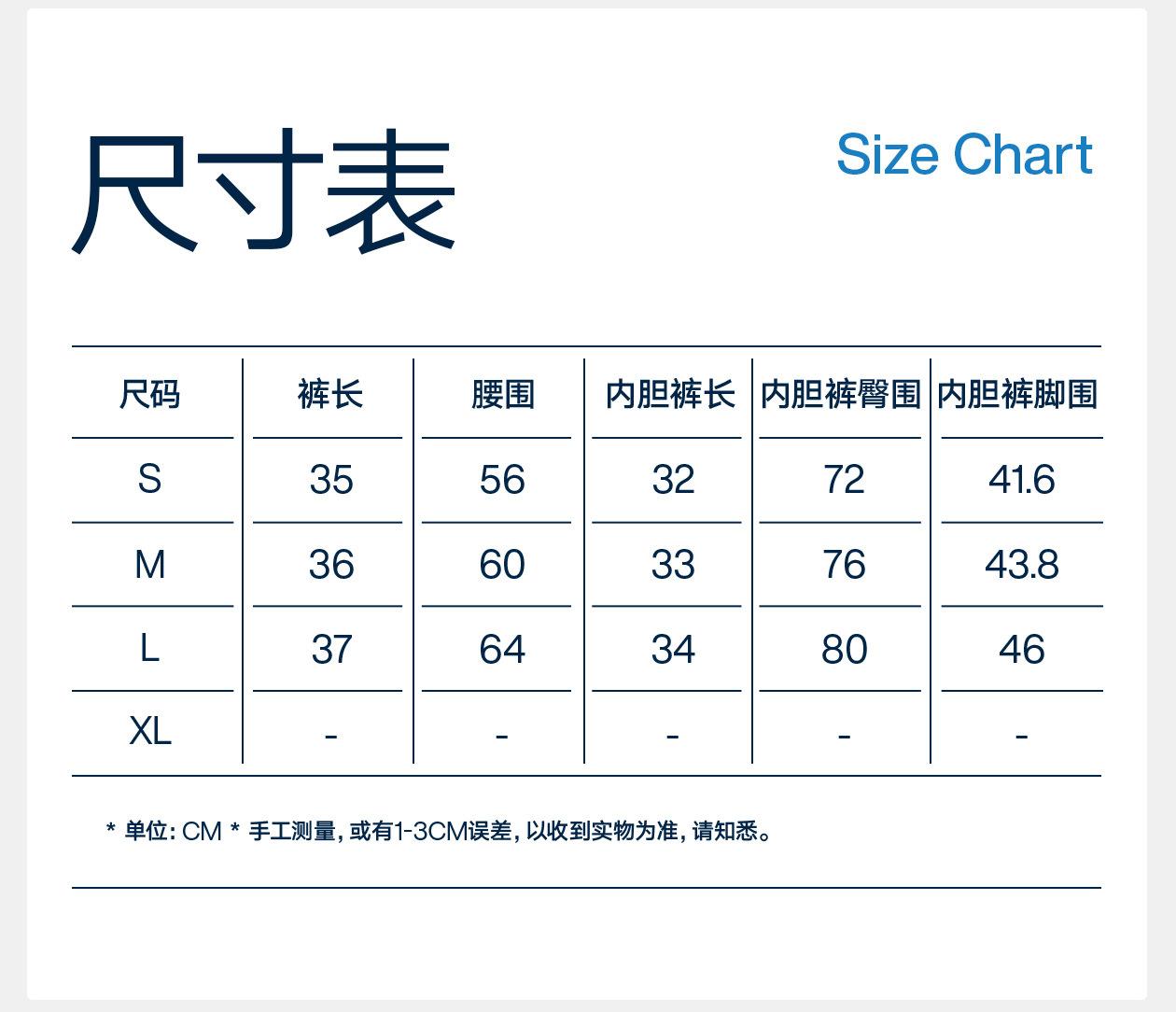 S, M, L, XL