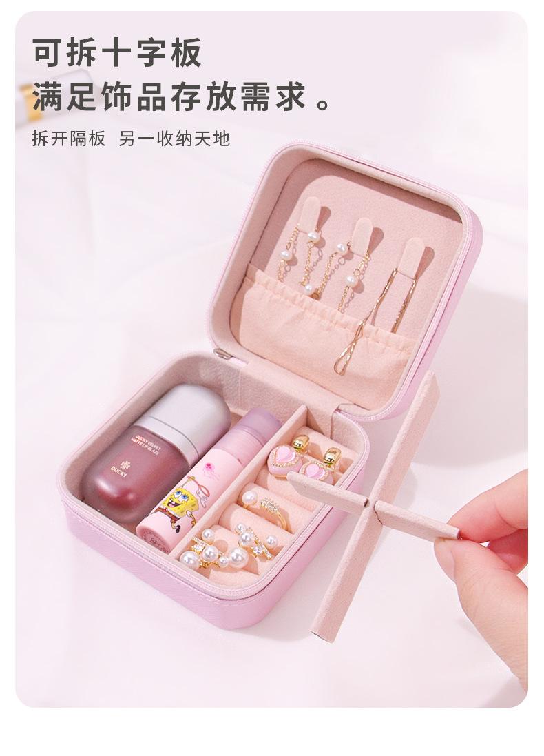Caja de almacenamiento de viaje con espejo cruzado 2024, una generación de diseño de partición de múltiples rejillas, caja de almacenamiento para aretes, collares, anillos y joyas.