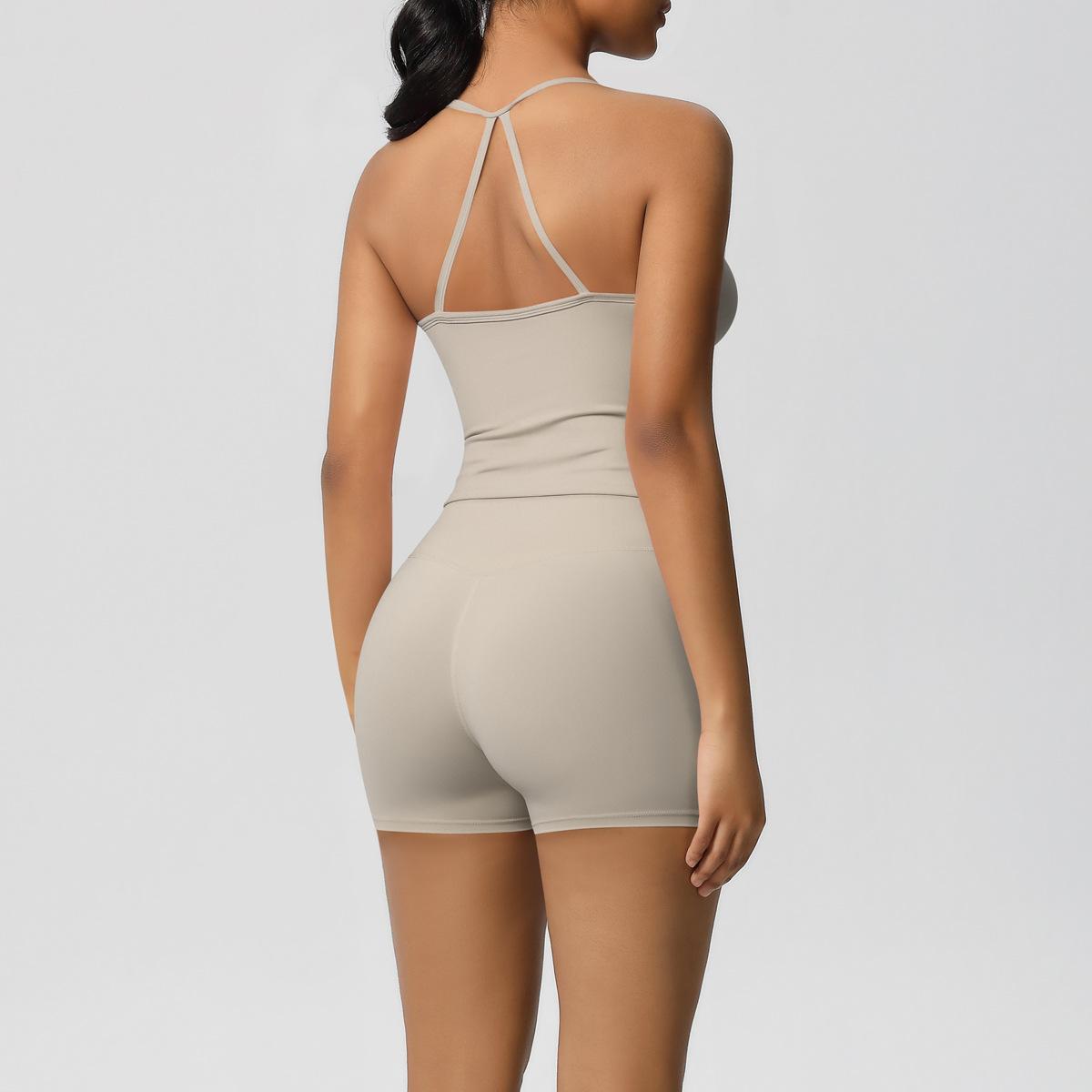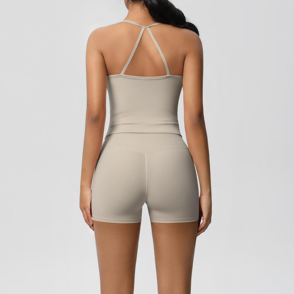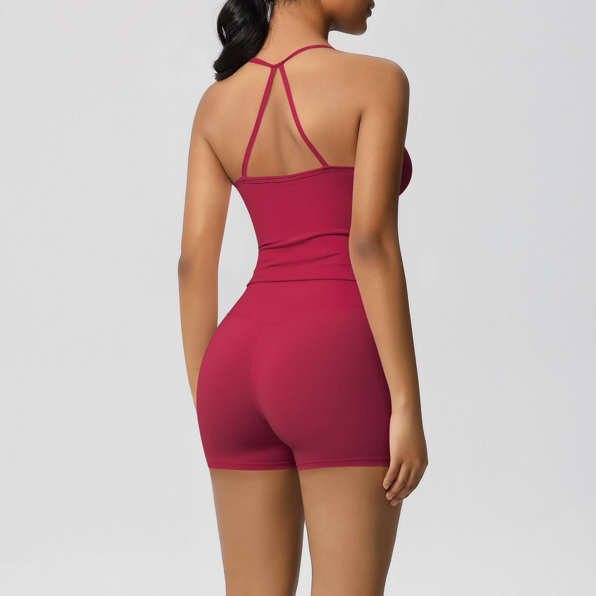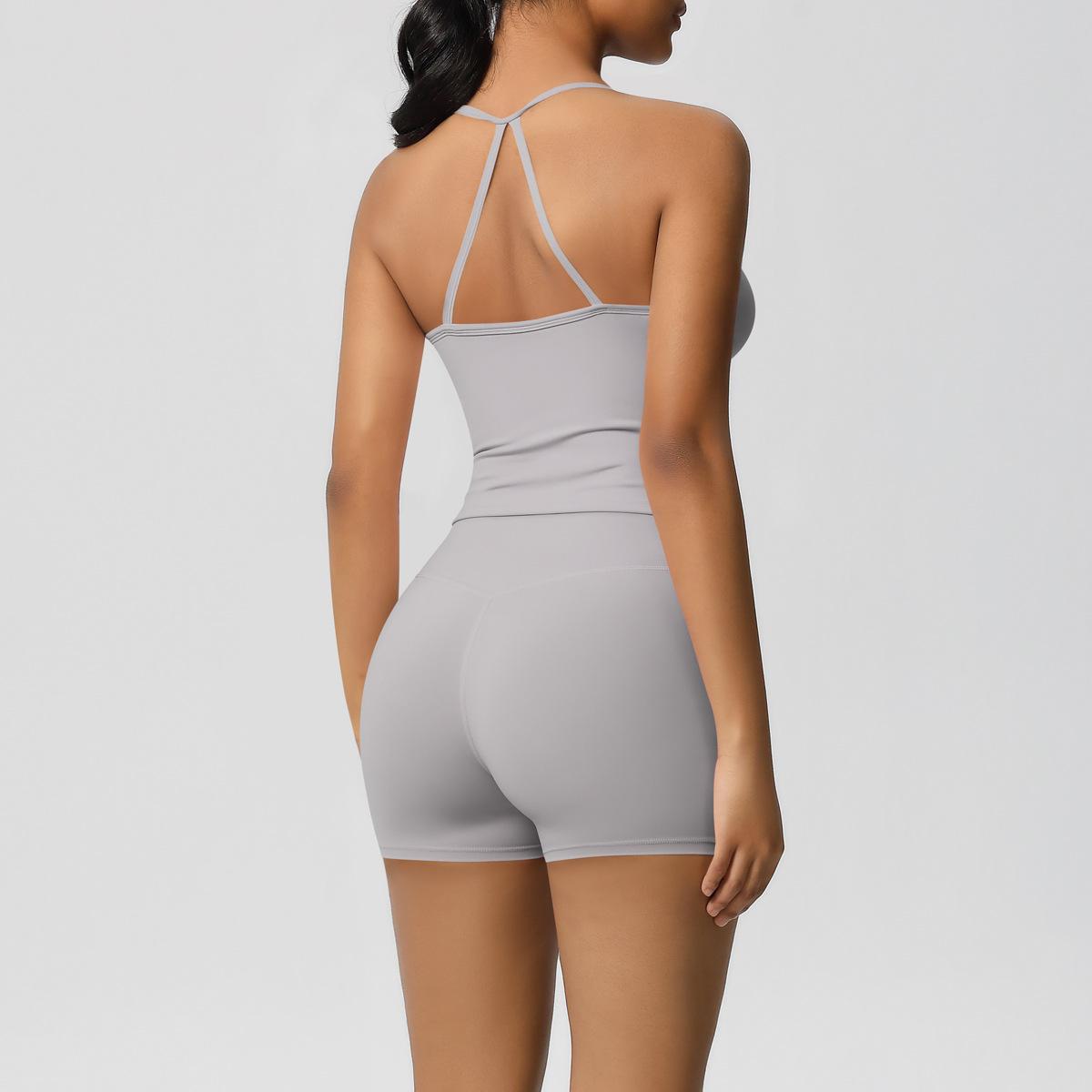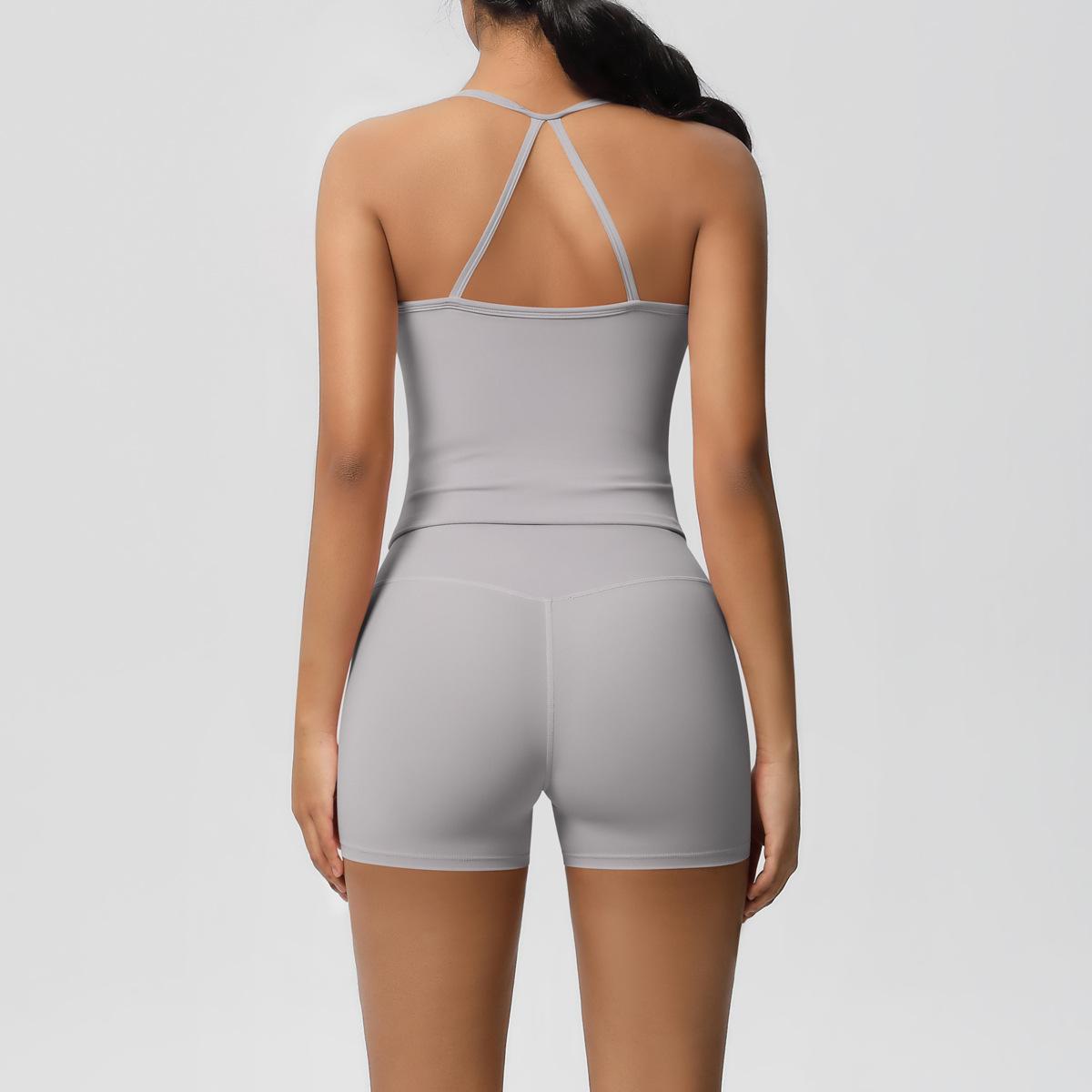 Europa y Estados Unidos Ropa de Yoga de Espalda de Belleza Lijada Transfronteriza Shorts de Fitness de Corte Slim de Secado Rápido Ropa Deportiva Camisola Traje de Yoga