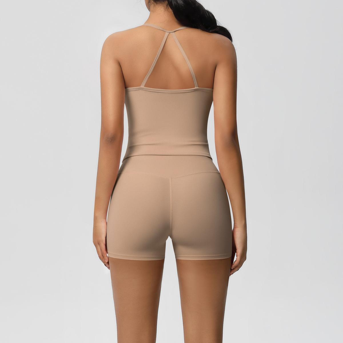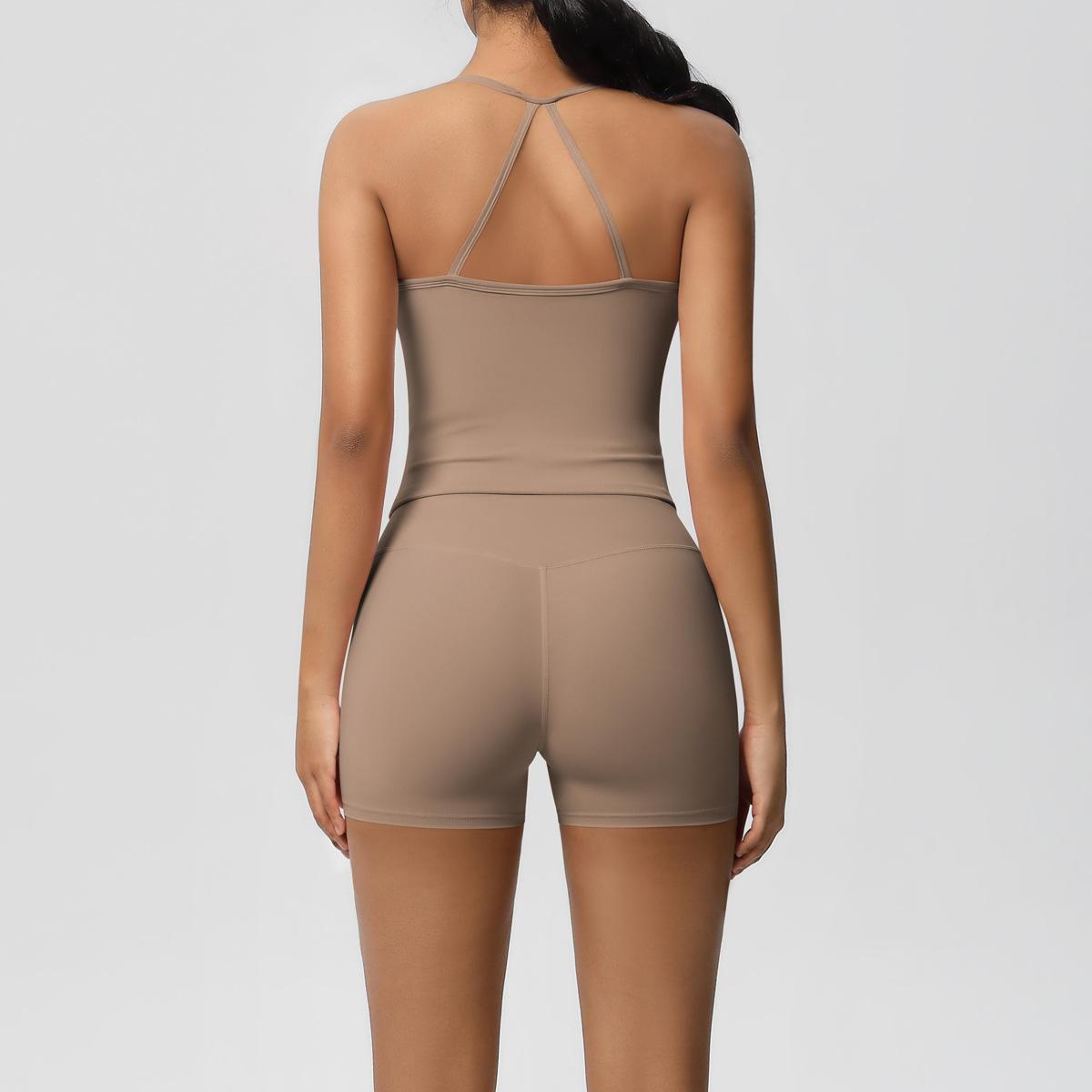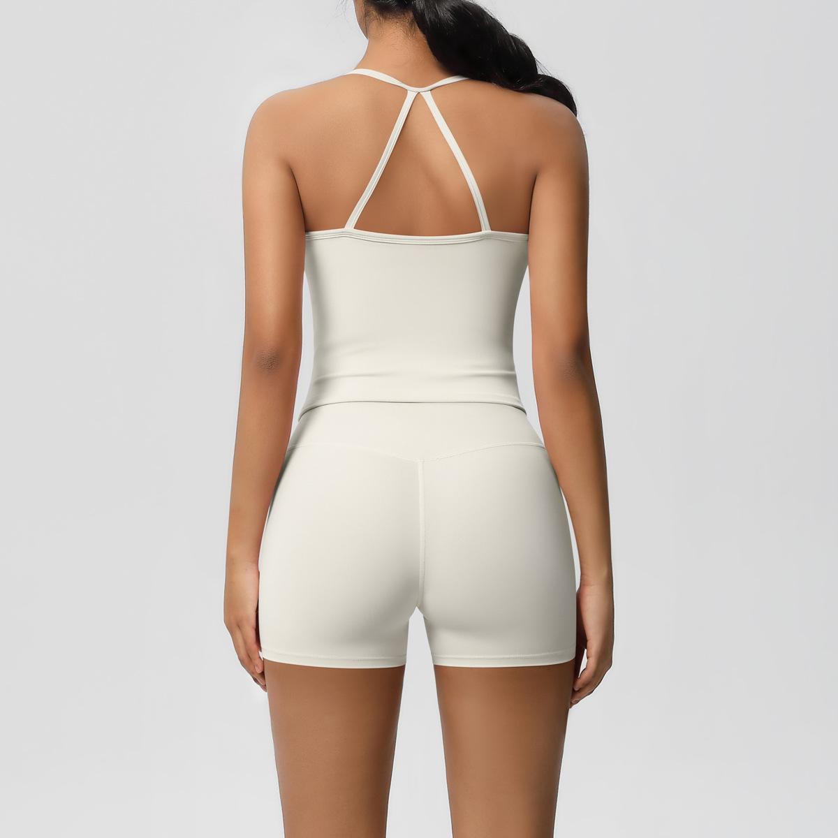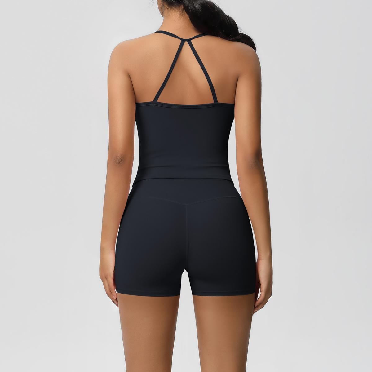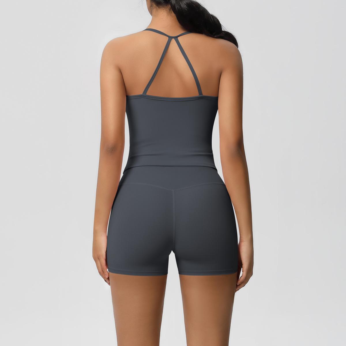 Europa y Estados Unidos Ropa de Yoga de Espalda de Belleza Lijada Transfronteriza Shorts de Fitness de Corte Slim de Secado Rápido Ropa Deportiva Camisola Traje de Yoga