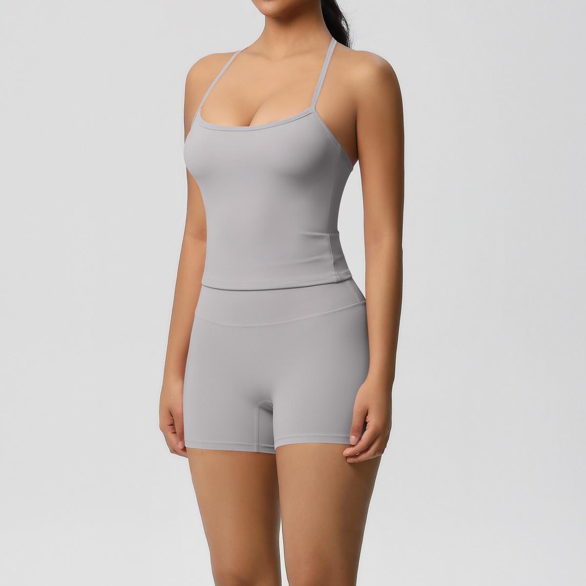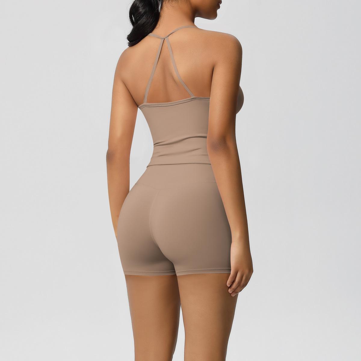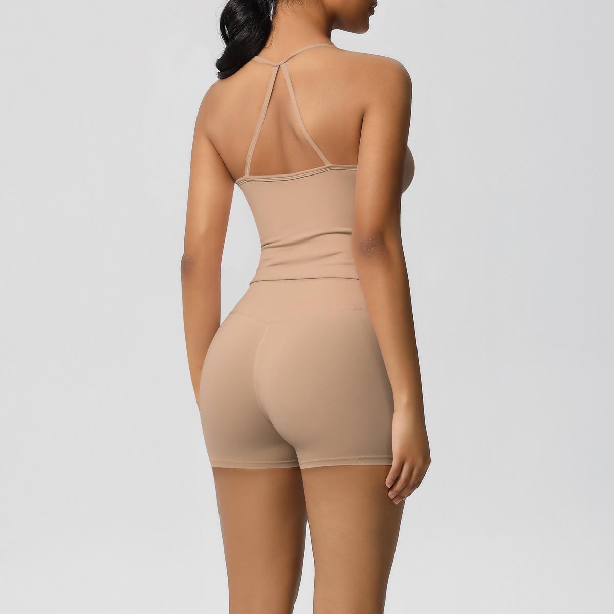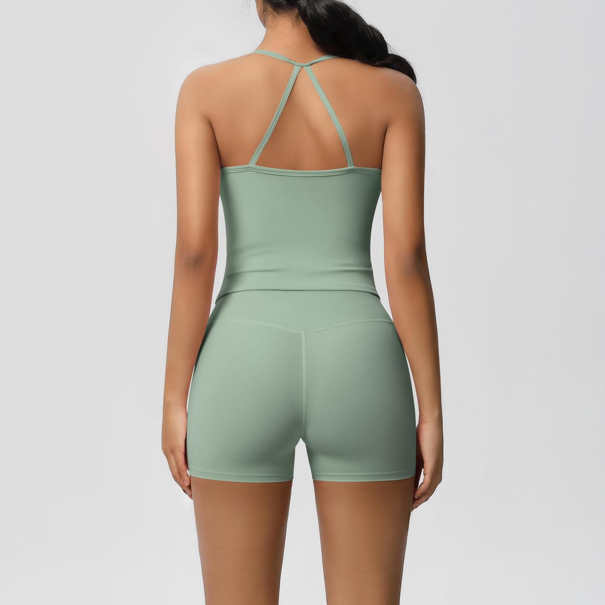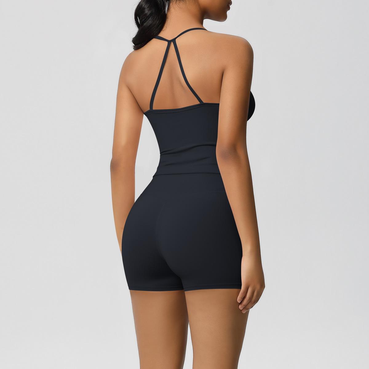 Europa y Estados Unidos Ropa de Yoga de Espalda de Belleza Lijada Transfronteriza Shorts de Fitness de Corte Slim de Secado Rápido Ropa Deportiva Camisola Traje de Yoga