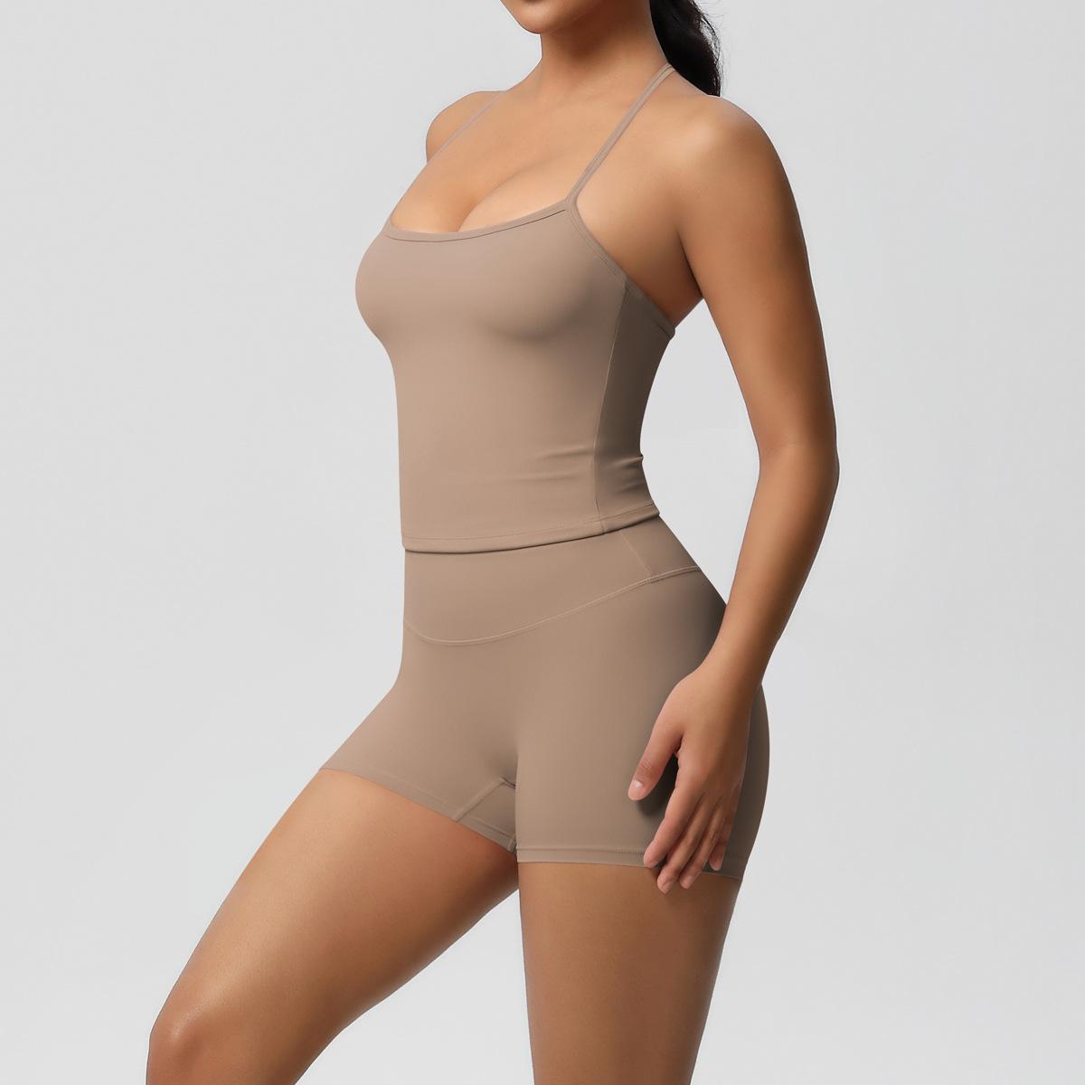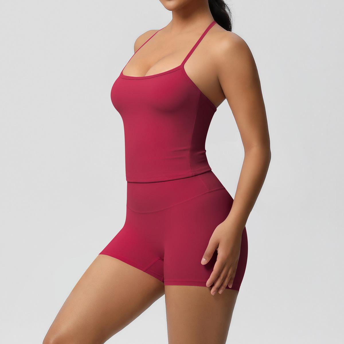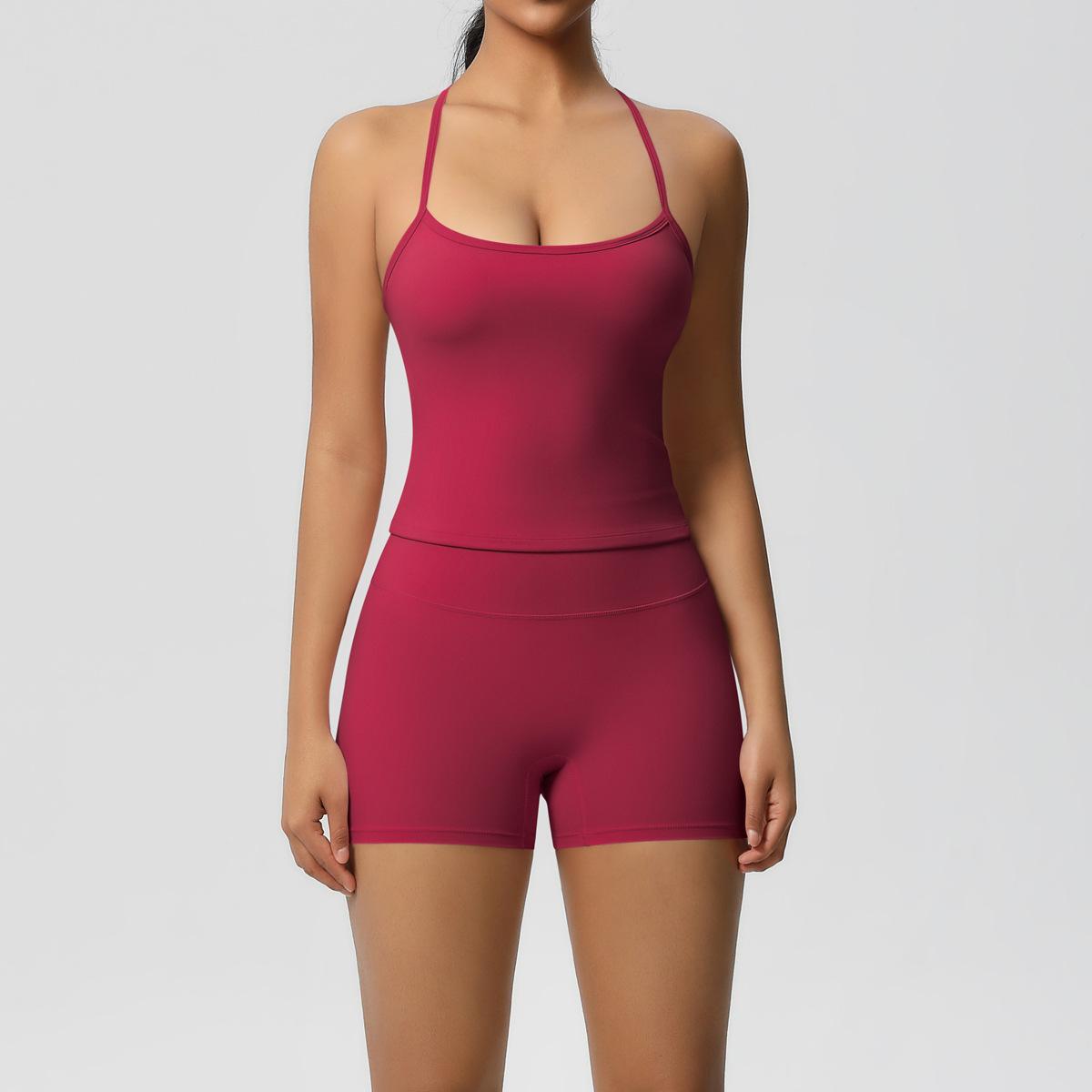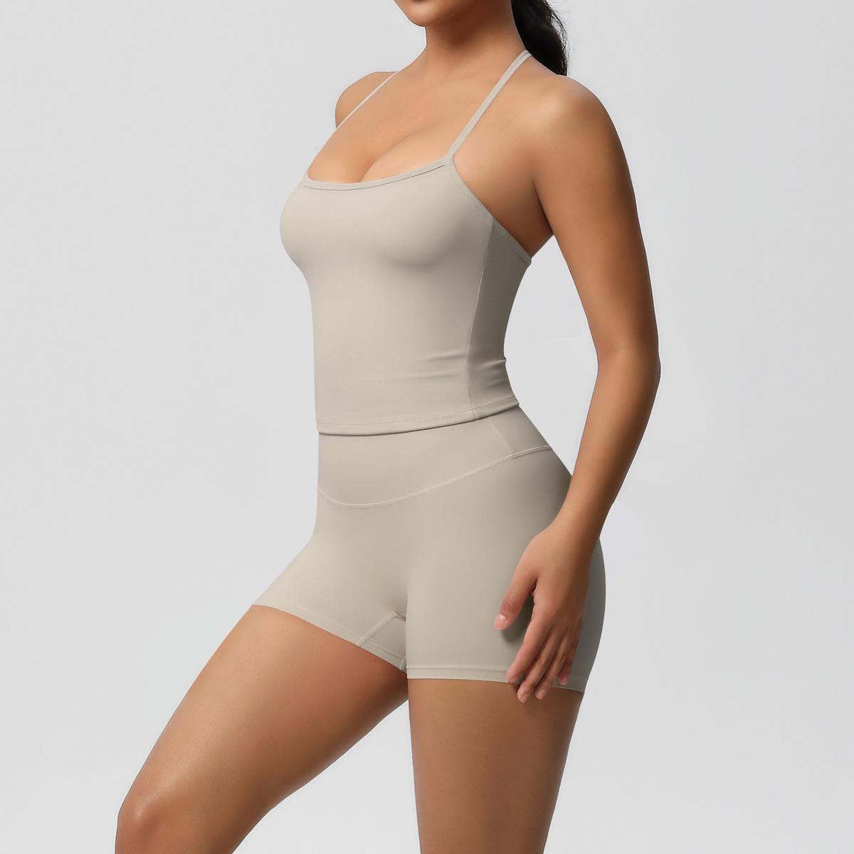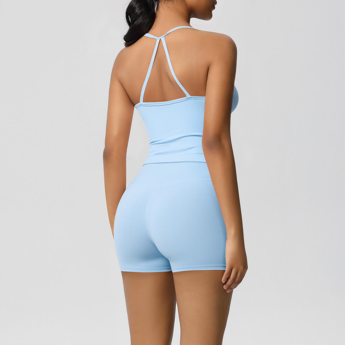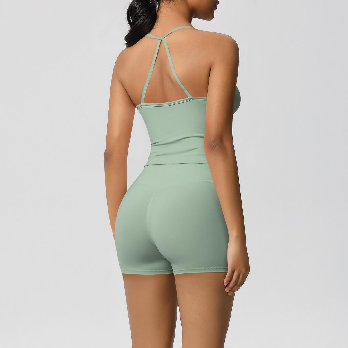 Europa y Estados Unidos Ropa de Yoga de Espalda de Belleza Lijada Transfronteriza Shorts de Fitness de Corte Slim de Secado Rápido Ropa Deportiva Camisola Traje de Yoga
