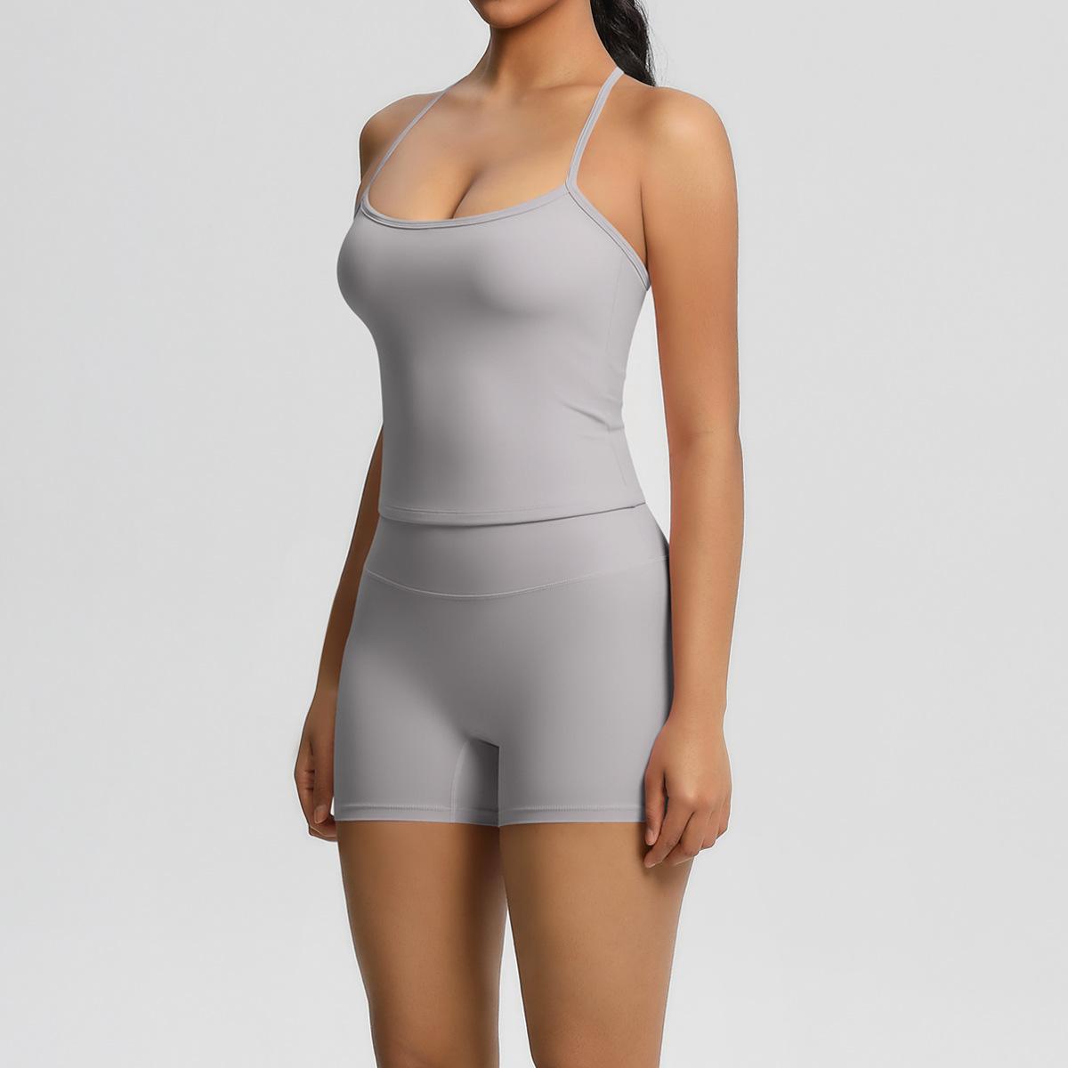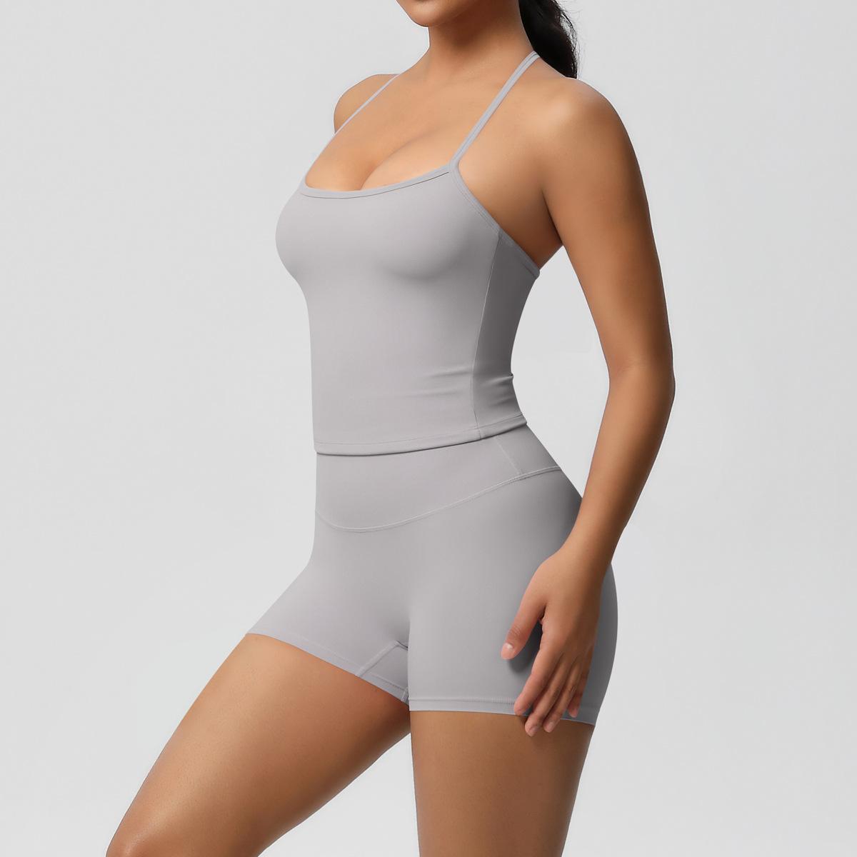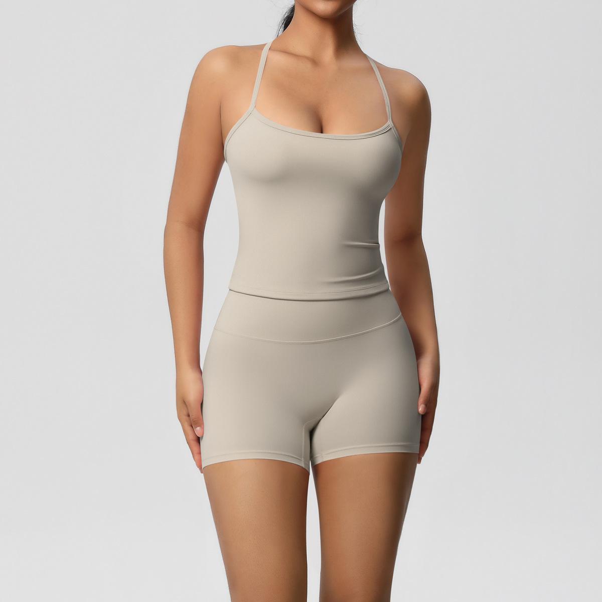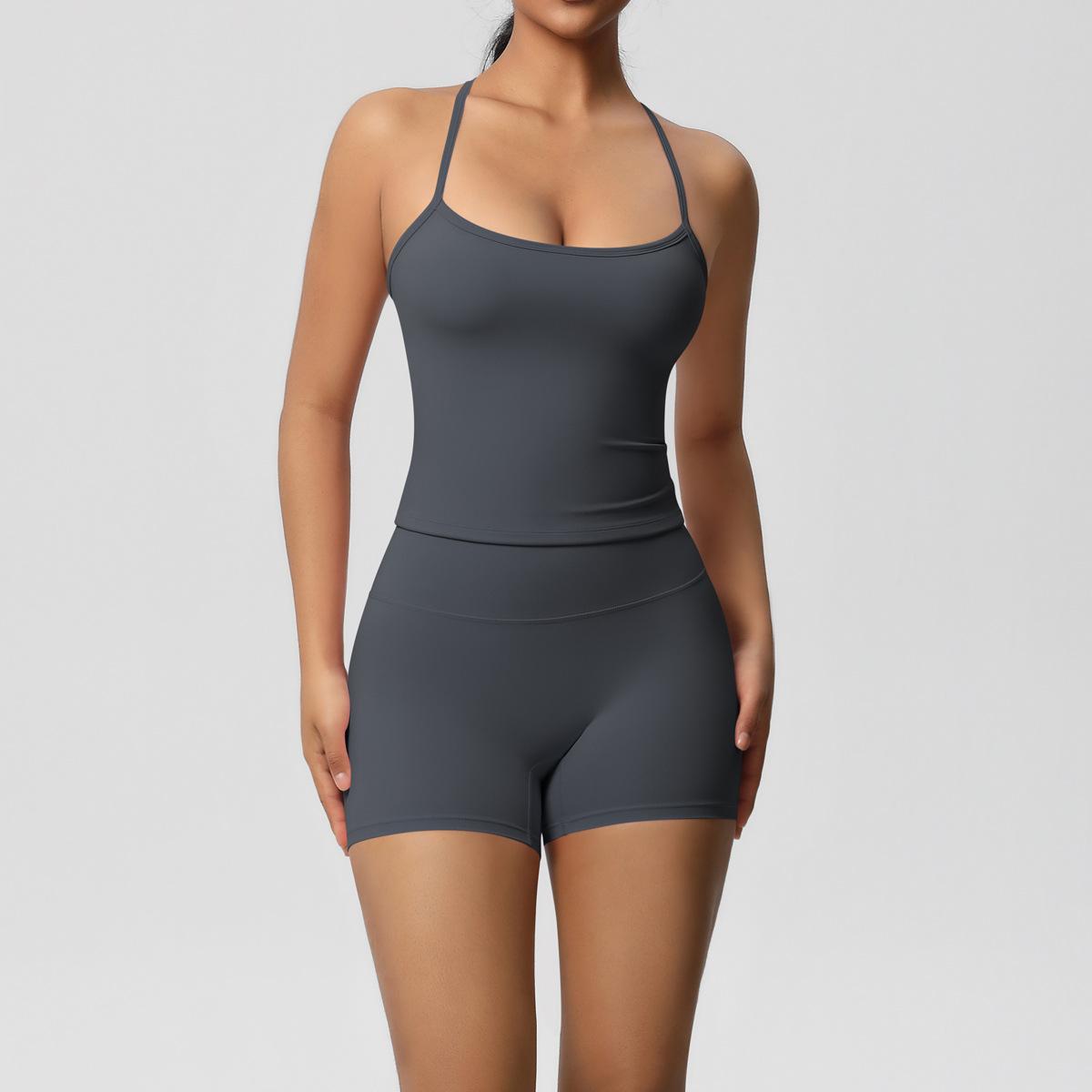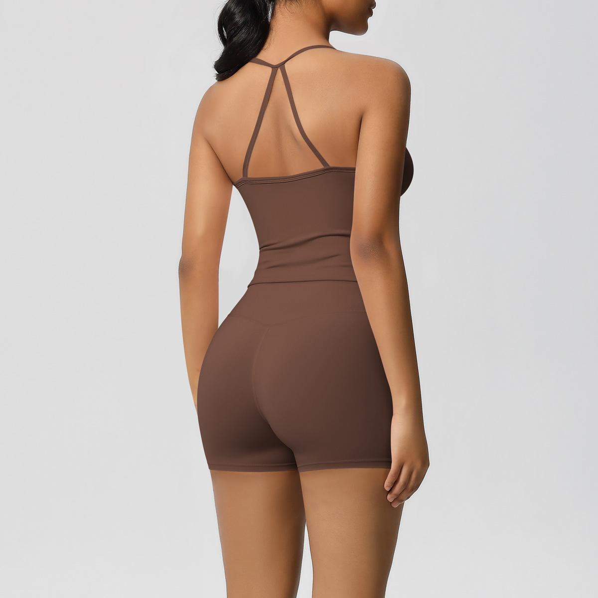 Europa y Estados Unidos Ropa de Yoga de Espalda de Belleza Lijada Transfronteriza Shorts de Fitness de Corte Slim de Secado Rápido Ropa Deportiva Camisola Traje de Yoga