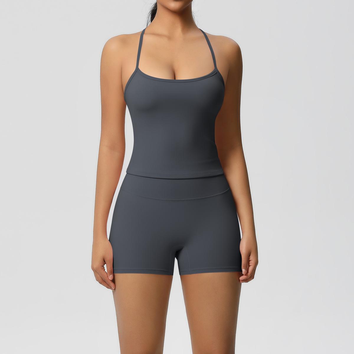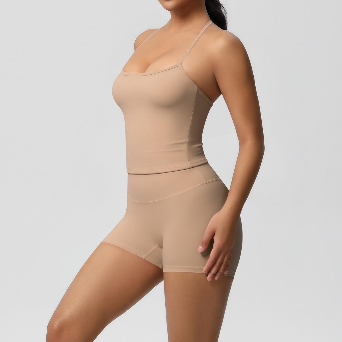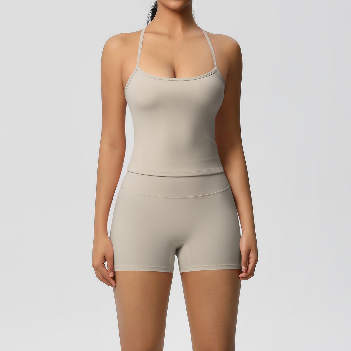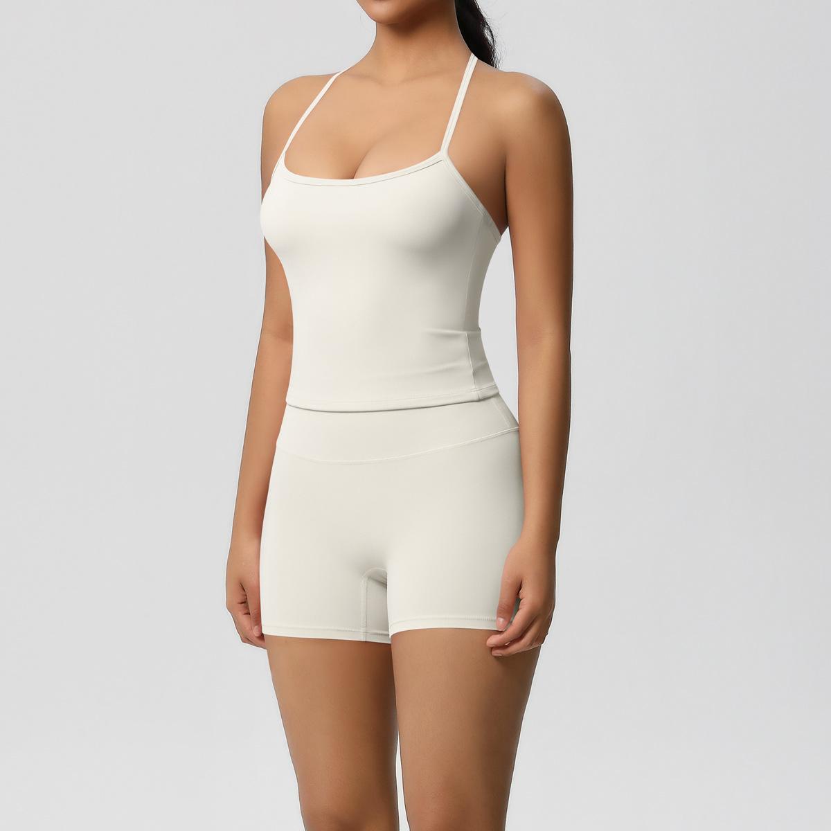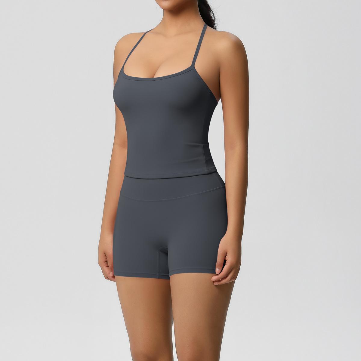 Europa y Estados Unidos Ropa de Yoga de Espalda de Belleza Lijada Transfronteriza Shorts de Fitness de Corte Slim de Secado Rápido Ropa Deportiva Camisola Traje de Yoga