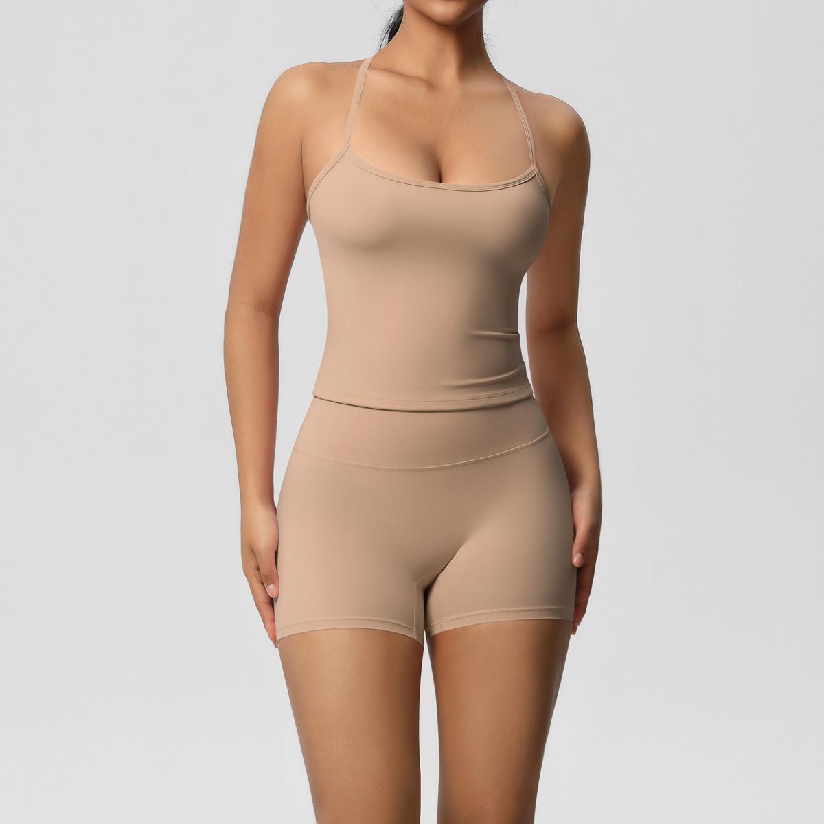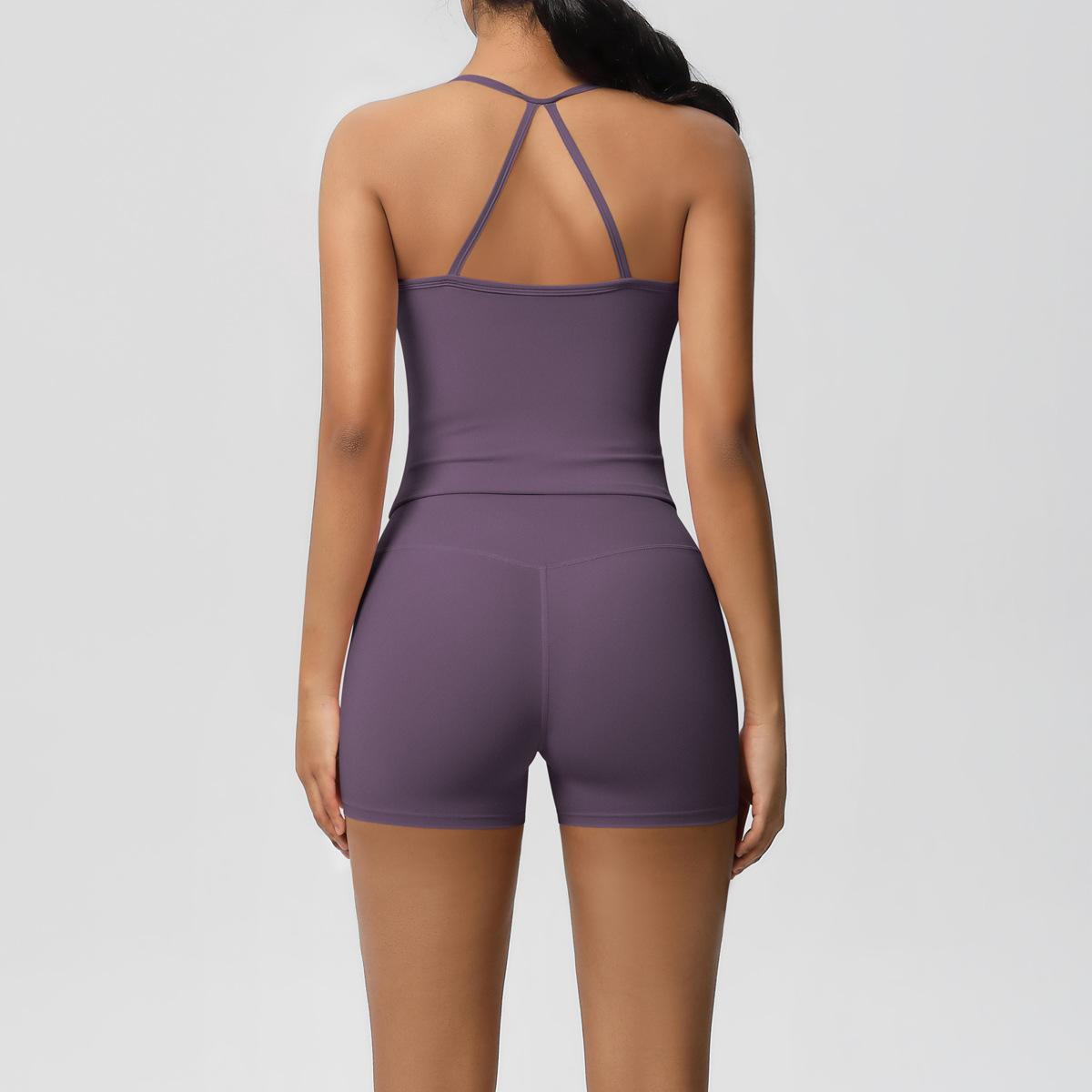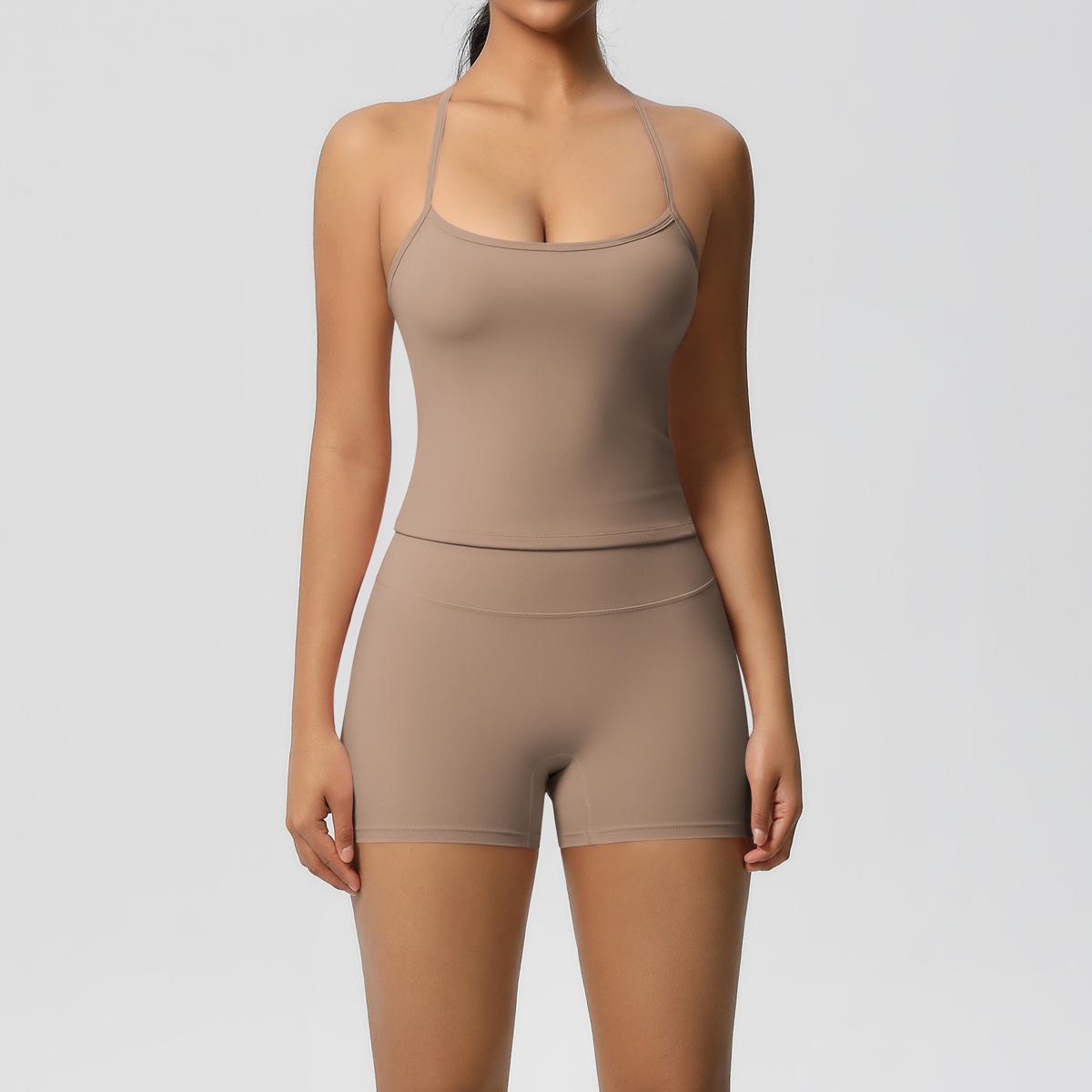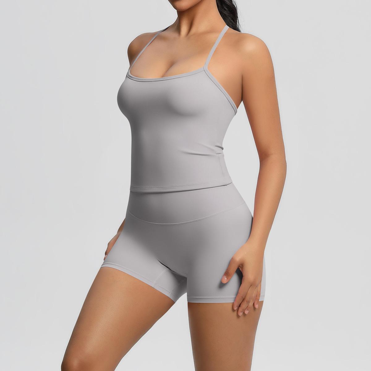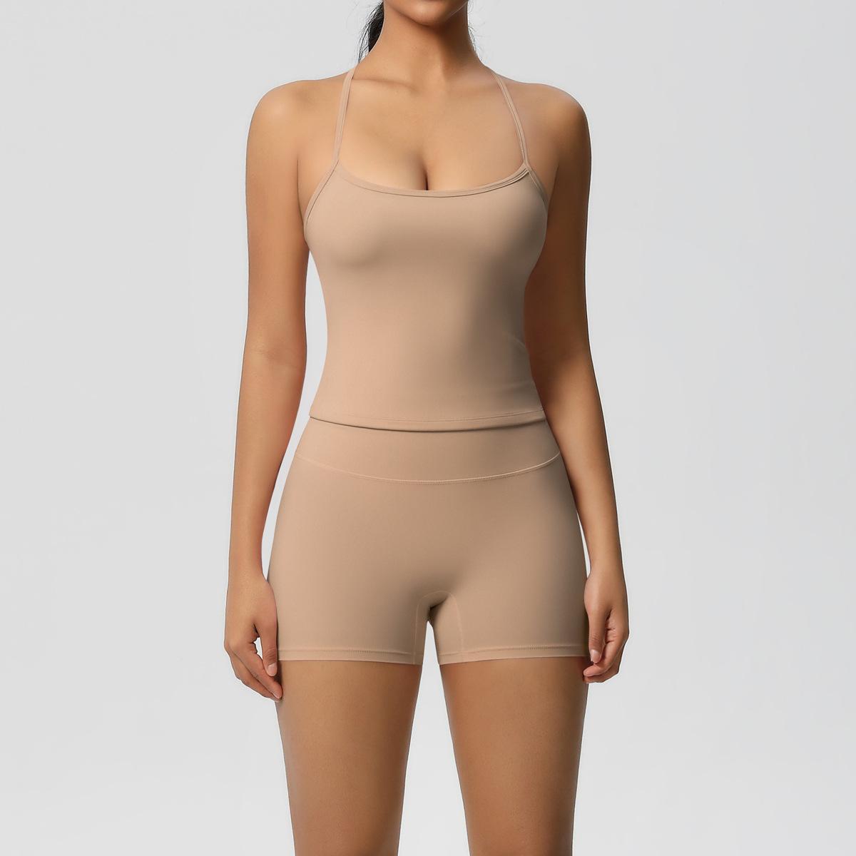 Europa y Estados Unidos Ropa de Yoga de Espalda de Belleza Lijada Transfronteriza Shorts de Fitness de Corte Slim de Secado Rápido Ropa Deportiva Camisola Traje de Yoga