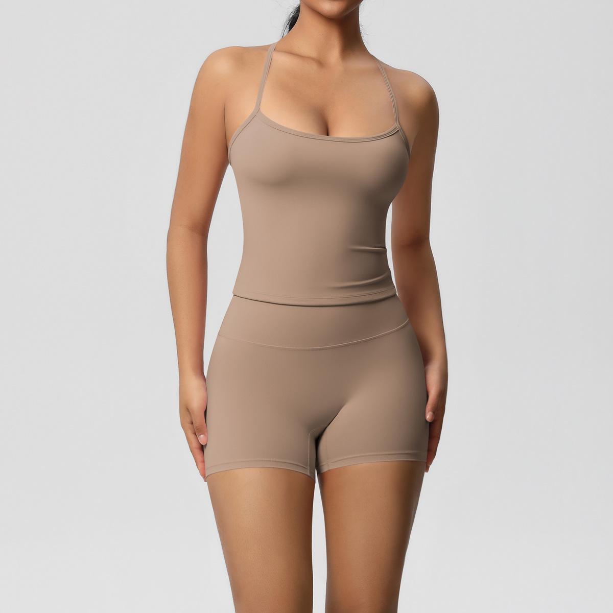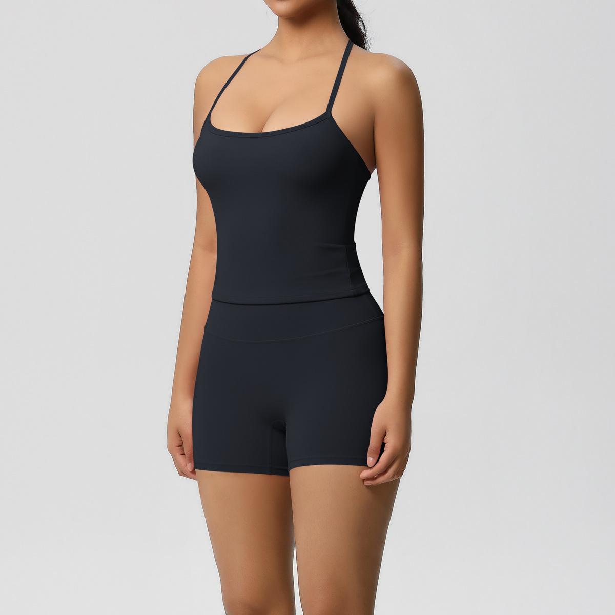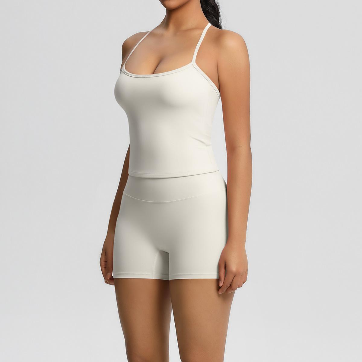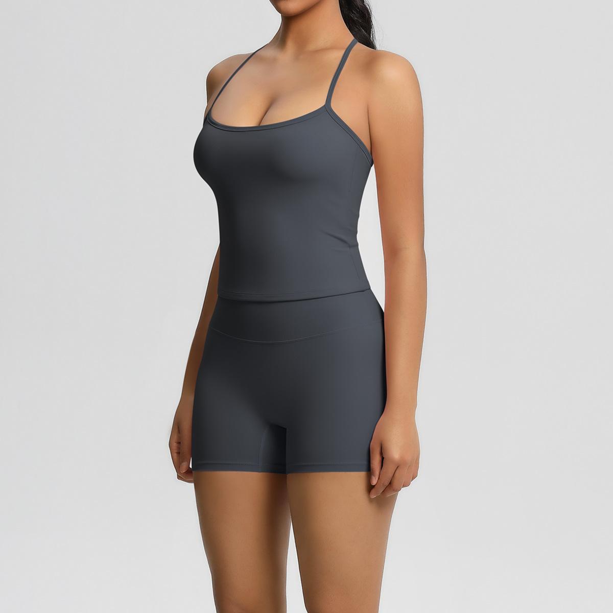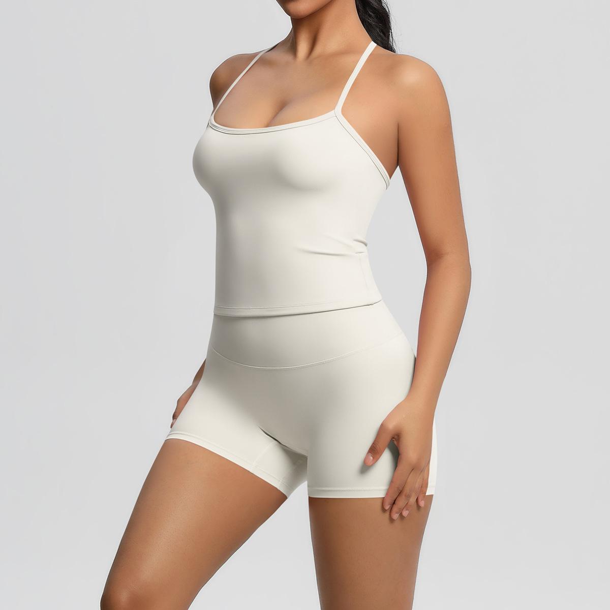 Europa y Estados Unidos Ropa de Yoga de Espalda de Belleza Lijada Transfronteriza Shorts de Fitness de Corte Slim de Secado Rápido Ropa Deportiva Camisola Traje de Yoga