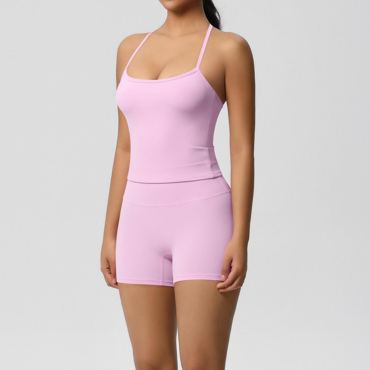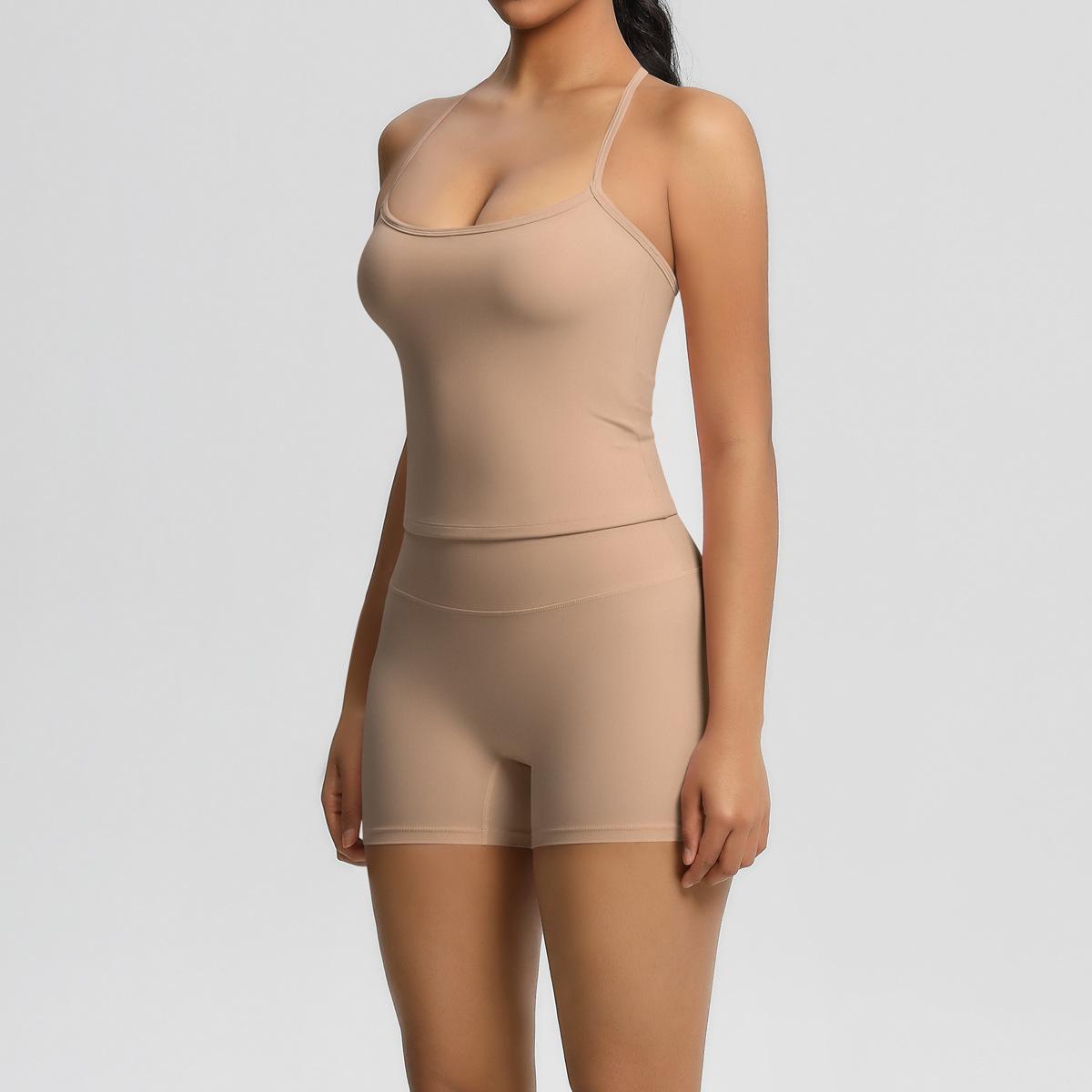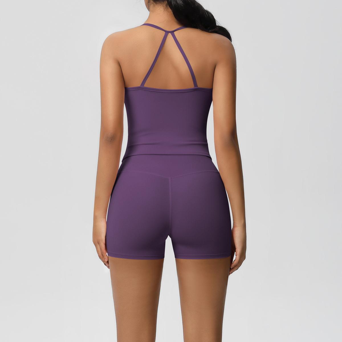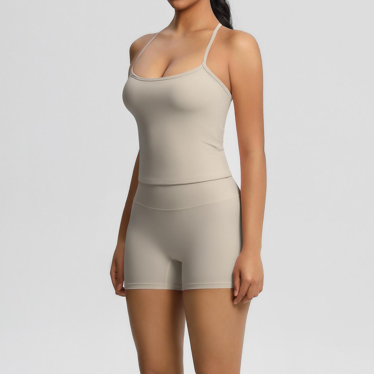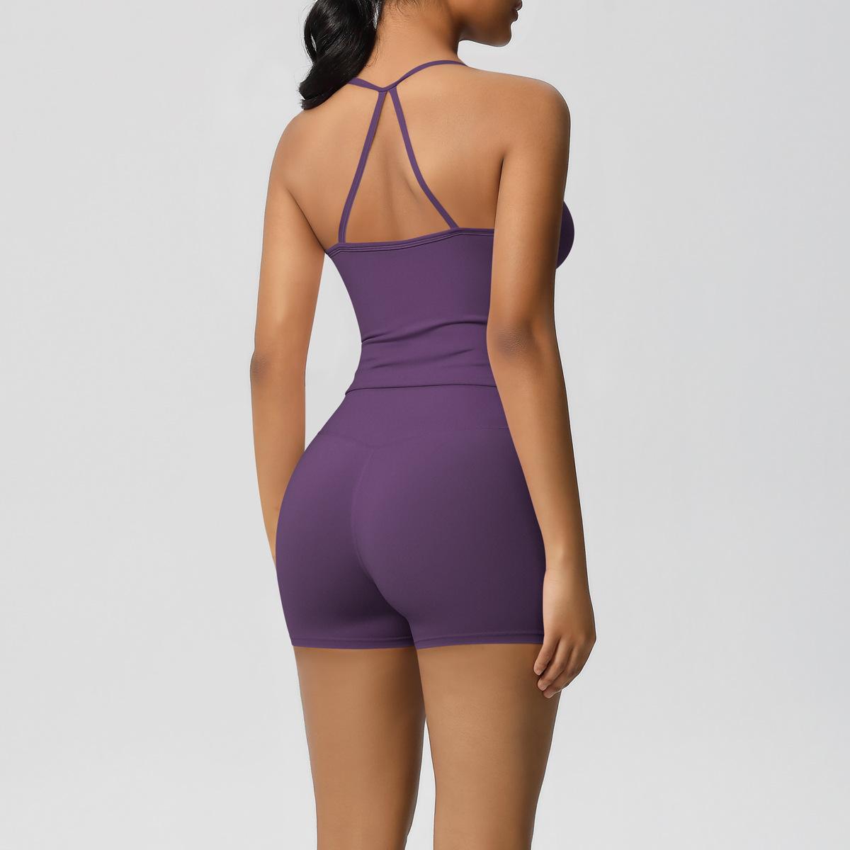 Europa y Estados Unidos Ropa de Yoga de Espalda de Belleza Lijada Transfronteriza Shorts de Fitness de Corte Slim de Secado Rápido Ropa Deportiva Camisola Traje de Yoga