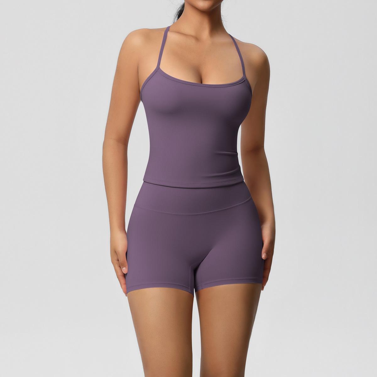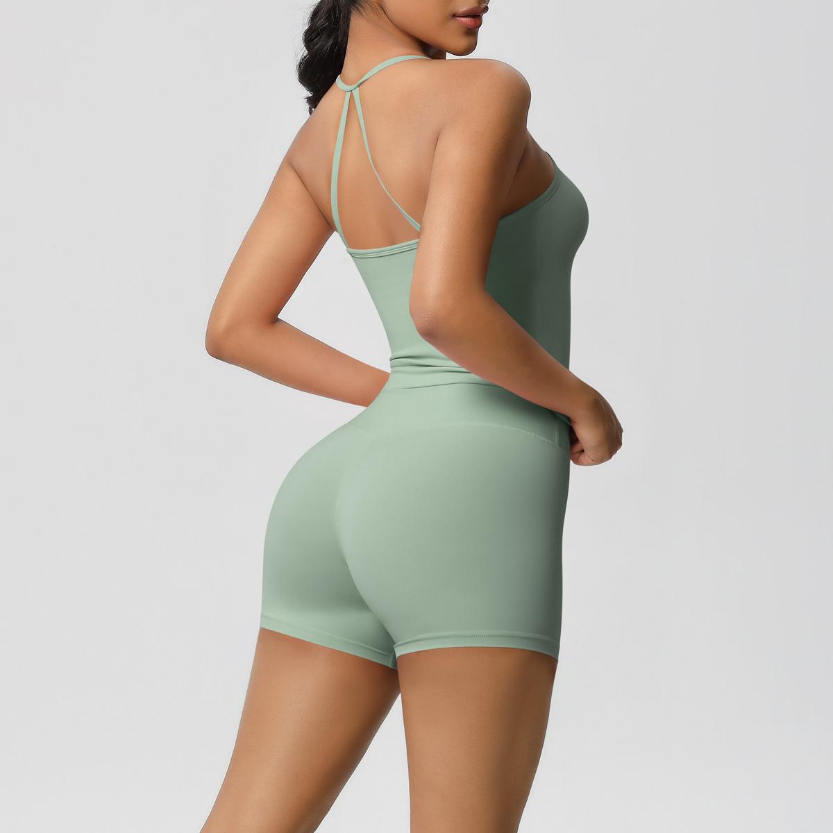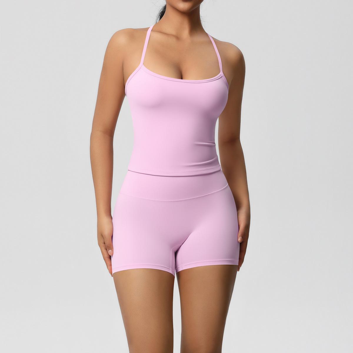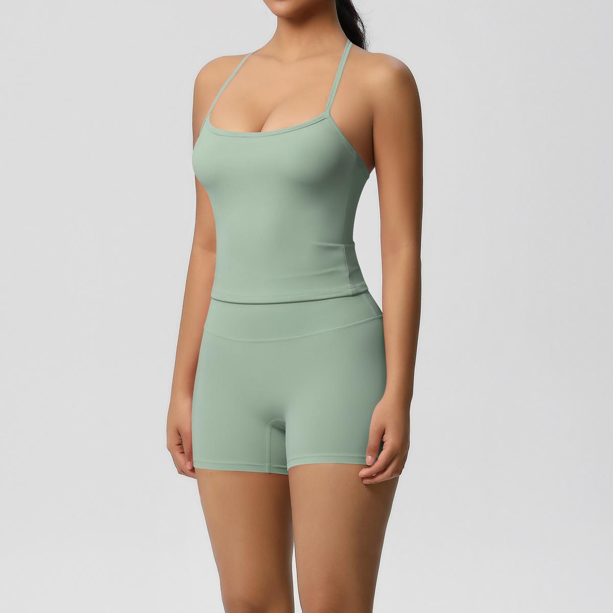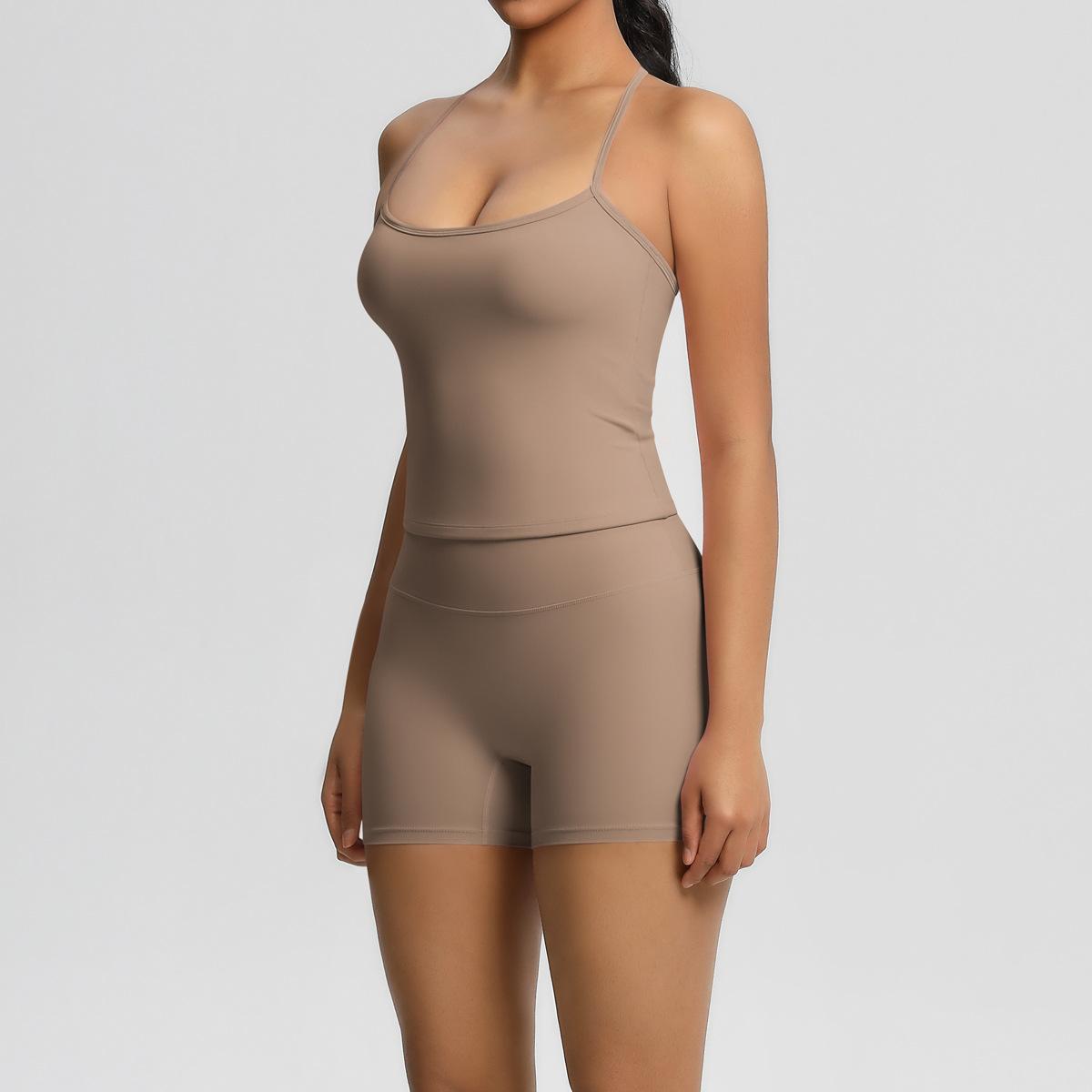 Europa y Estados Unidos Ropa de Yoga de Espalda de Belleza Lijada Transfronteriza Shorts de Fitness de Corte Slim de Secado Rápido Ropa Deportiva Camisola Traje de Yoga