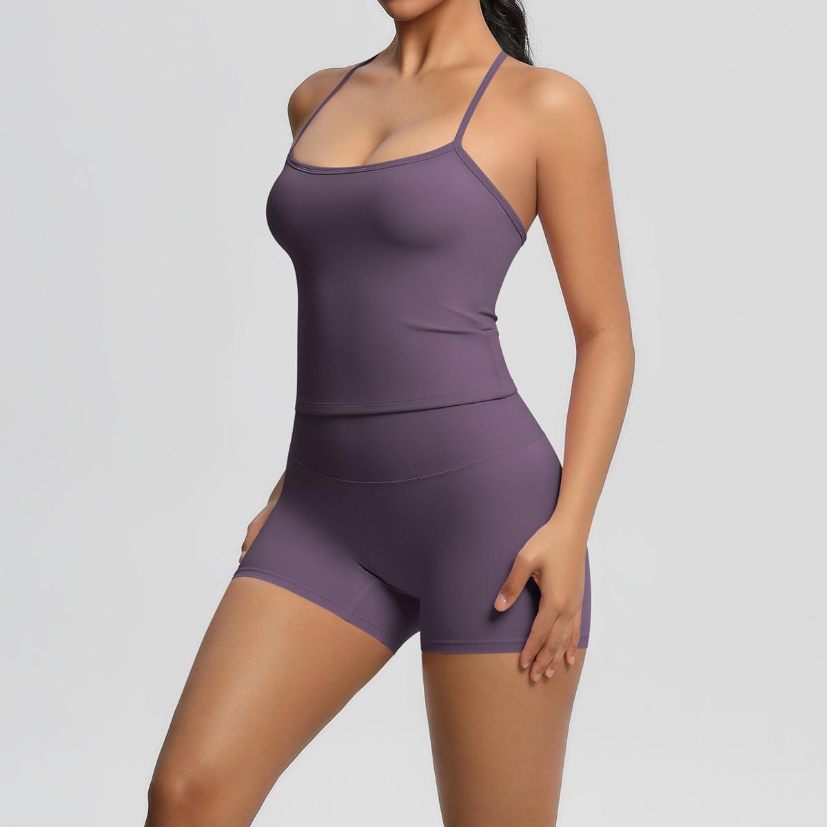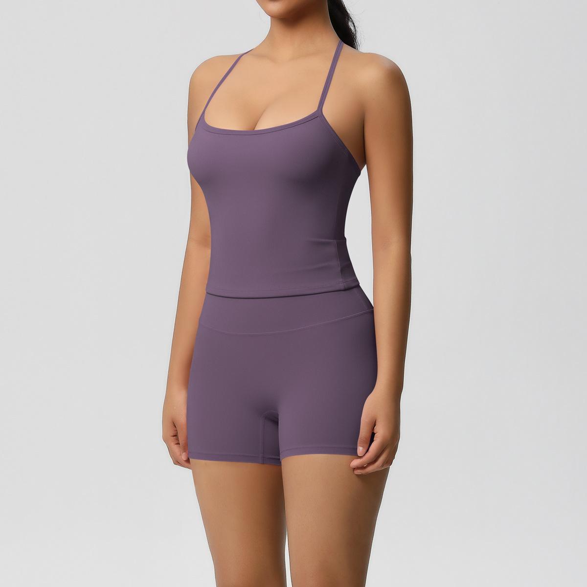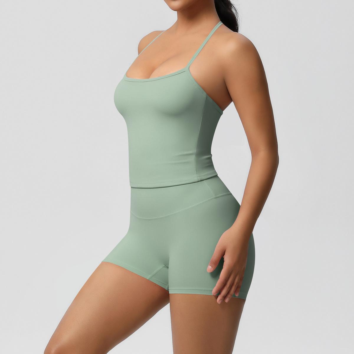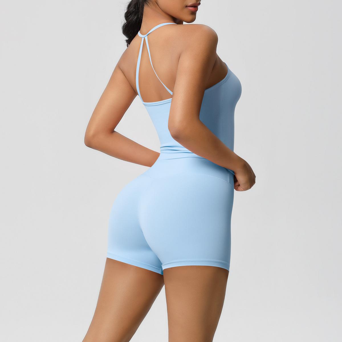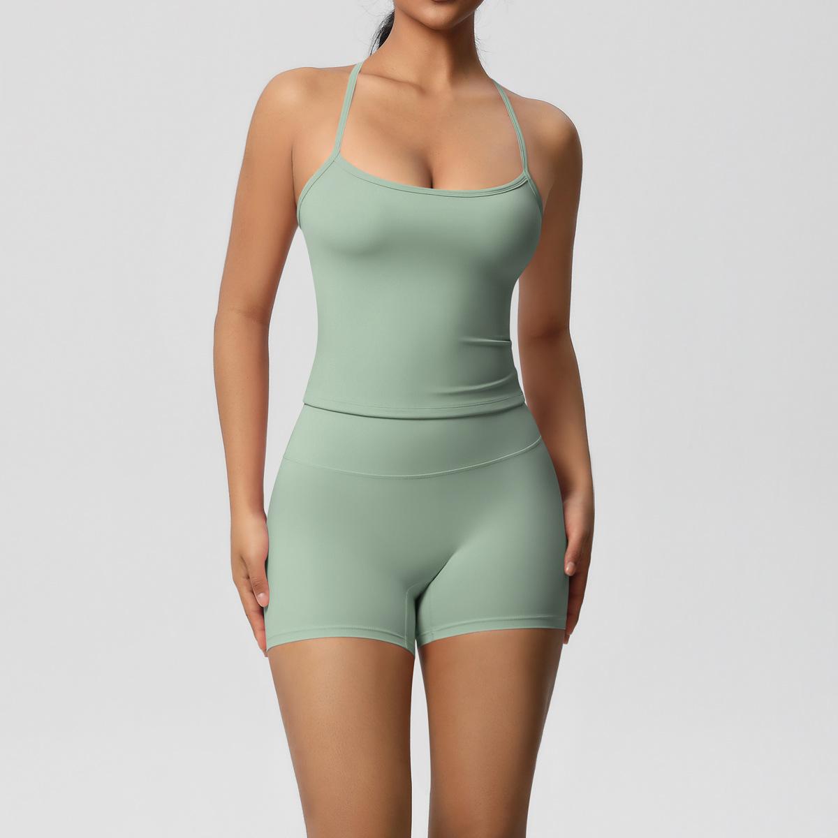 Europa y Estados Unidos Ropa de Yoga de Espalda de Belleza Lijada Transfronteriza Shorts de Fitness de Corte Slim de Secado Rápido Ropa Deportiva Camisola Traje de Yoga