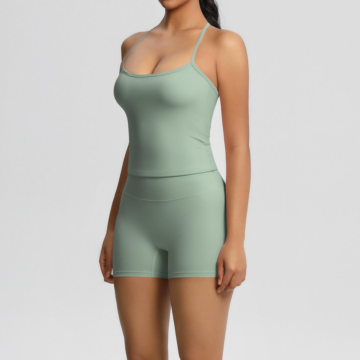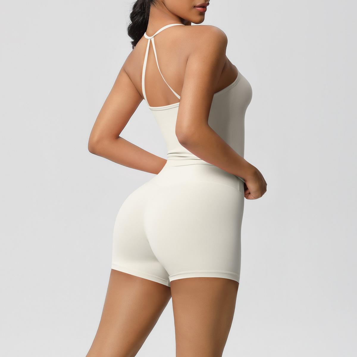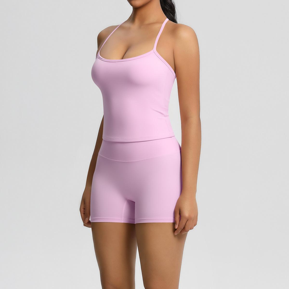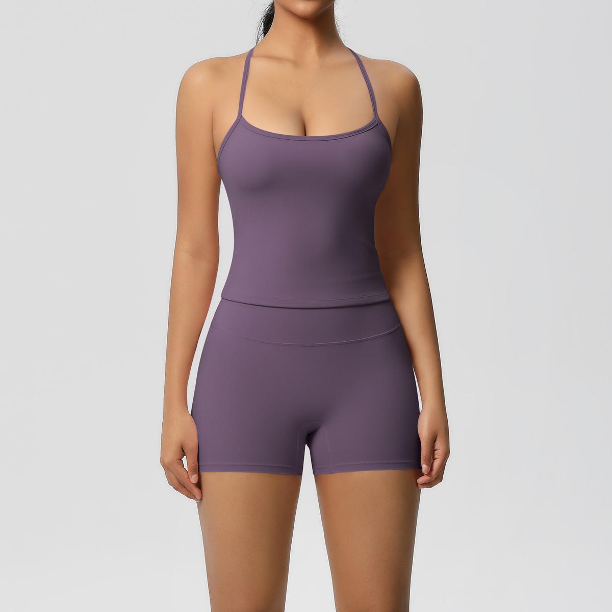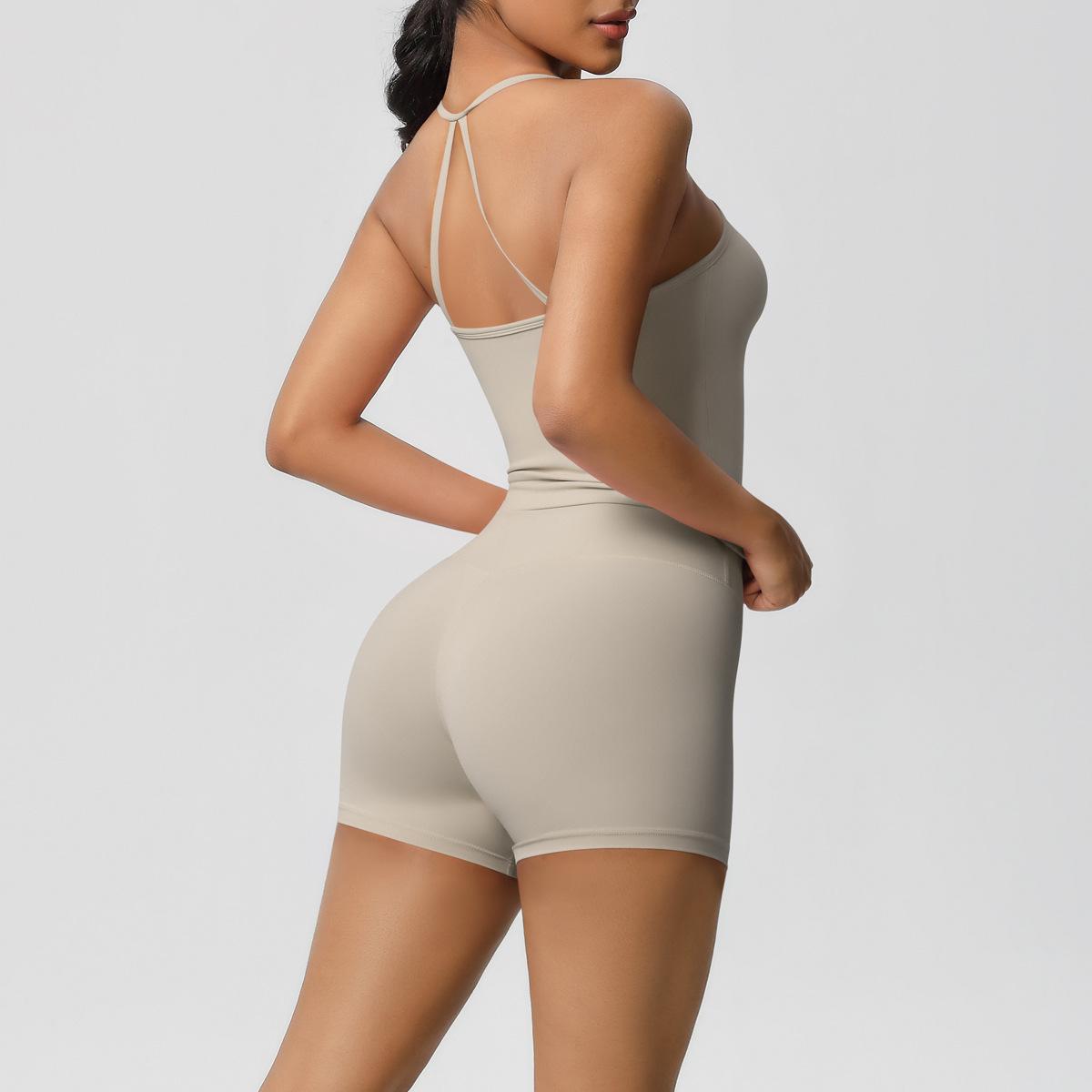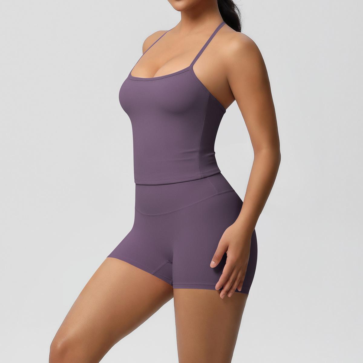 Europa y Estados Unidos Ropa de Yoga de Espalda de Belleza Lijada Transfronteriza Shorts de Fitness de Corte Slim de Secado Rápido Ropa Deportiva Camisola Traje de Yoga