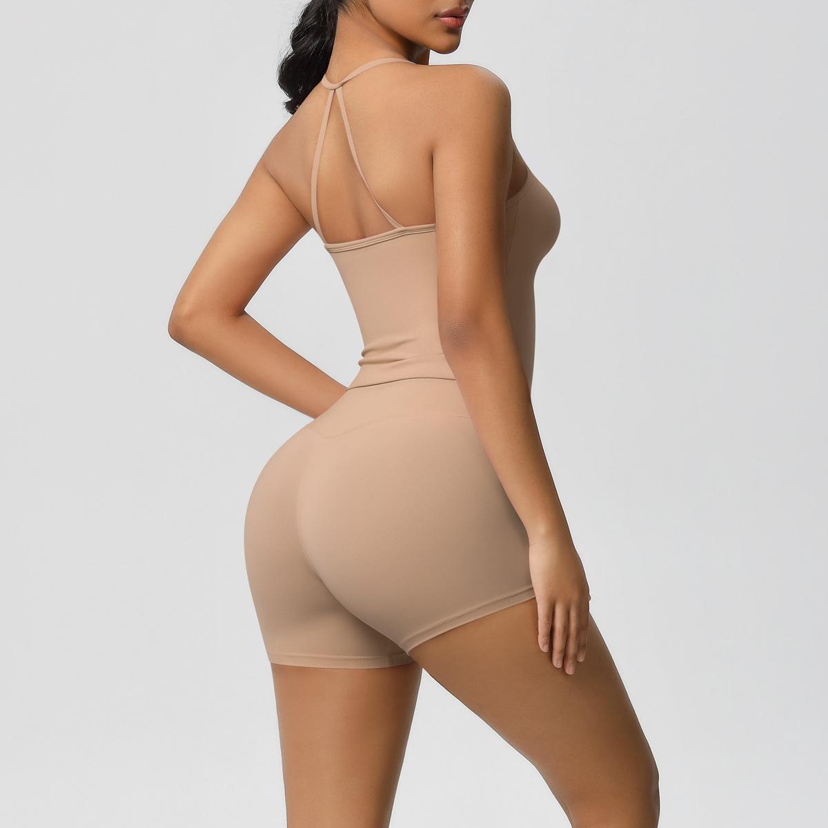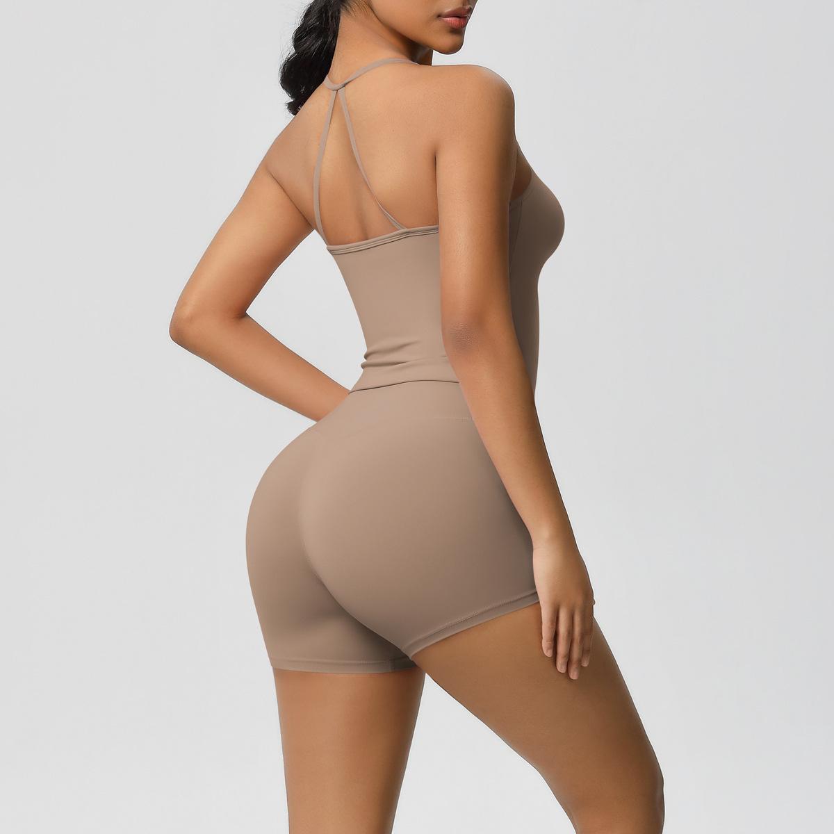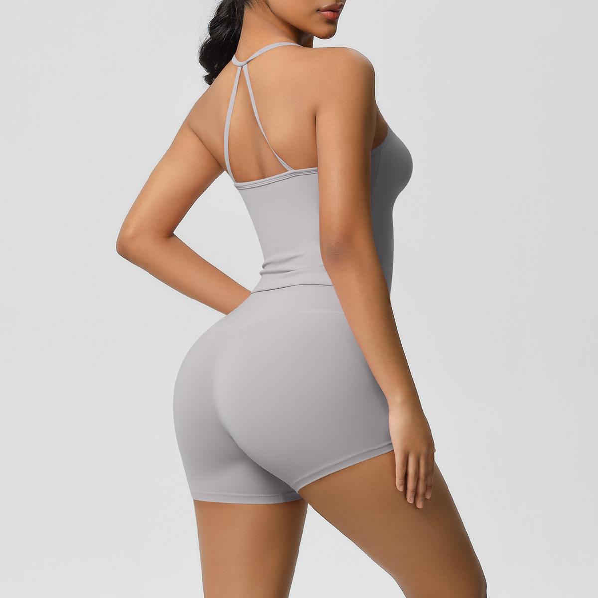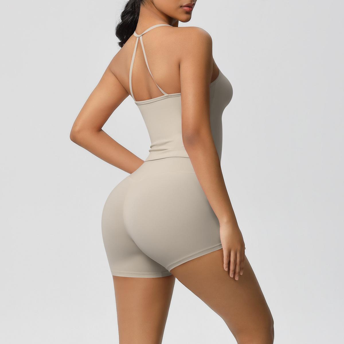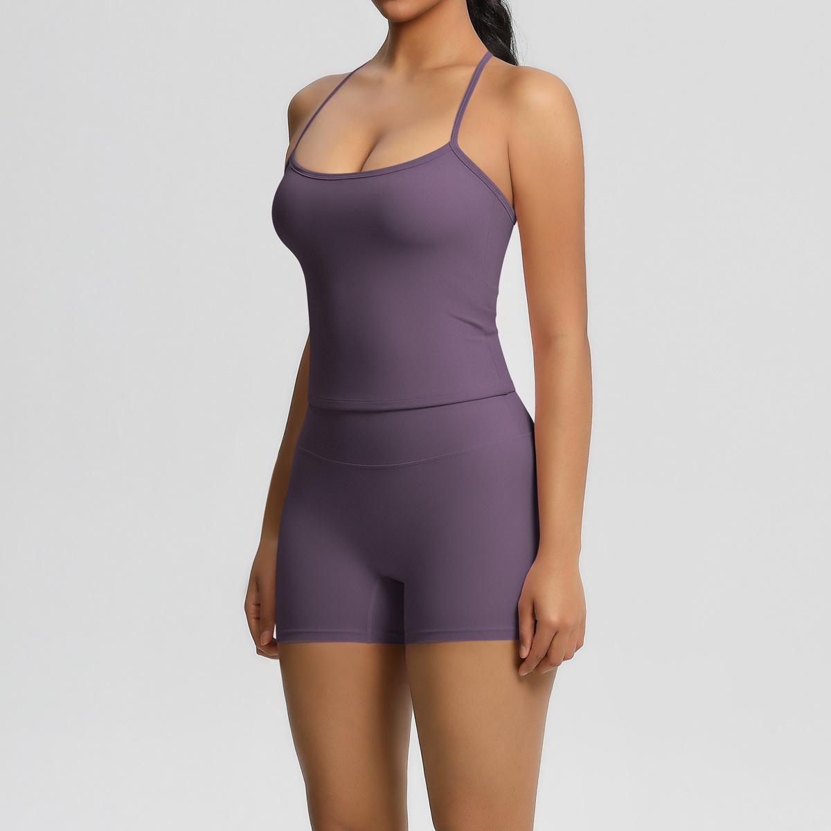 Europa y Estados Unidos Ropa de Yoga de Espalda de Belleza Lijada Transfronteriza Shorts de Fitness de Corte Slim de Secado Rápido Ropa Deportiva Camisola Traje de Yoga