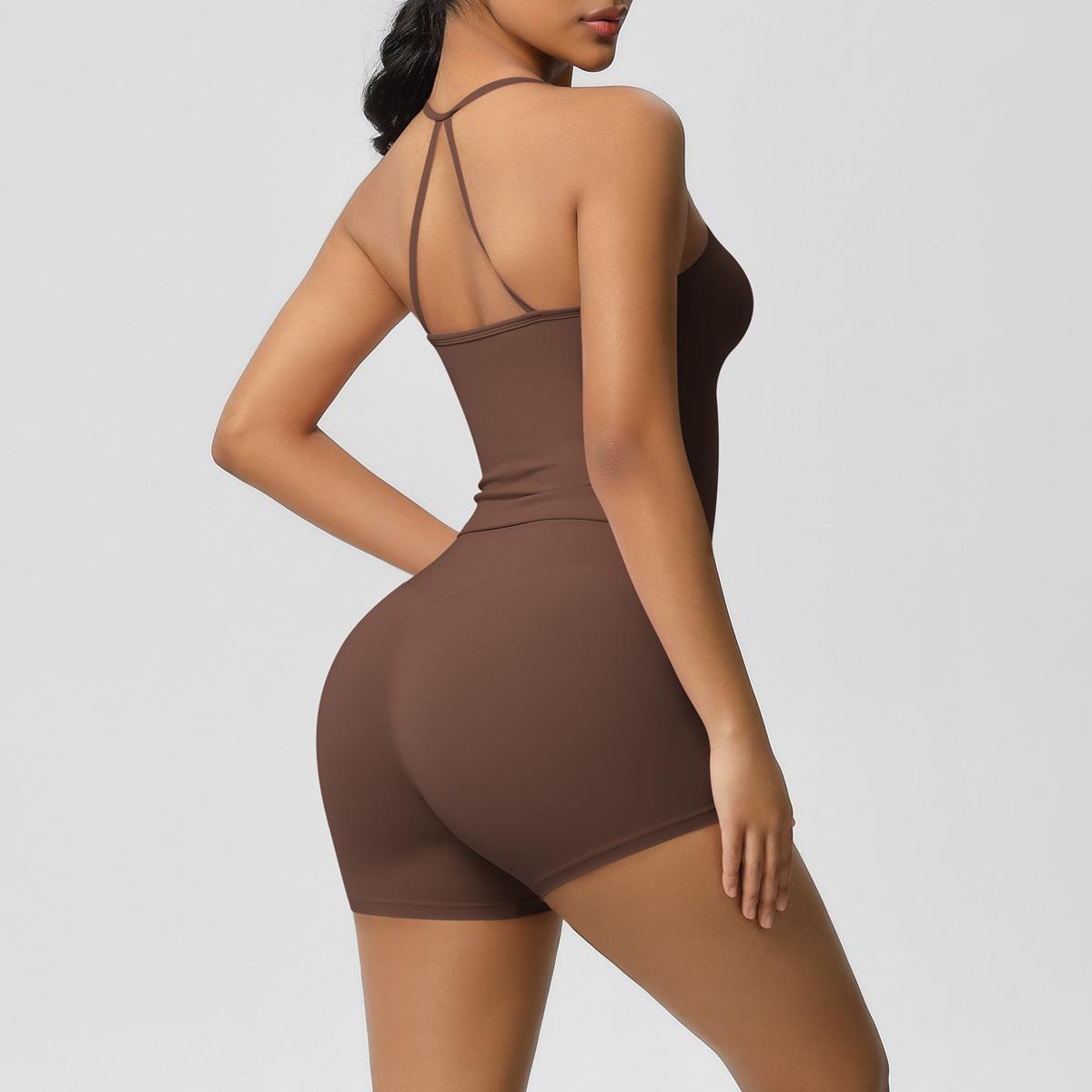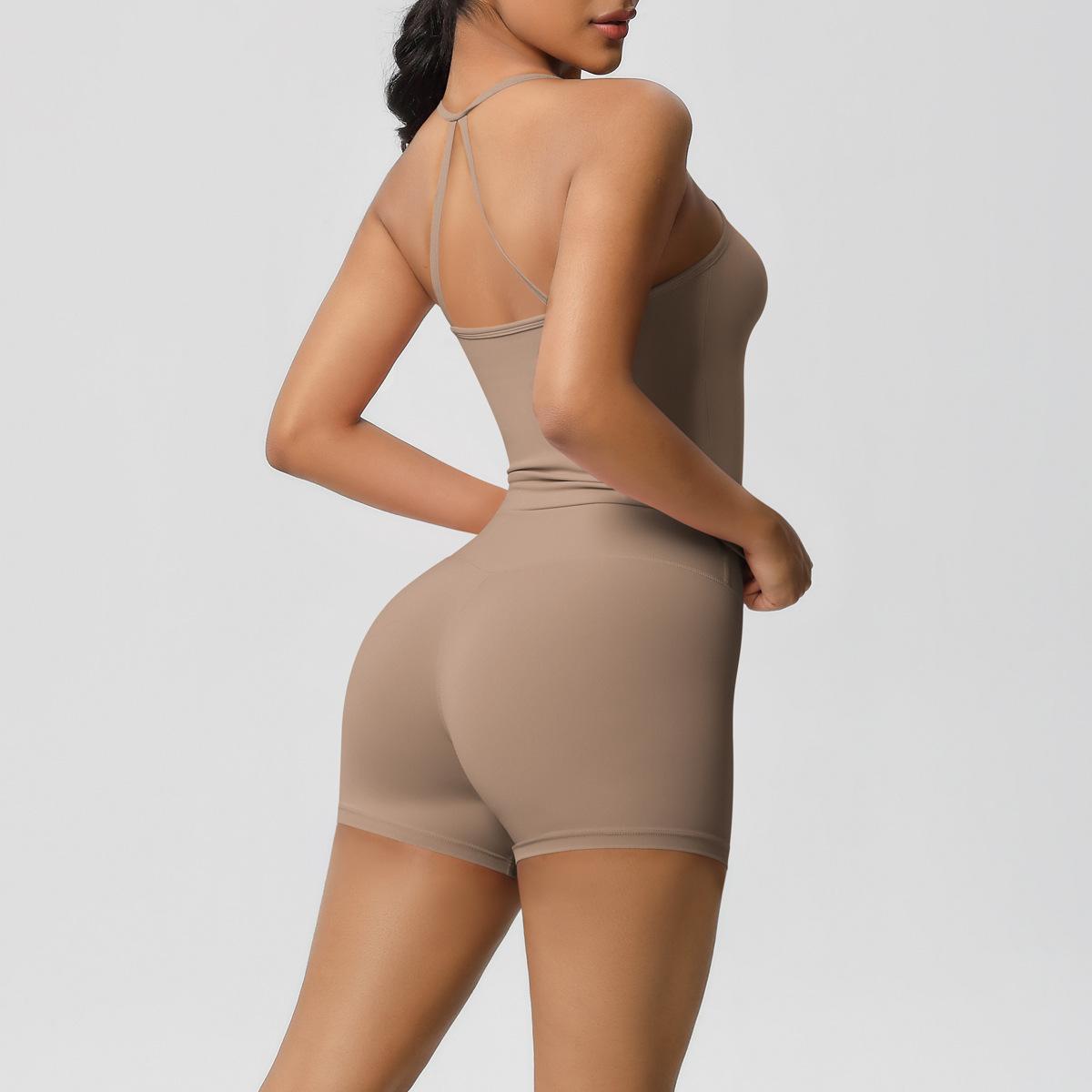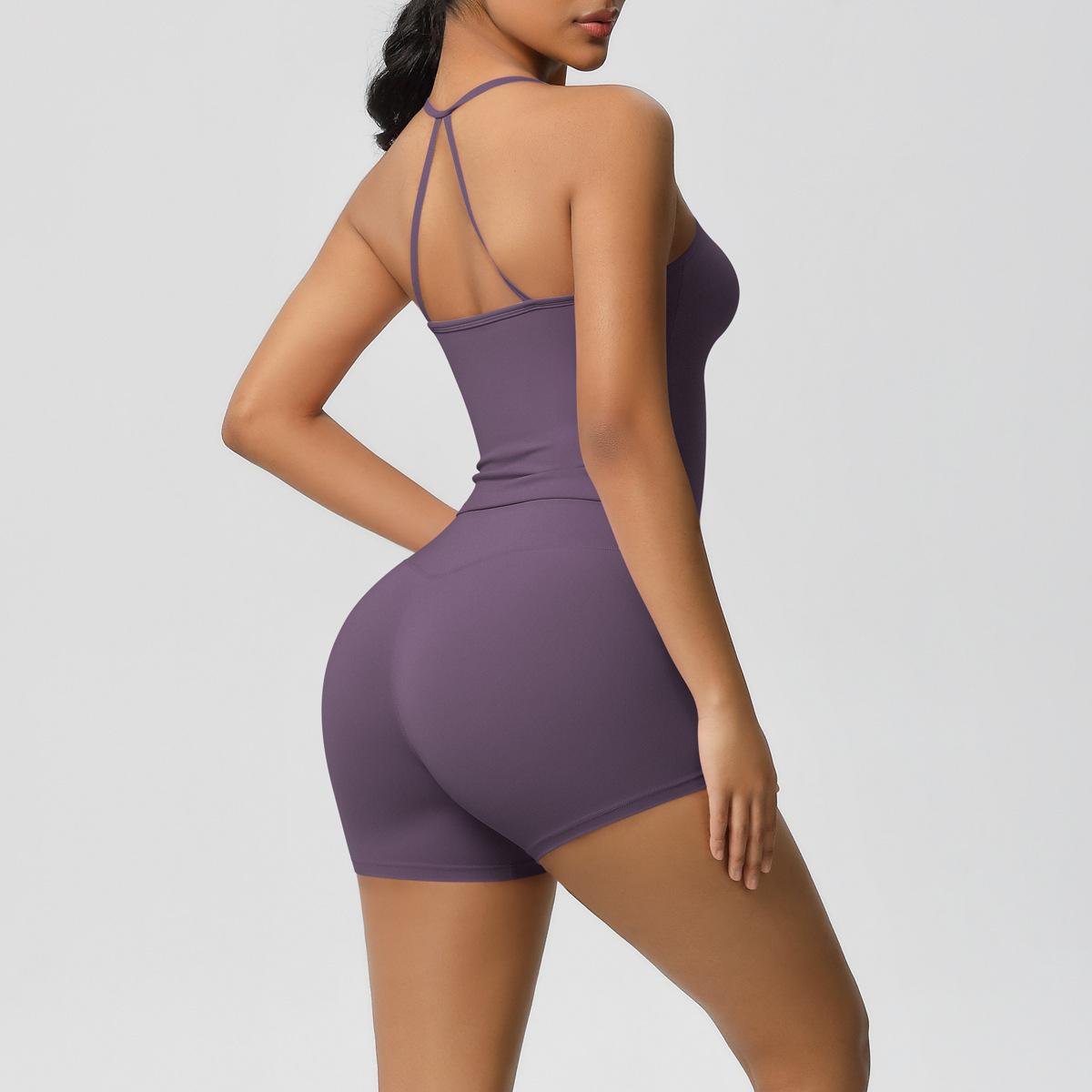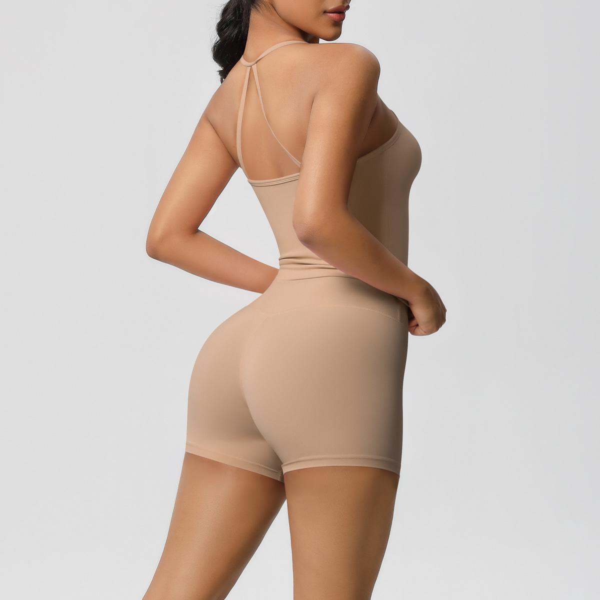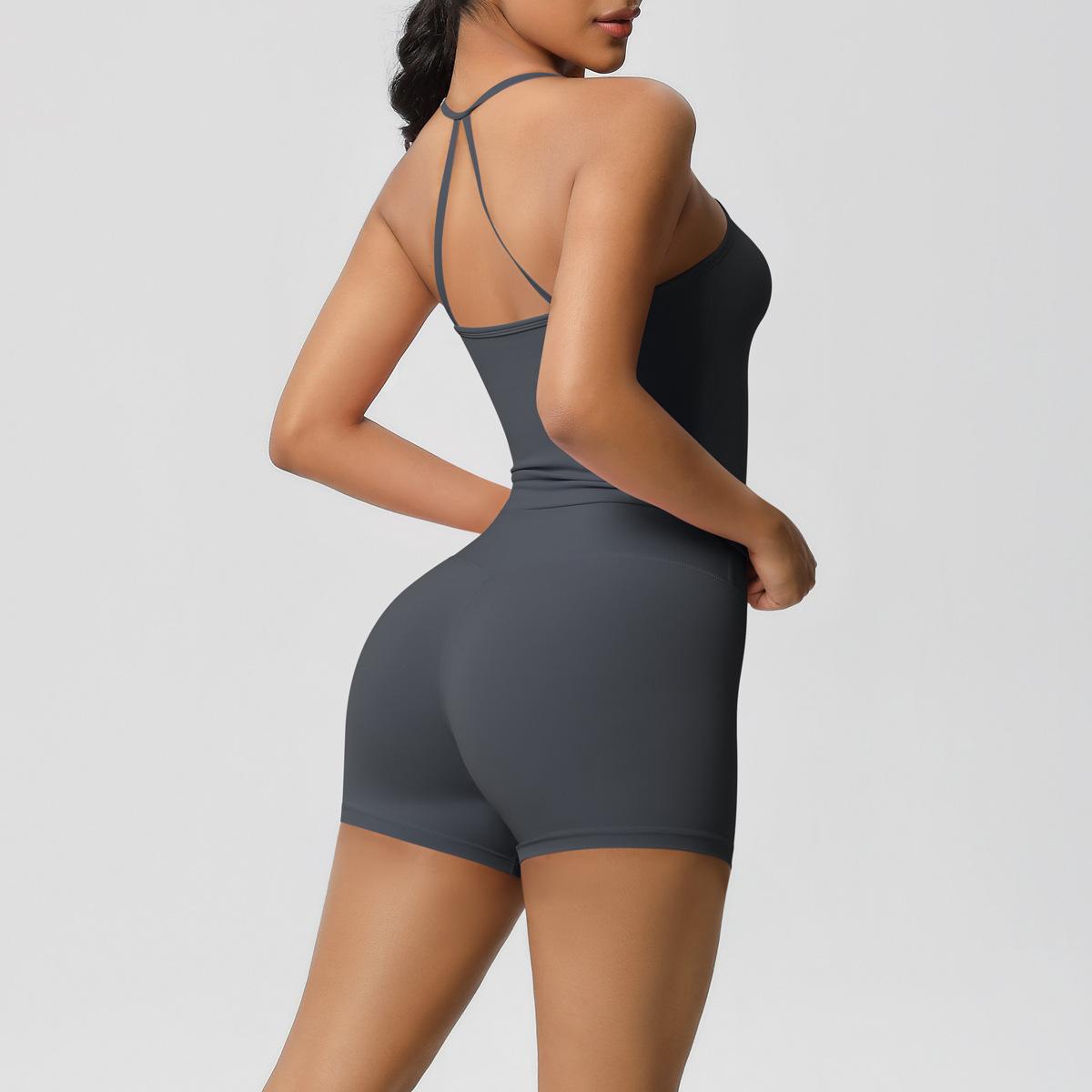 Europa y Estados Unidos Ropa de Yoga de Espalda de Belleza Lijada Transfronteriza Shorts de Fitness de Corte Slim de Secado Rápido Ropa Deportiva Camisola Traje de Yoga
