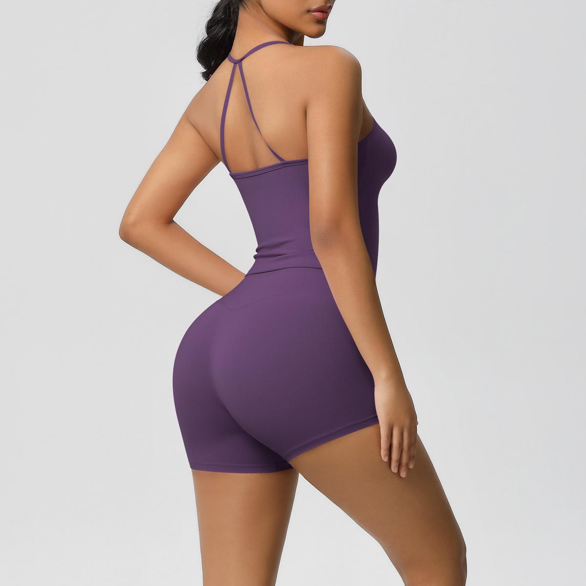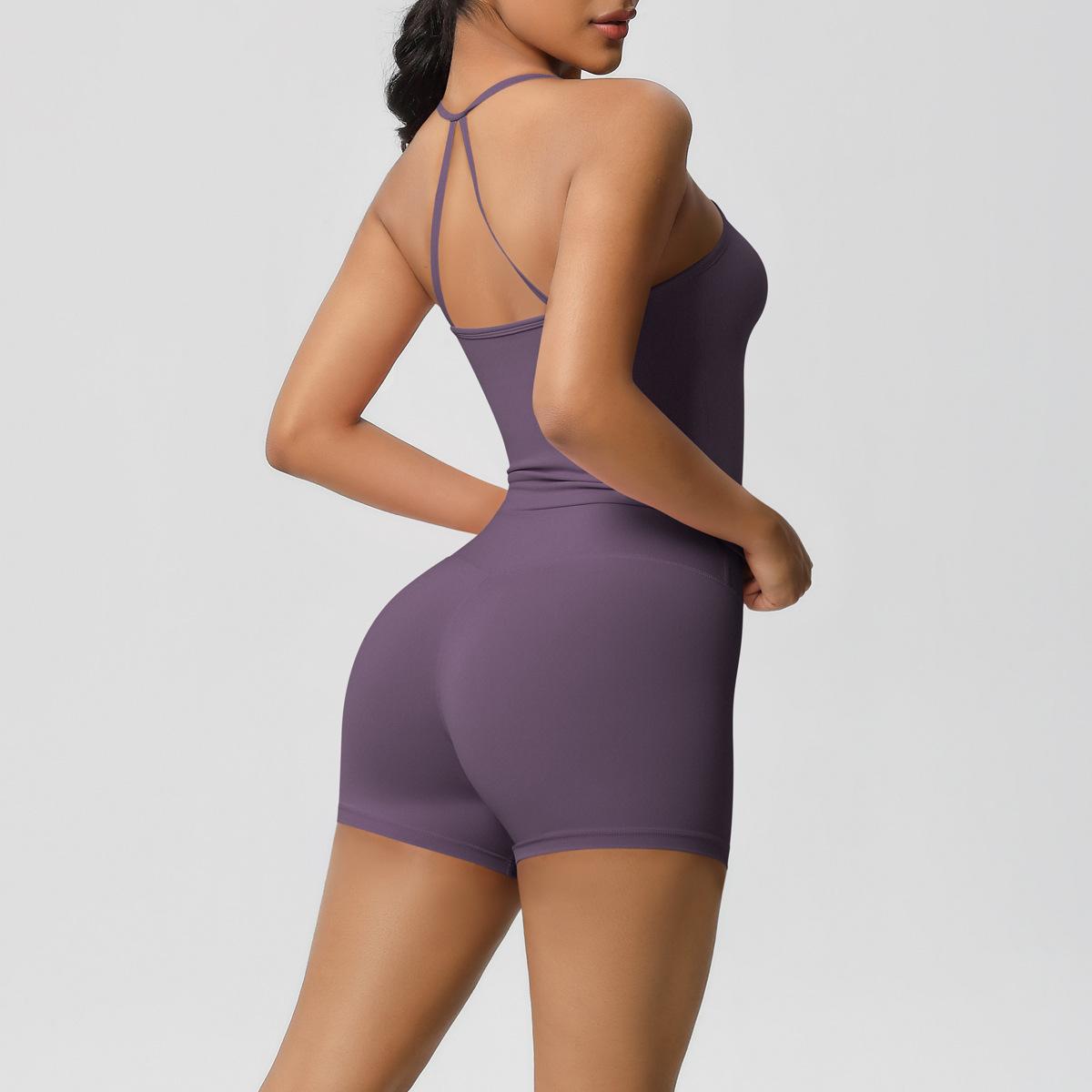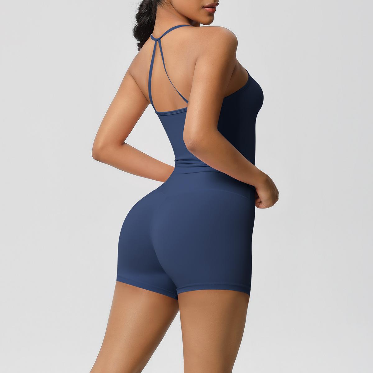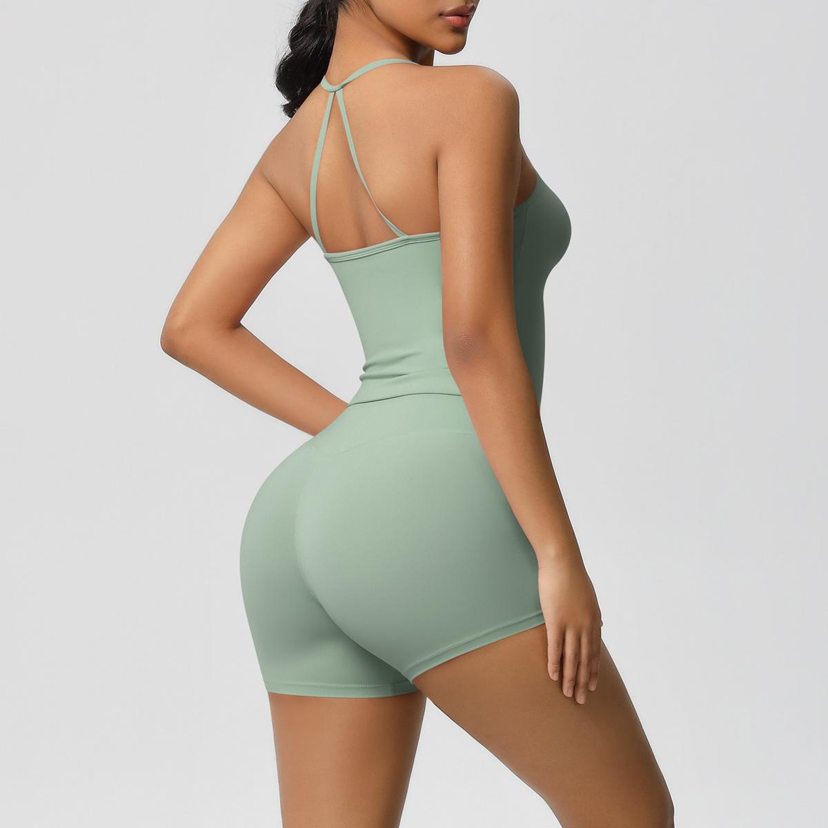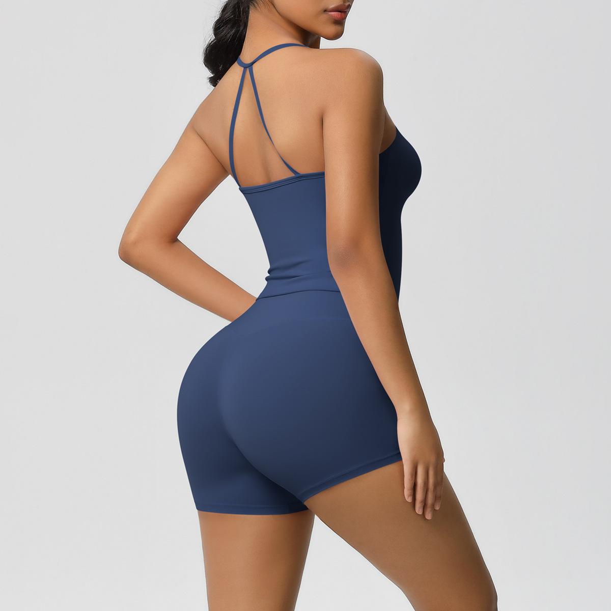 Europa y Estados Unidos Ropa de Yoga de Espalda de Belleza Lijada Transfronteriza Shorts de Fitness de Corte Slim de Secado Rápido Ropa Deportiva Camisola Traje de Yoga