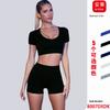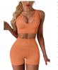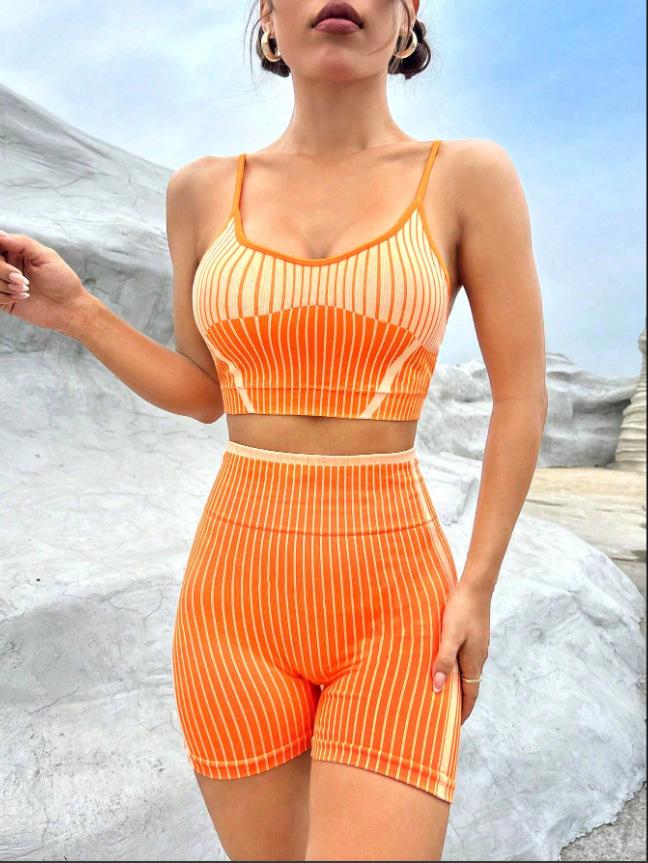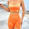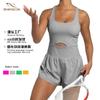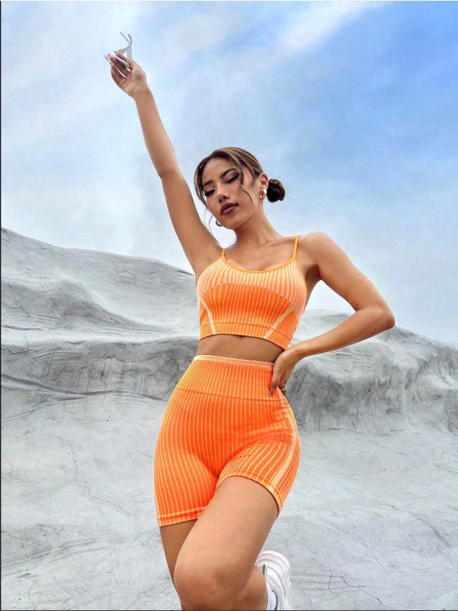 Traje de yoga deportivo para correr con tirantes explosivos de Amazon para mujer, cintura alta, pantalones cortos multicolores, traje de fitness