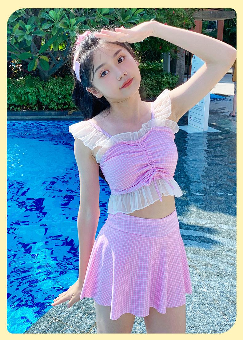 Trajes de baño para niñas, para niñas medianas y grandes, con falda dividida, para niñas pequeñas de 8 a 15 años, para niñas pequeñas, estudiantes, trajes de baño tipo bóxer.