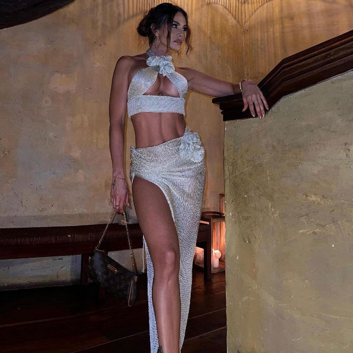 Vestido playero sexy con abertura cruzada para mujer, traje de baño sexy europeo y americano para vacaciones en la playa, comercio exterior transfronterizo, nuevo estilo 2025