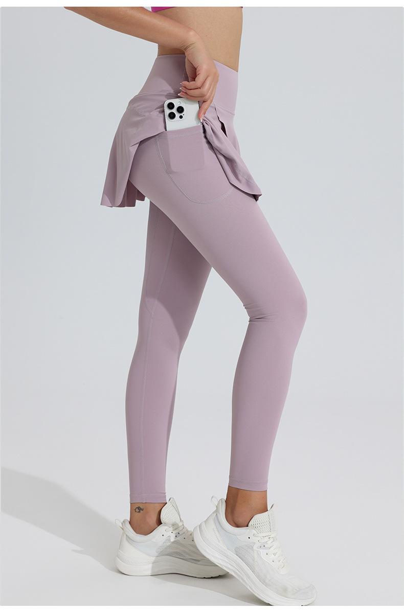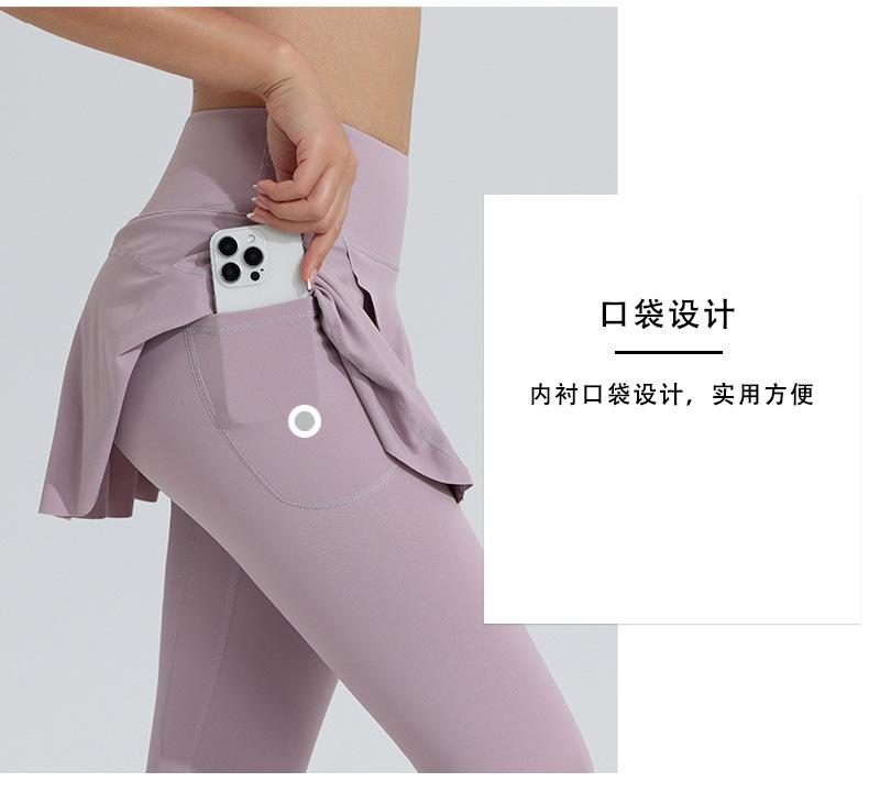Pantalones de yoga transfronterizos para mujer, falsos pantalones de dos piezas de cintura alta, de secado rápido, para correr, deportivos, ajustados de alta calidad.